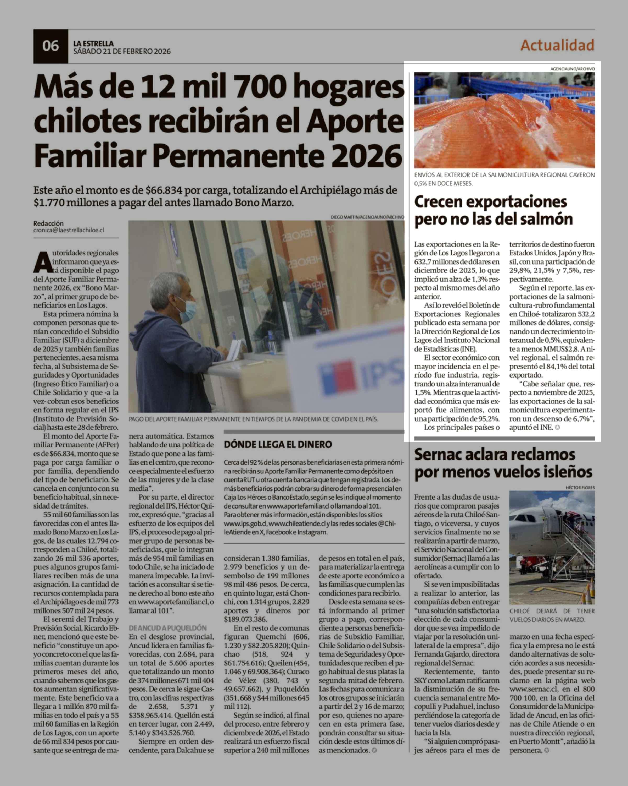 Crecen exportaciones pero no las del salmón 21-02-2026 La Estrella de Chiloé |