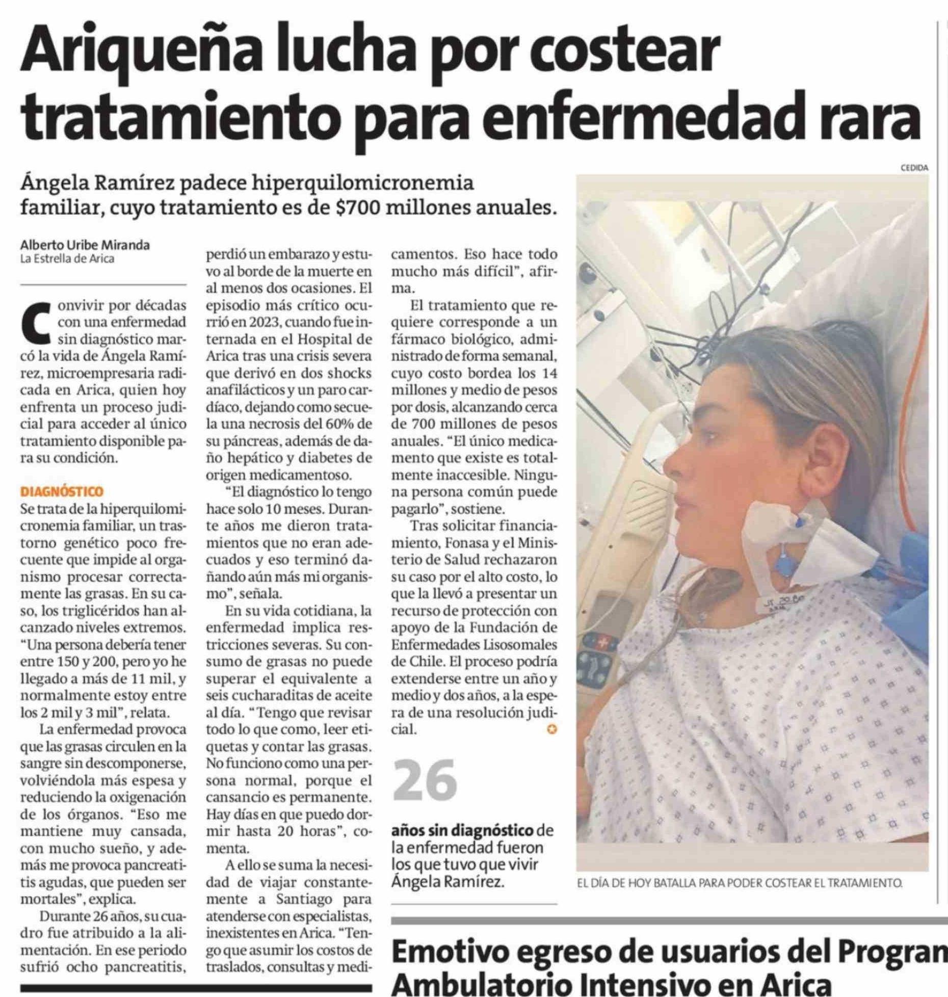 Ariqueña lucha por costear tratamiento para enfermedad rara 08-04-2026 La Estrella de Arica |