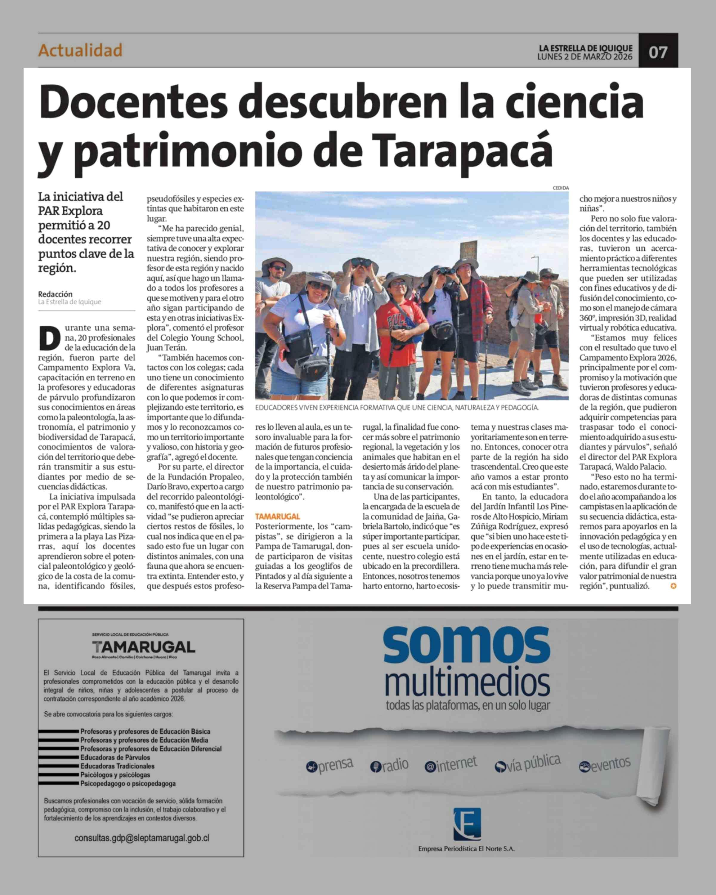 Título: Docentes descubren la ciencia y patrimonio de Tarapacá