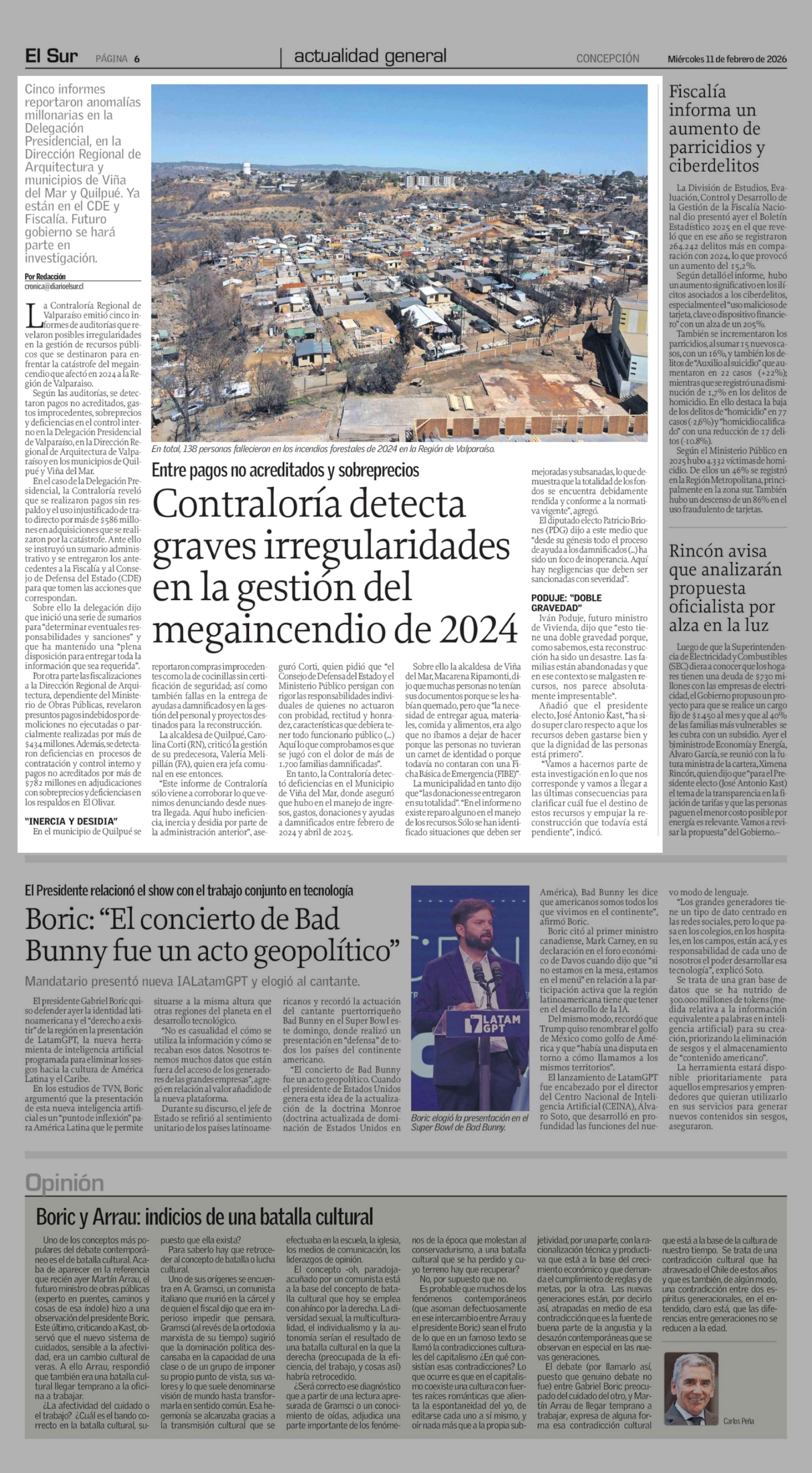 Contraloría detecta graves irregularidades en la gestión del megaincendio de 2024 11-02-2026 El Sur |