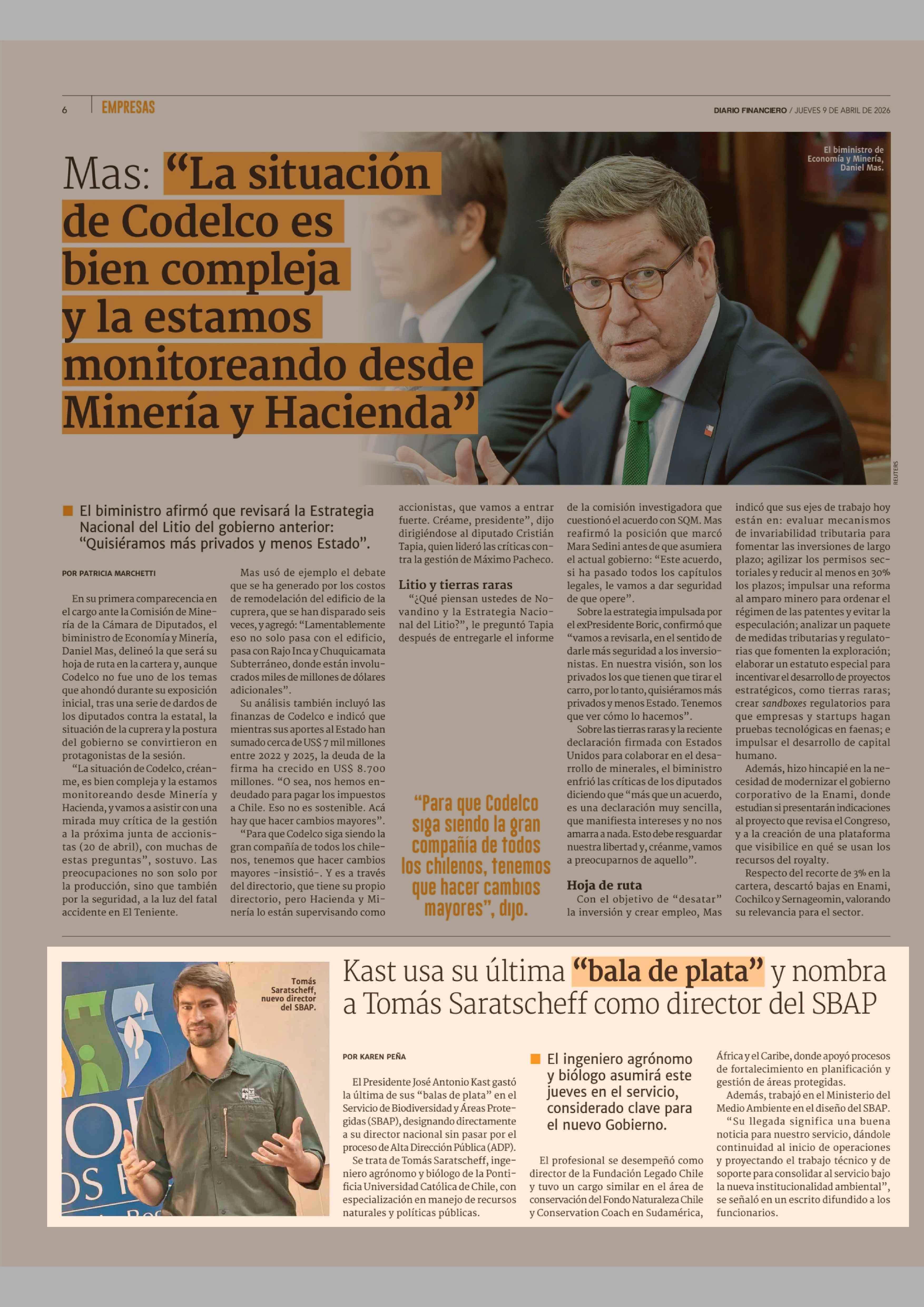 Fuente: Diario Financiero (Diario Financiero) Página(s): 6