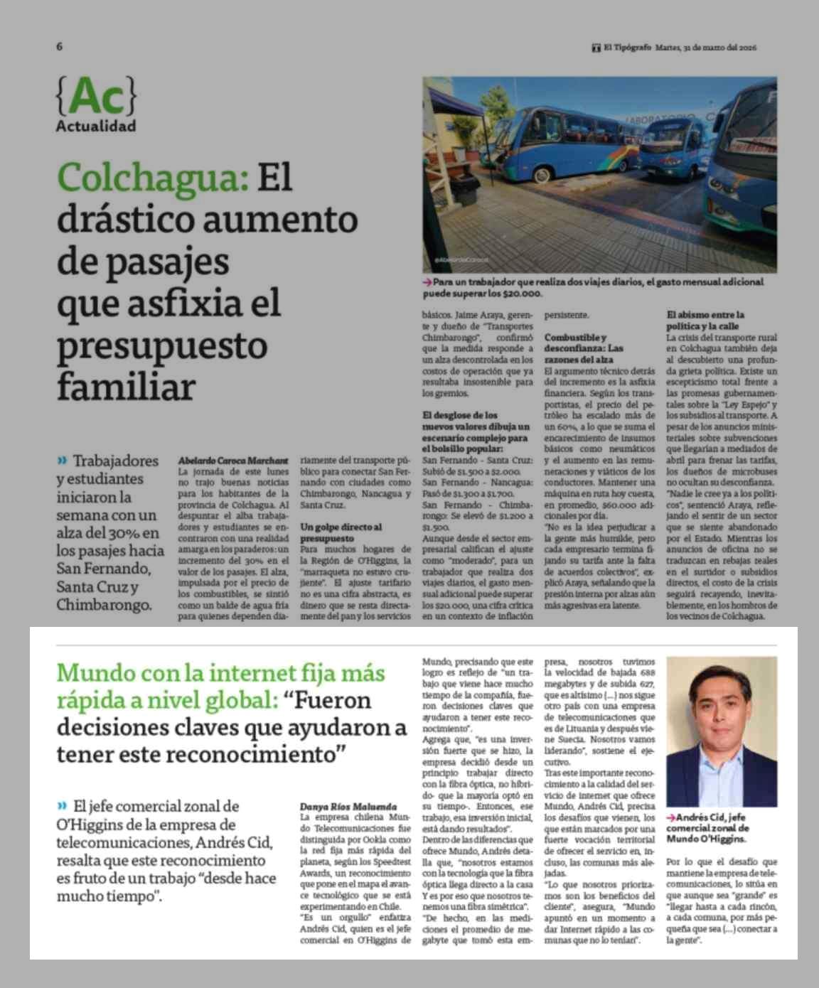 Mundo con la internet fija más rápida a nivel global: "Fueron decisiones claves que ayudaron a tener este reconocimiento" 31-03-2026 El Tipógrafo |