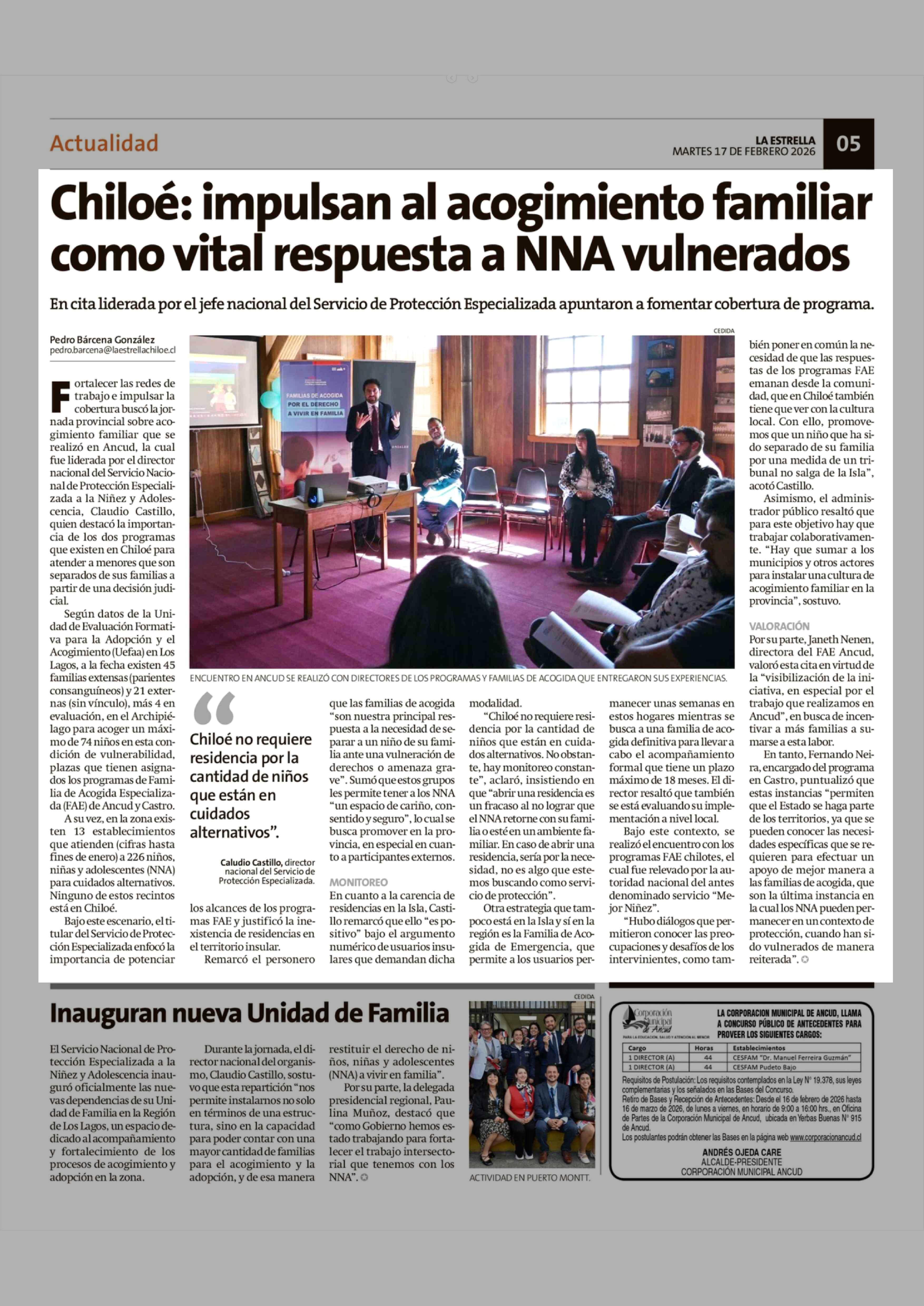 Título: Chiloé: impulsan al acogimiento familiar como vital respuesta a NNA vulnerados