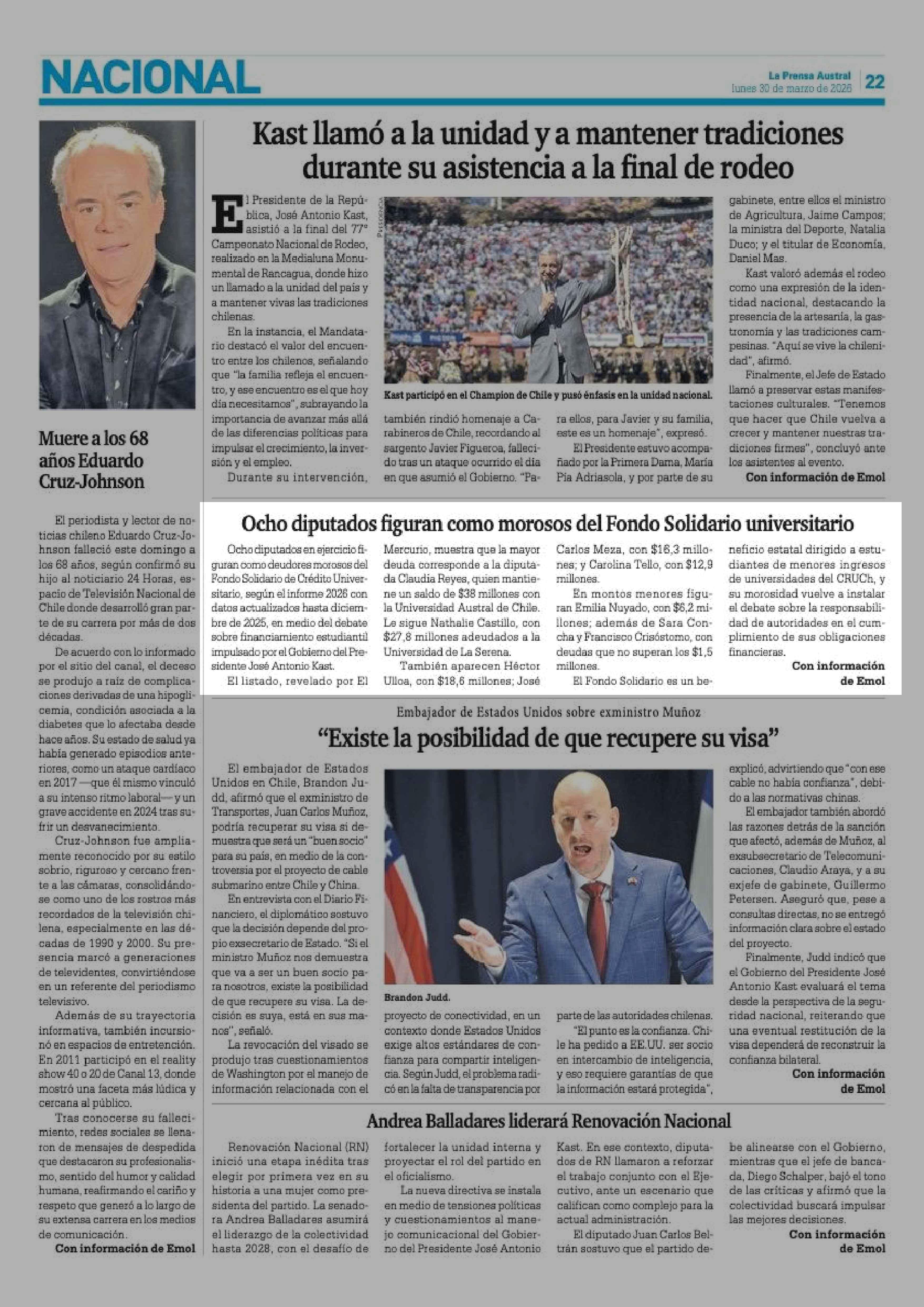30-03-2026 La Prensa Austral