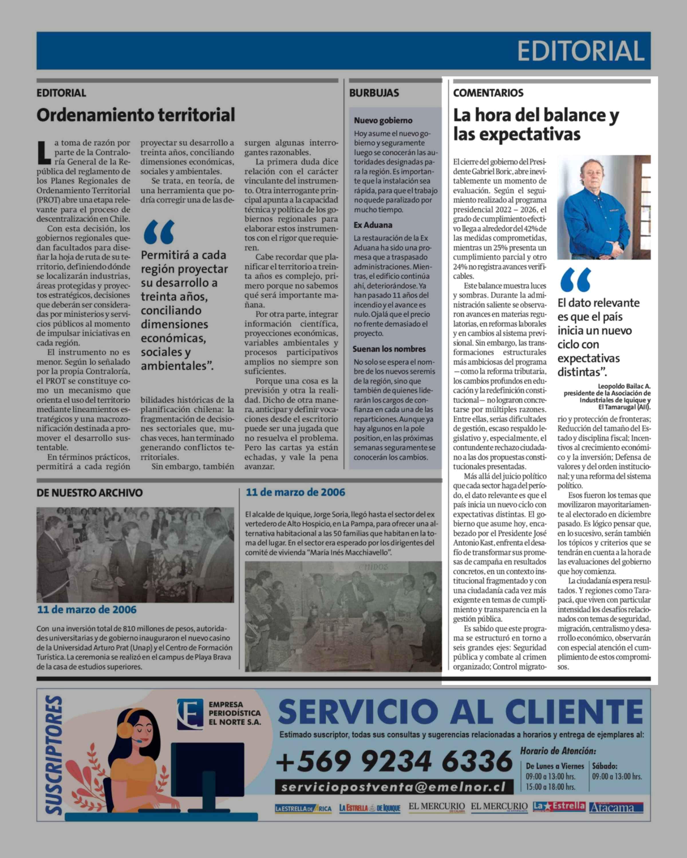 Fecha: 11-03-2026 Sector: Columnas de Opinión Región: Región de Tarapacá