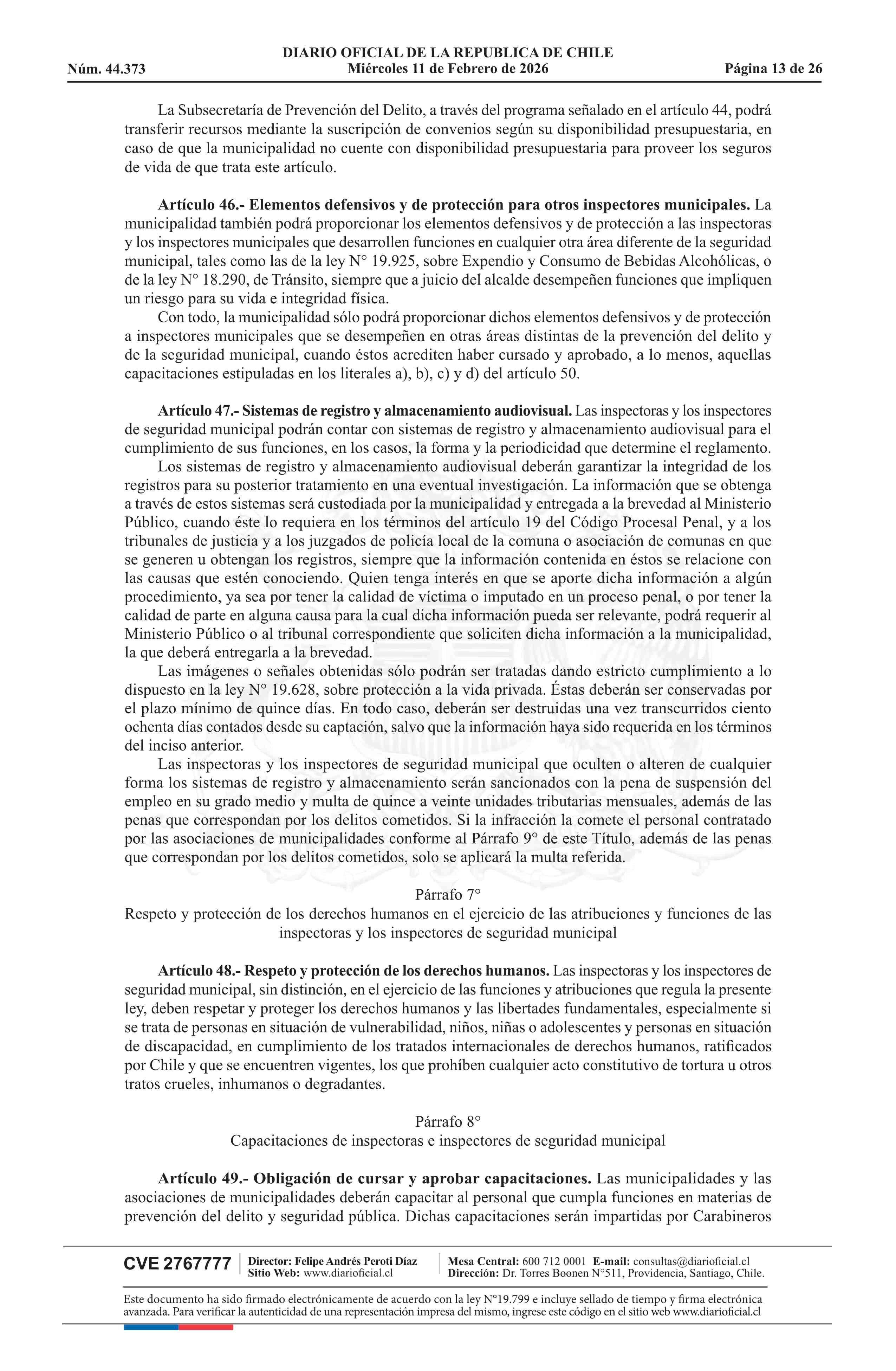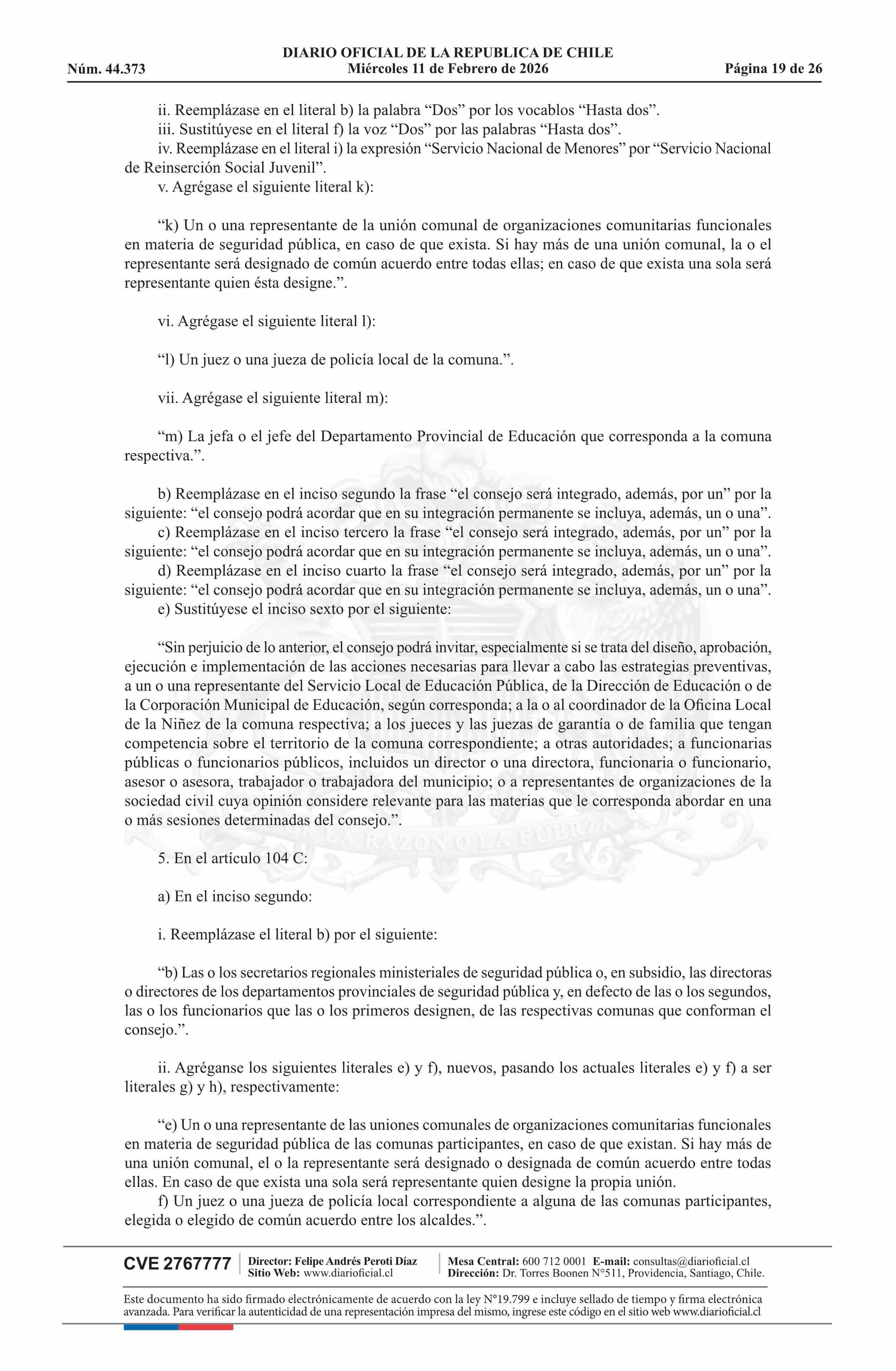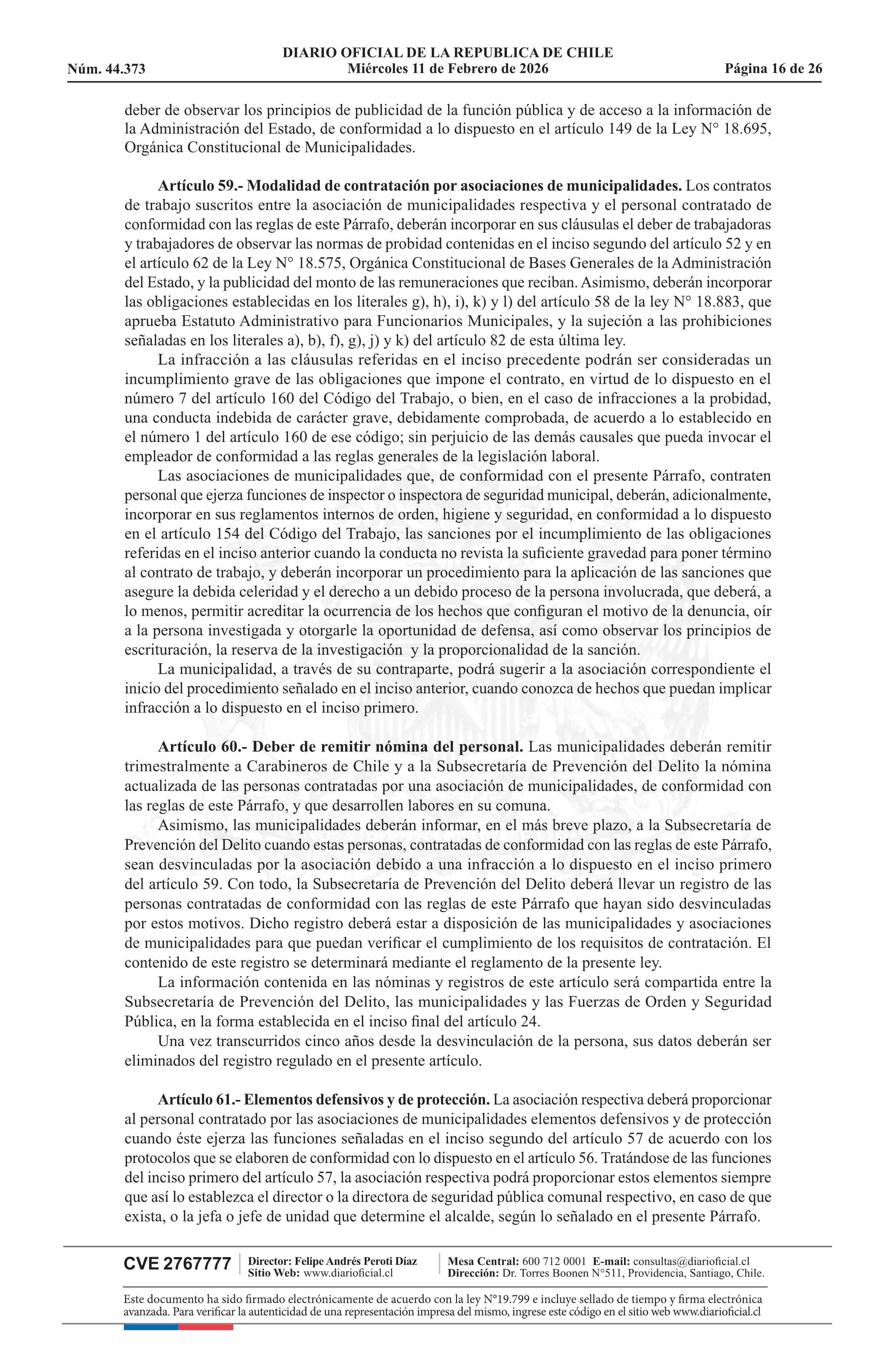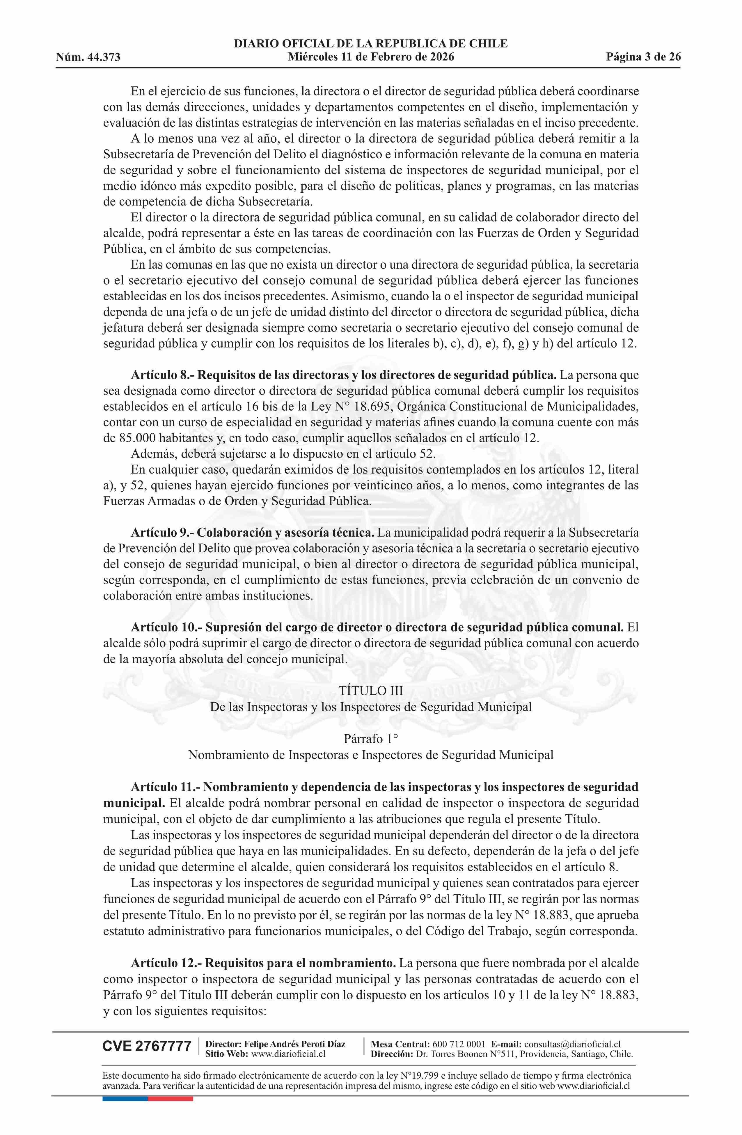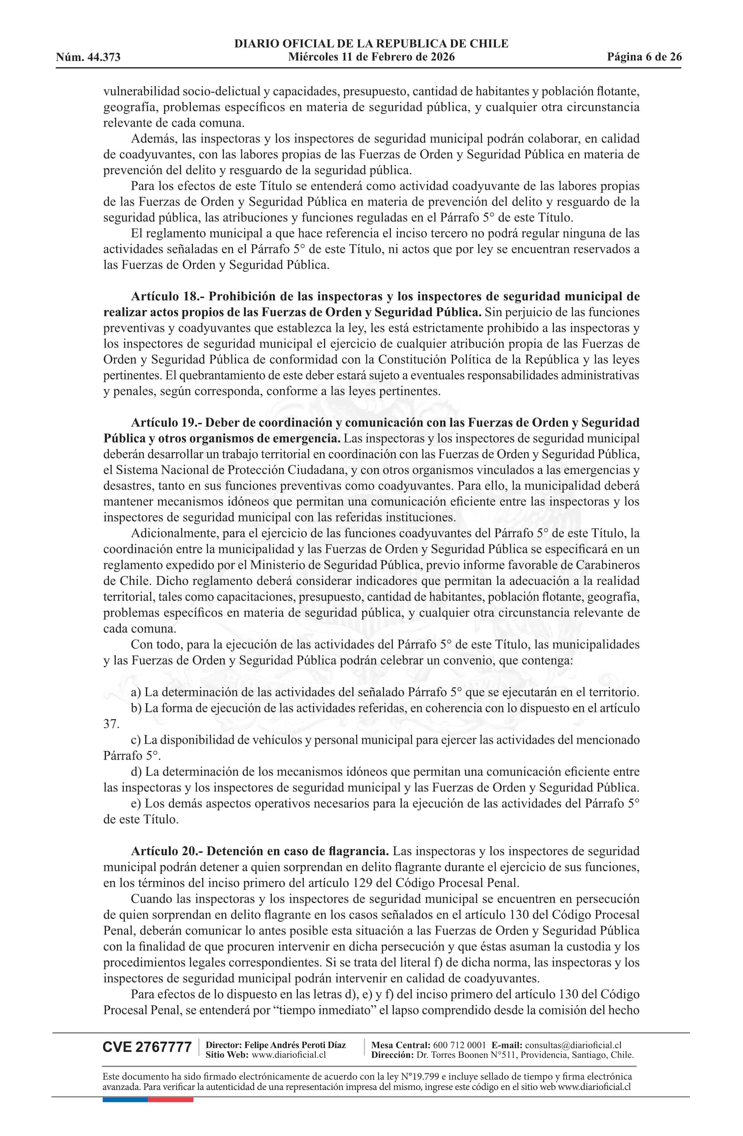 | Título: | Ley número 21.802.- Modifica la Ley N° 18.695, Orgánica Constitucional de Municipalidades, y otros cuerpos legales, con el objeto de fortalecer la institucionalidad municipal en materia de seguridad pública y prevención del delito |