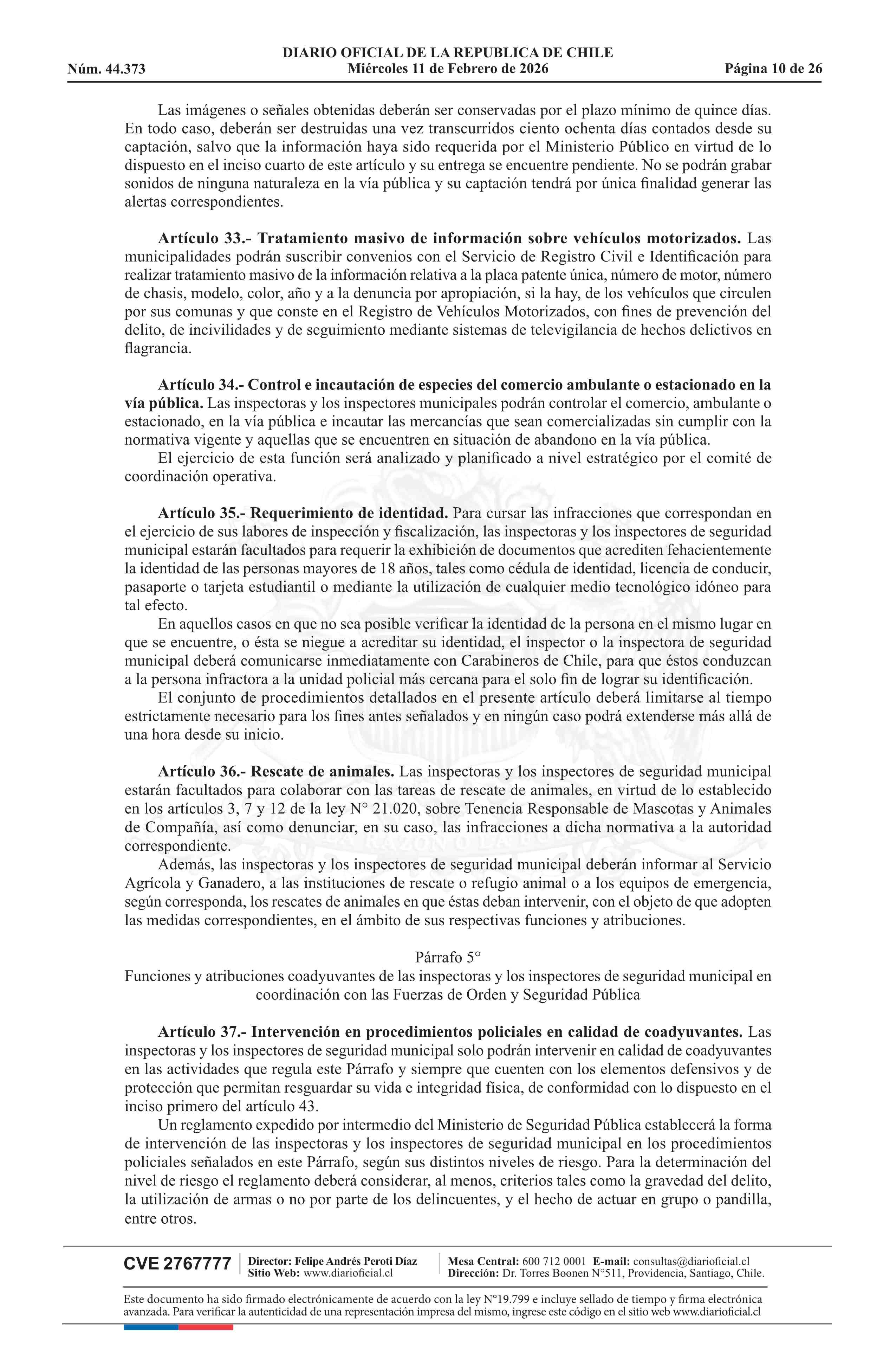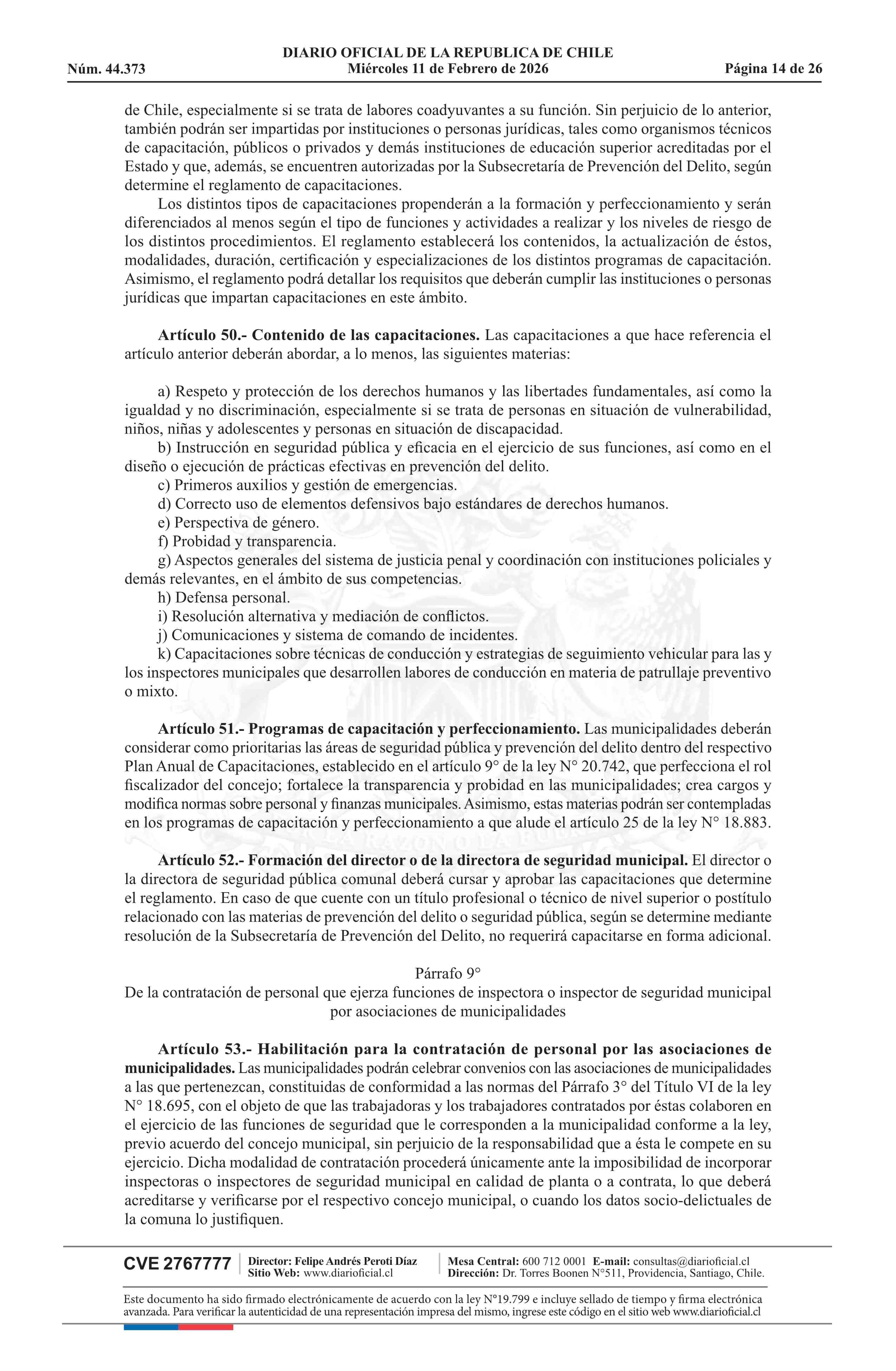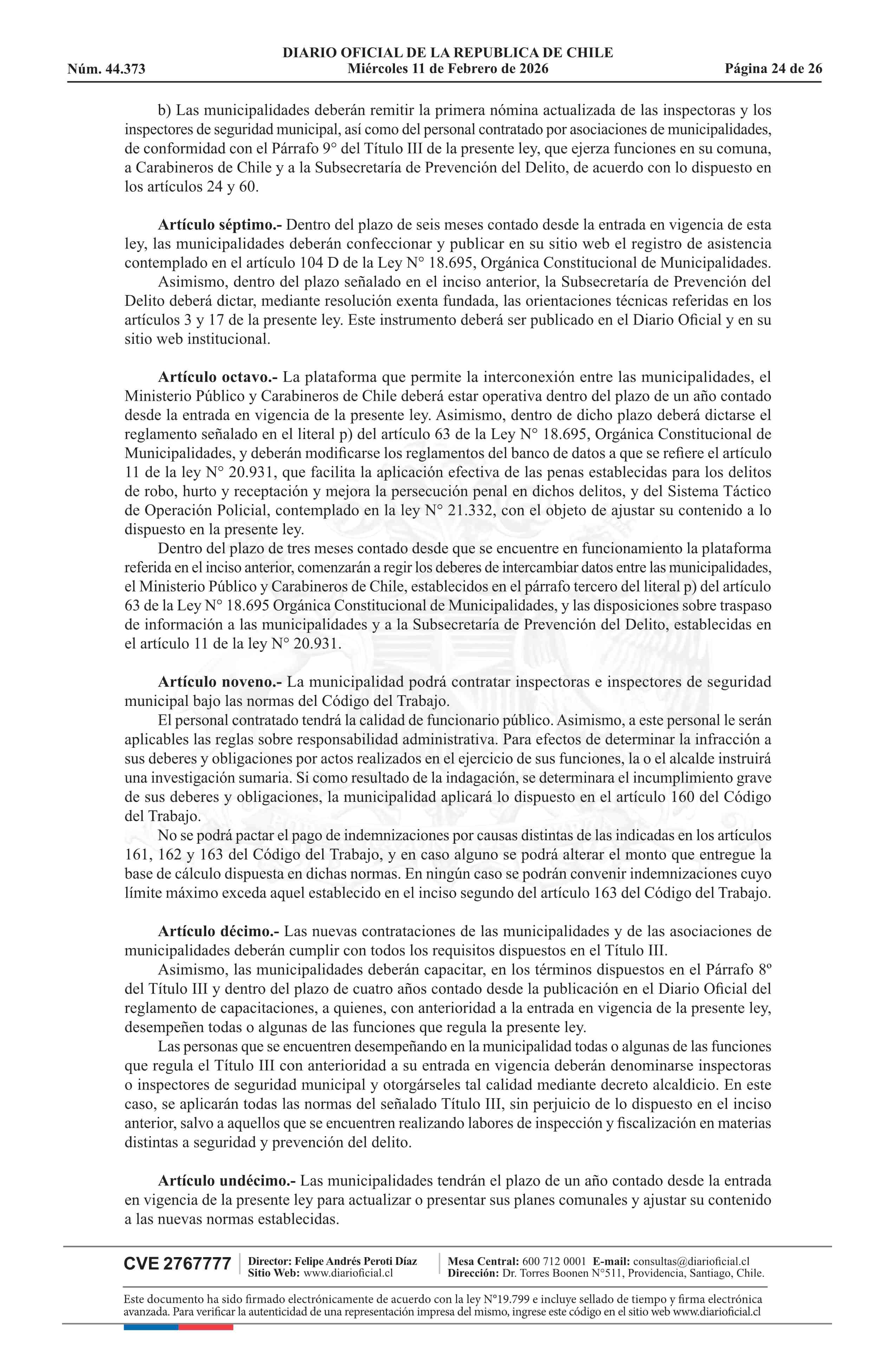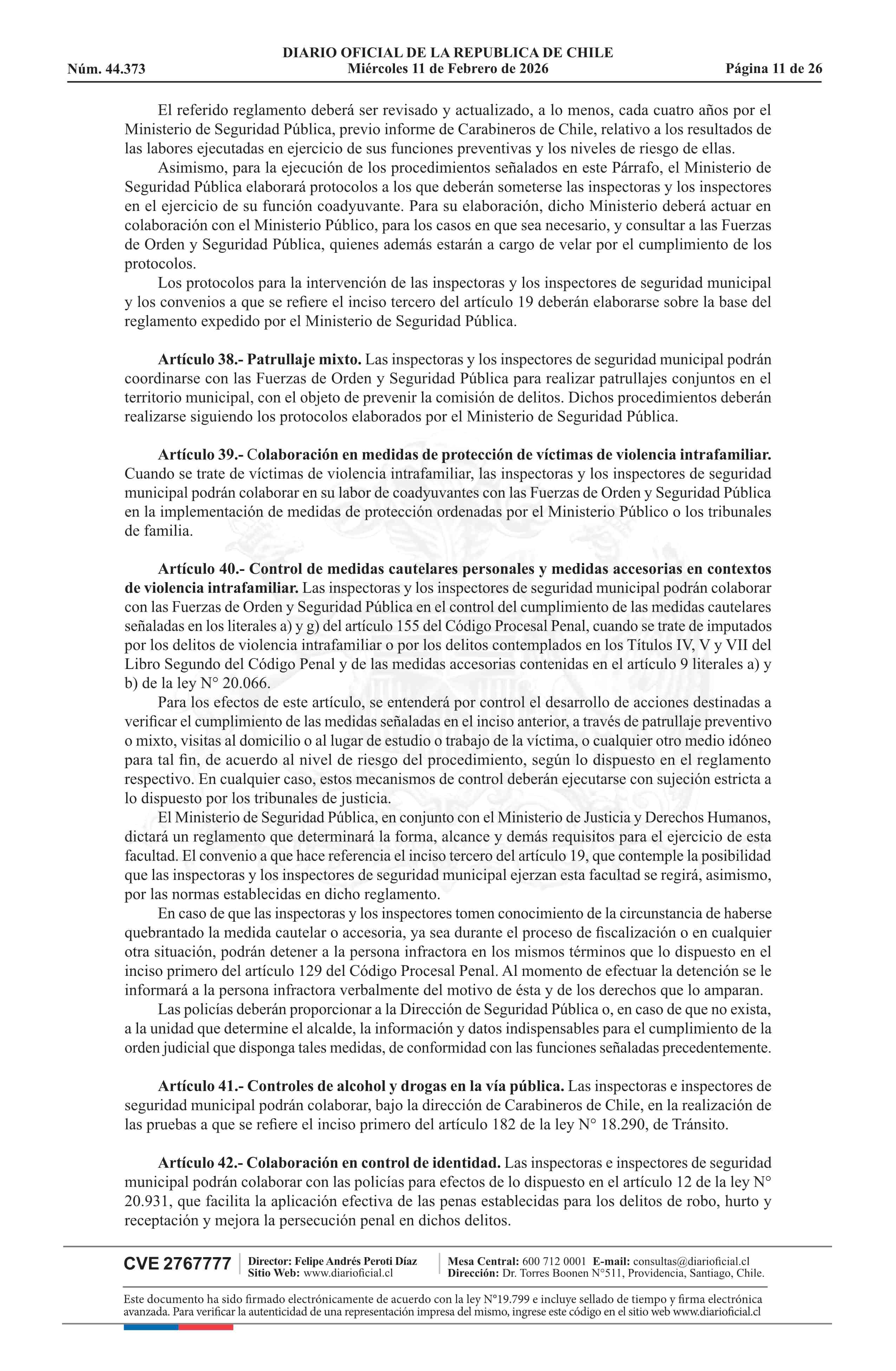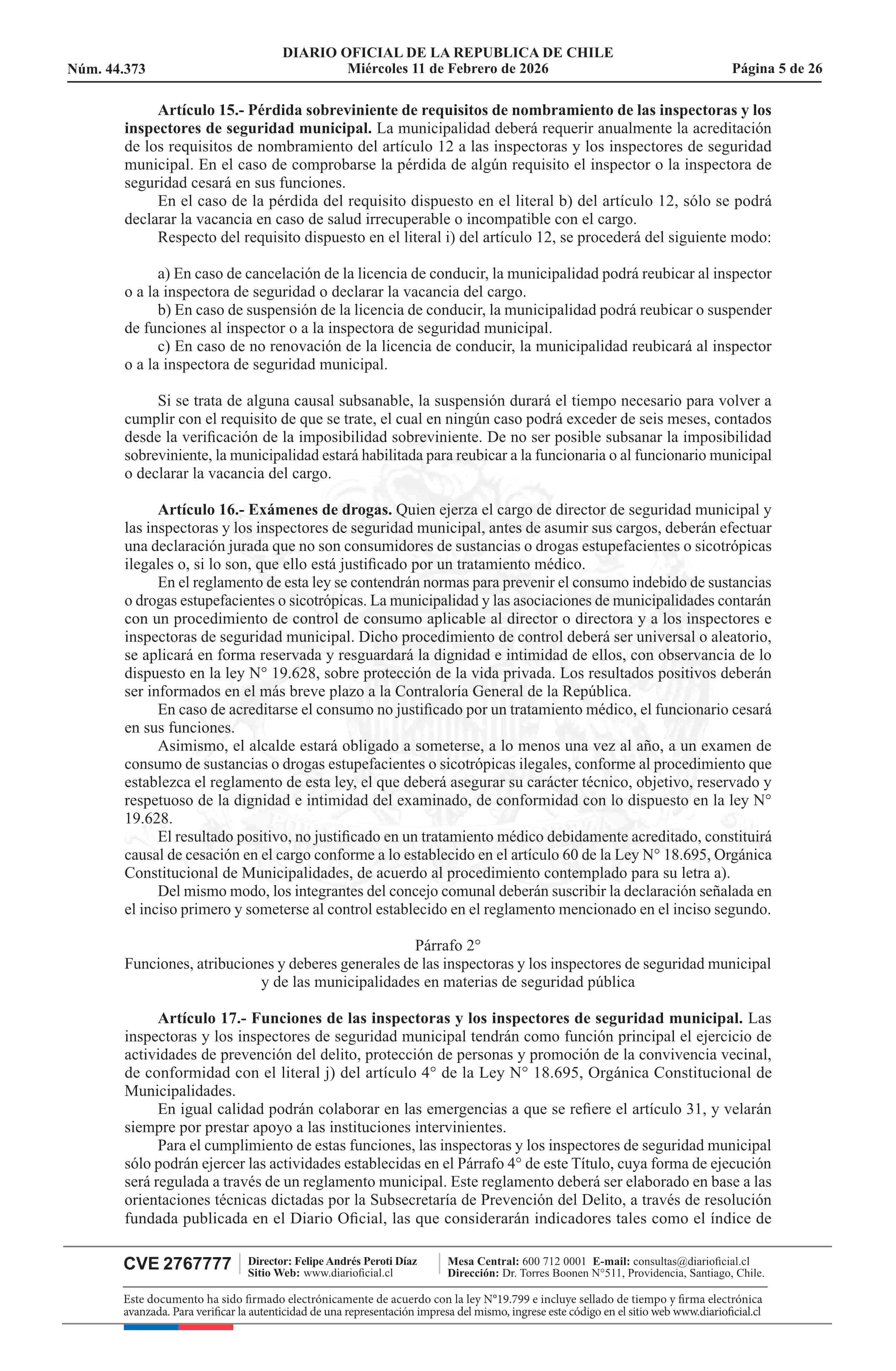 | Título: | Ley número 21.802.- Modifica la Ley N° 18.695, Orgánica Constitucional de Municipalidades, y otros cuerpos legales, con el objeto de fortalecer la institucionalidad municipal en materia de seguridad pública y prevención del delito |