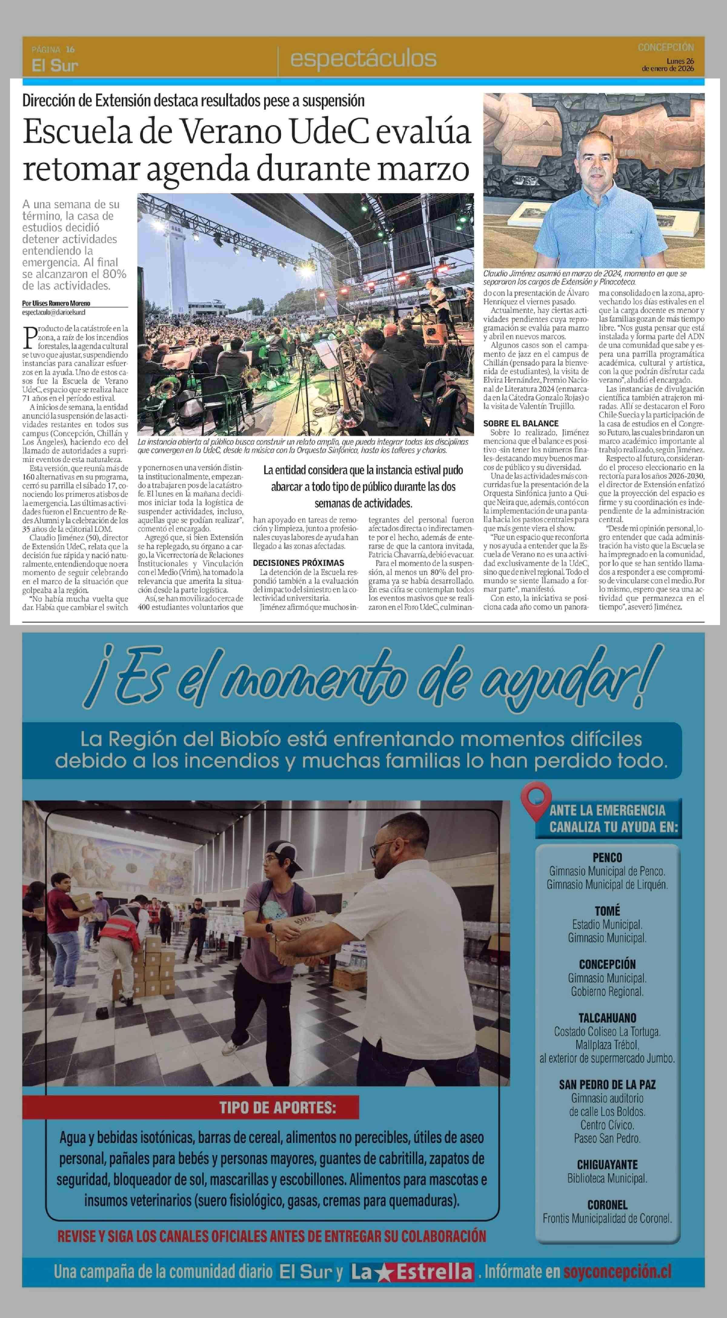 Escuela de Verano UdeC evalúa retomar agenda durante marzo 26-01-2026 El Sur |