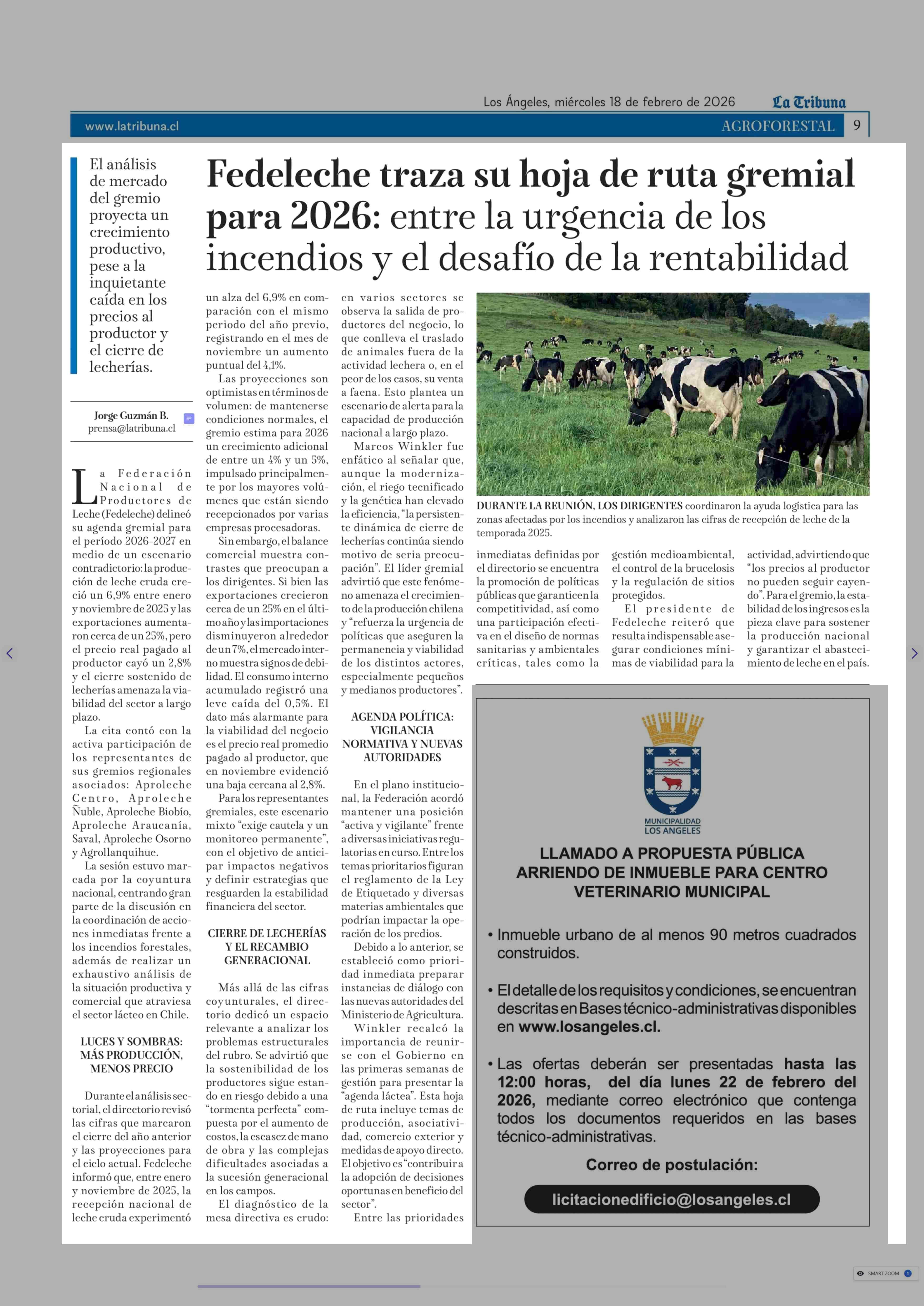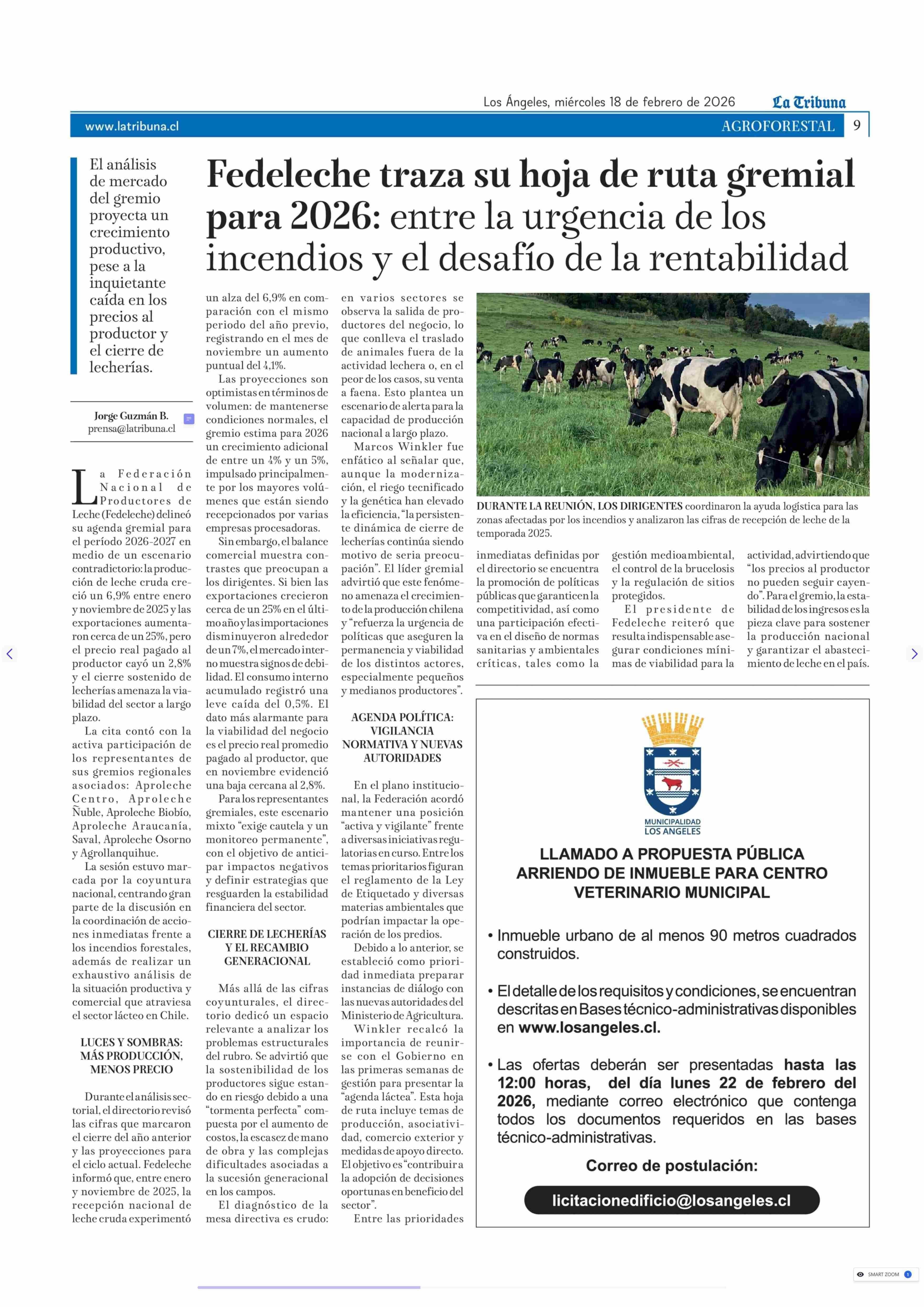 Fedeleche traza su hoja de ruta gremial para 2026: entre la urgencia de los incendios y el desafío de la rentabilidad 18-02-2026 La Tribuna |