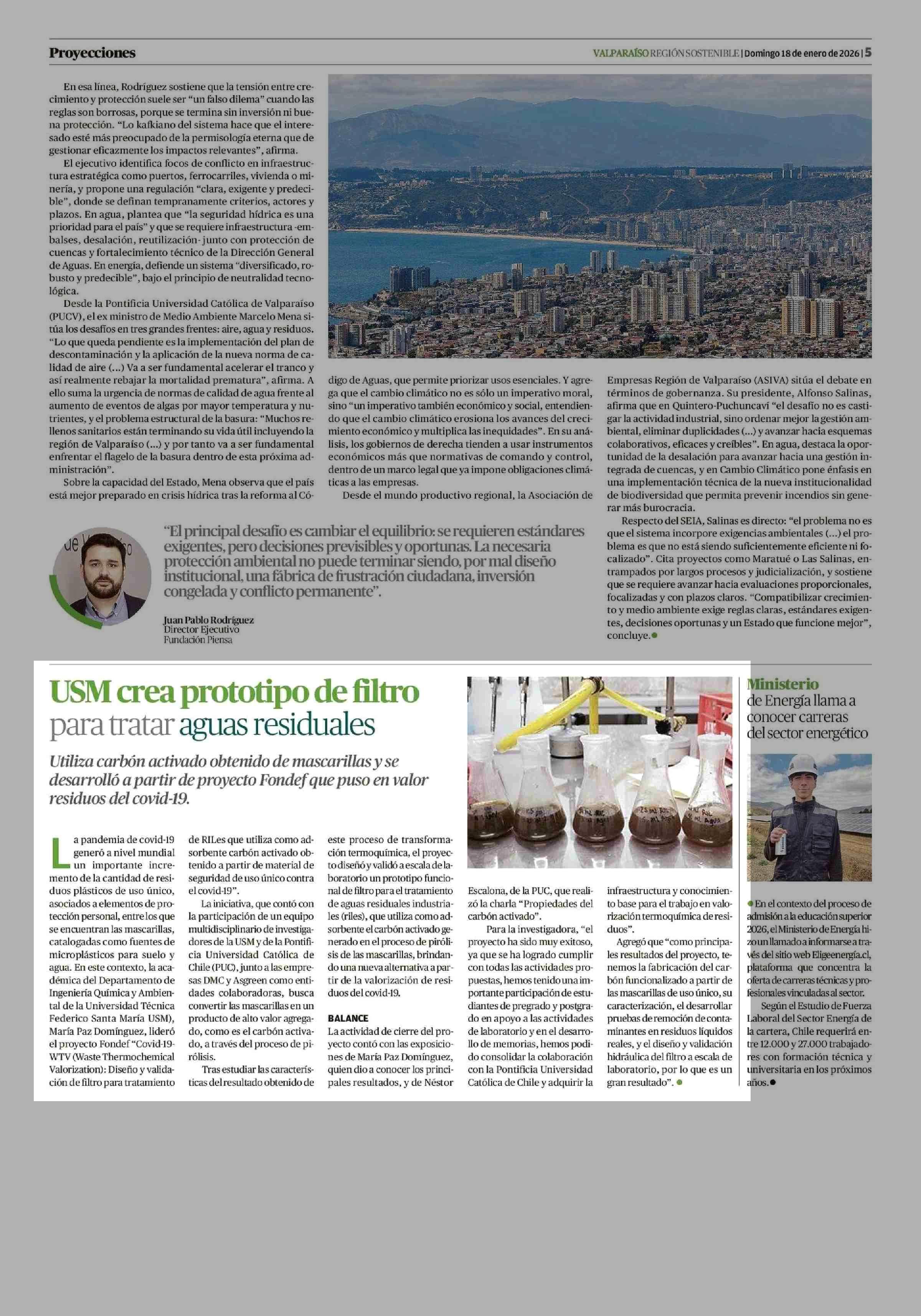 USM crea prototipo de filtro para tratar aguas residuales 18-01-2026 El Mercurio de Valparaíso |