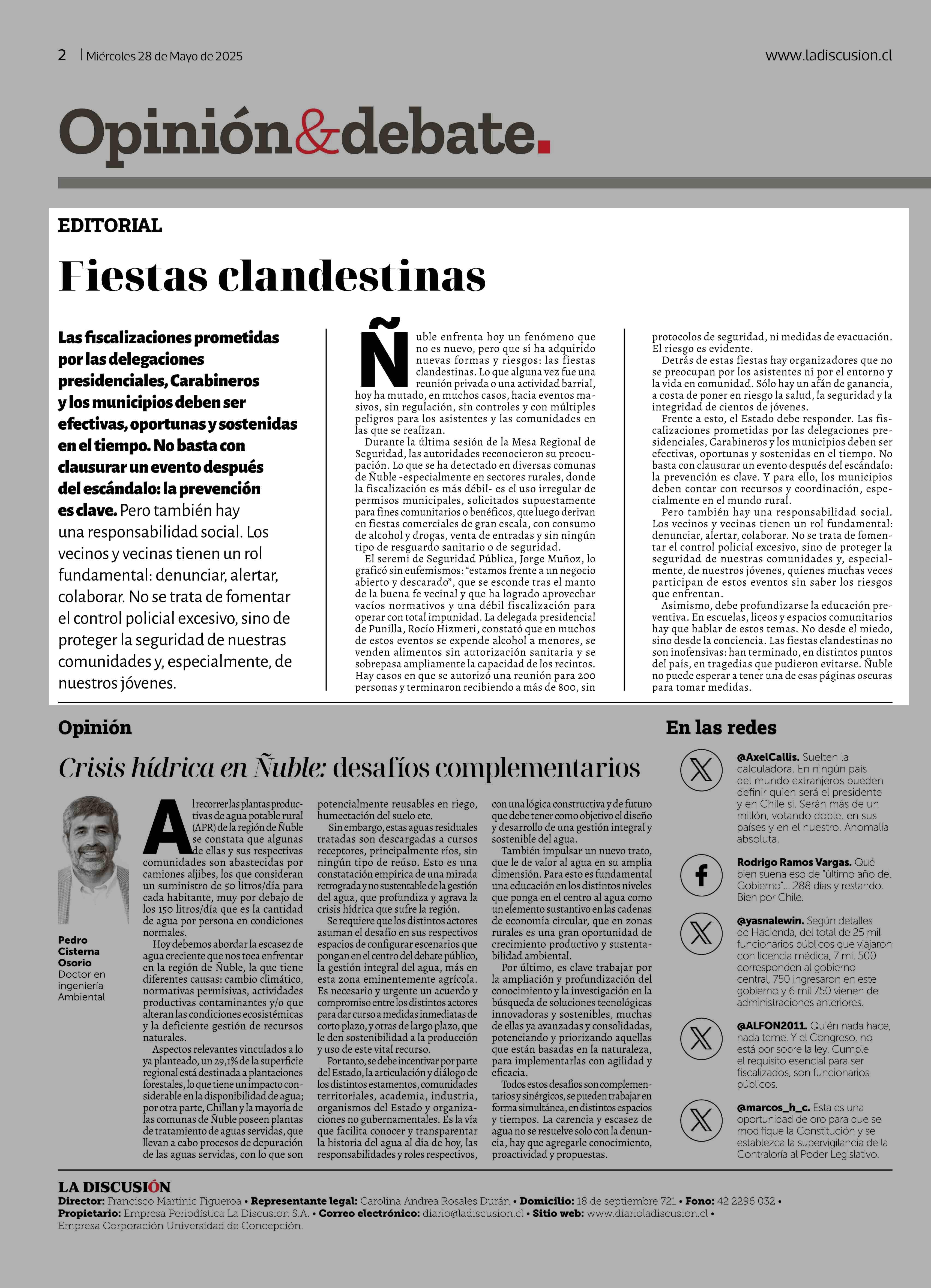 Editorial: Fiestas clandestinas 28-05-2025 La Discusión |