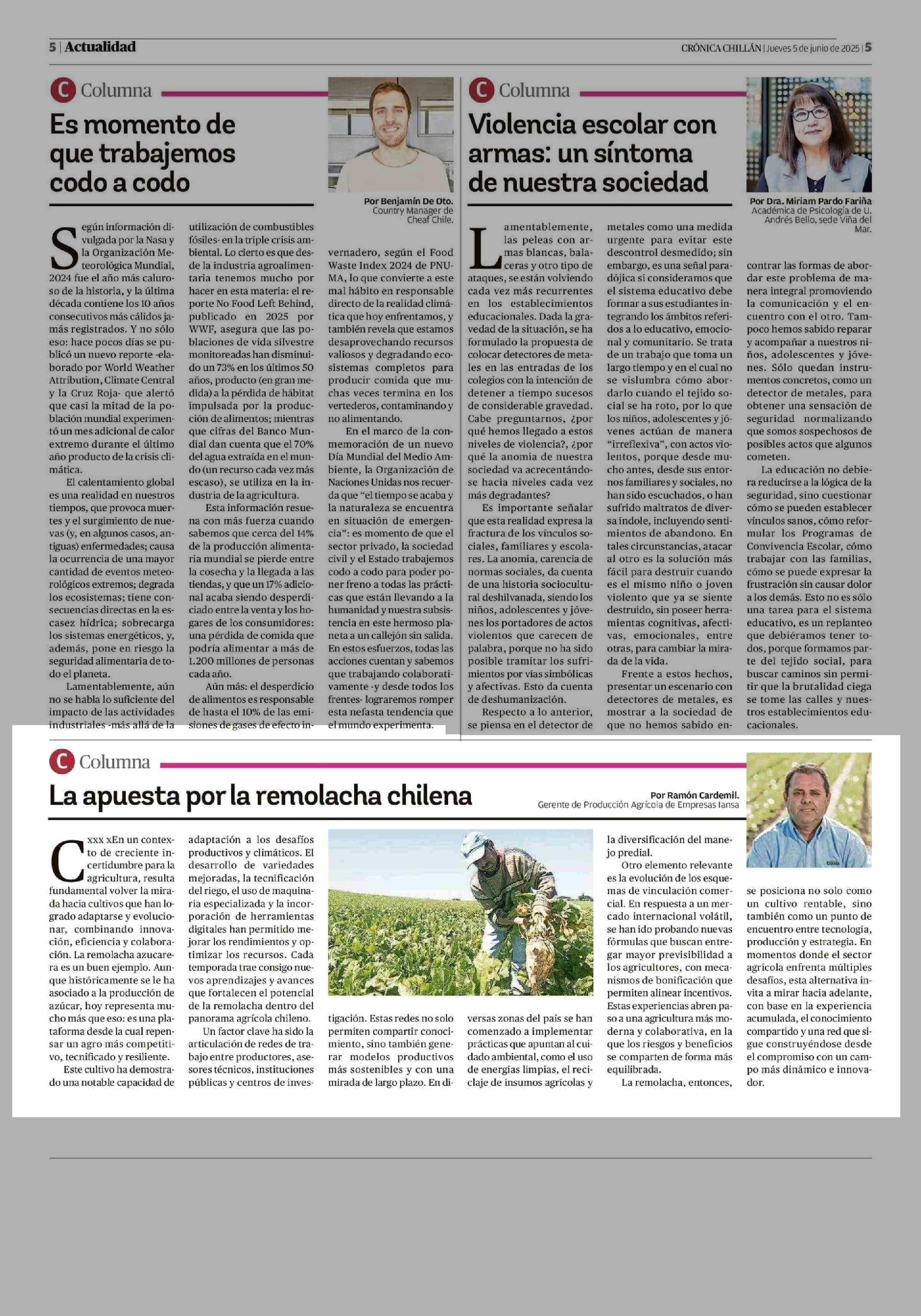 | Fecha: | 05-06-2025 | Sector: | Columnas de Opinión | Región: | Región del Ñuble |