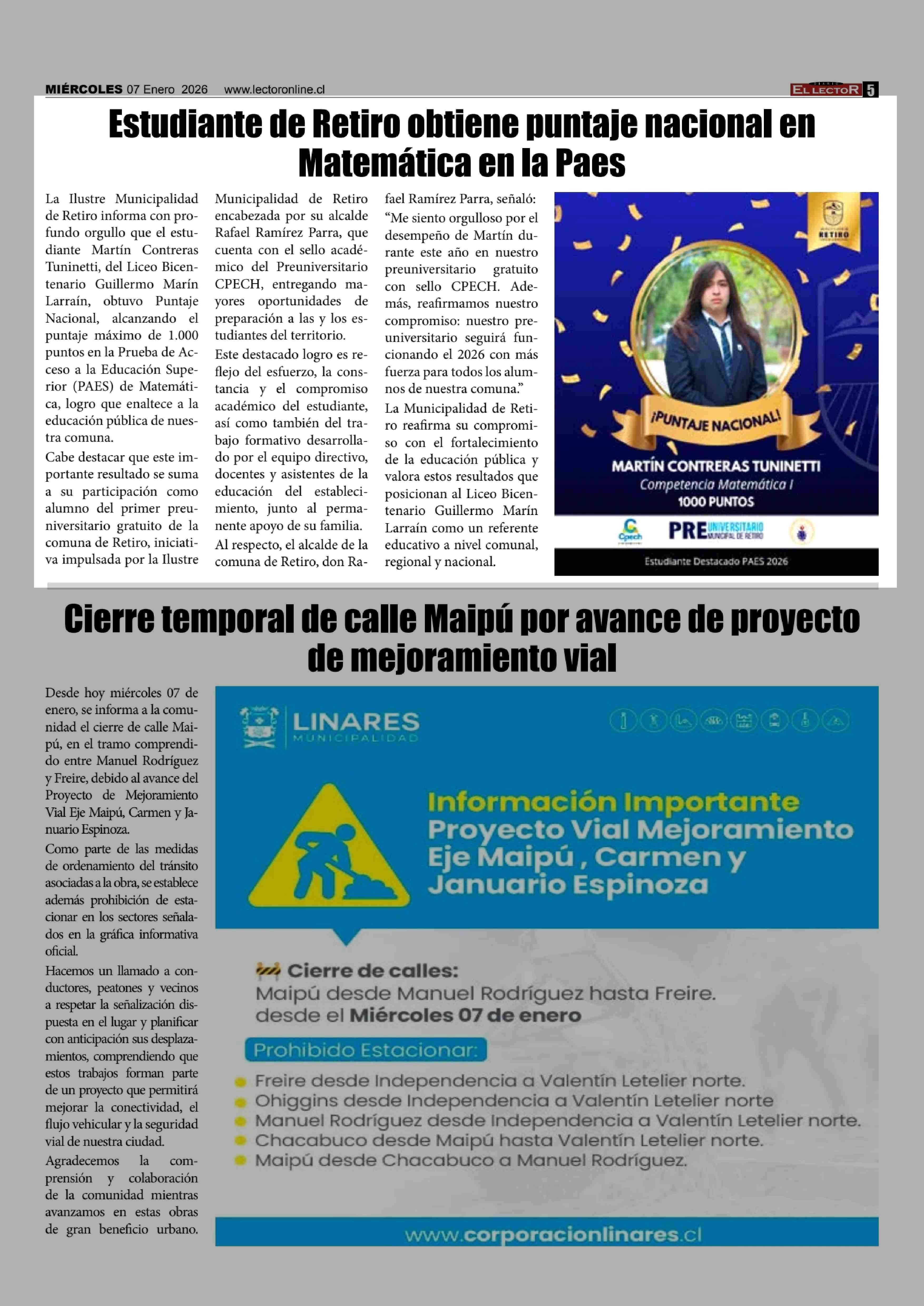 | Fecha: | 07-01-2026 | Sector: | Noticia general | Región: | Región del Maule |