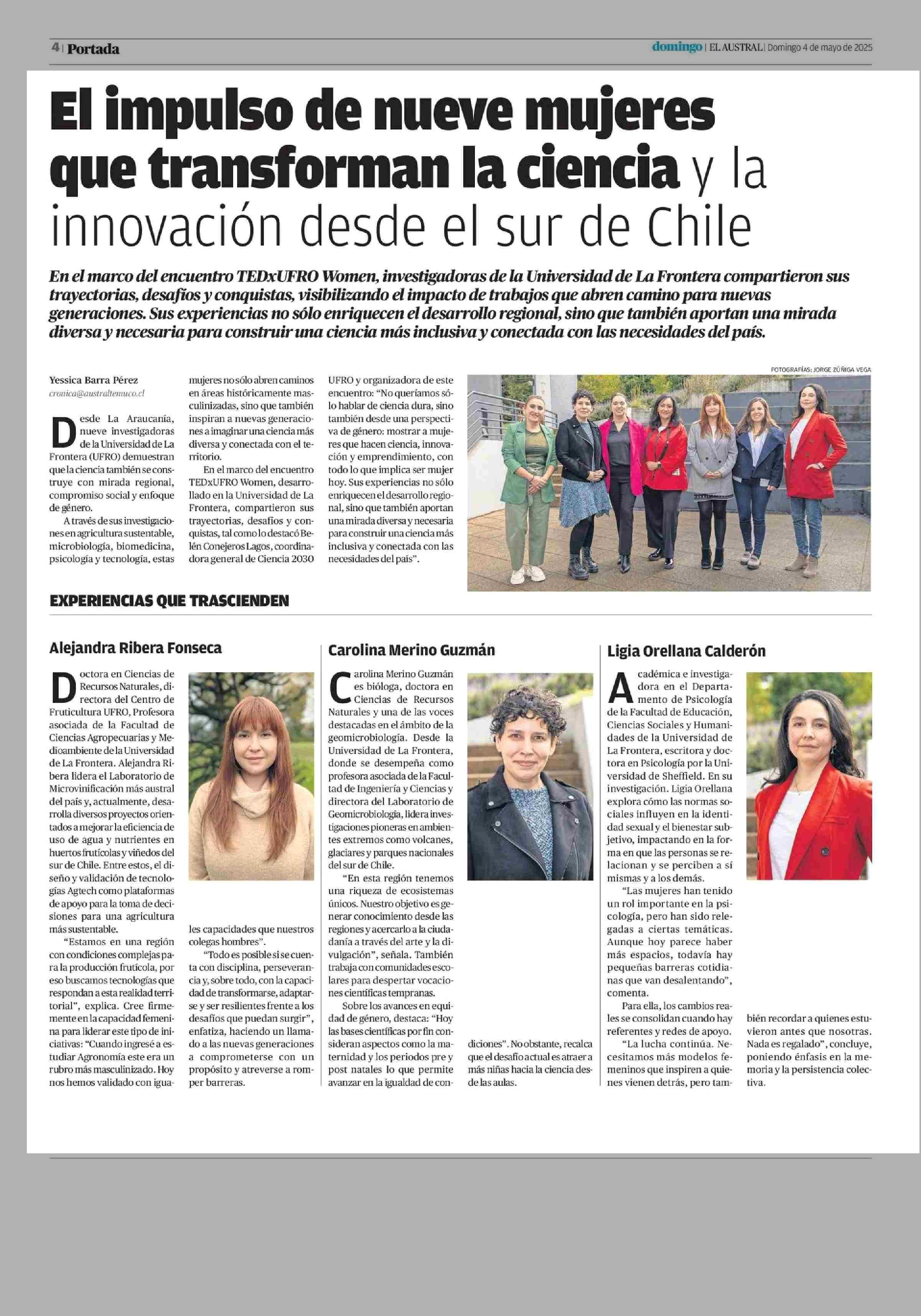 El impulso de nueve mujeres que transforman la ciencia y la innovación desde el sur de Chile 04-05-2025 El Austral de la Araucanía |