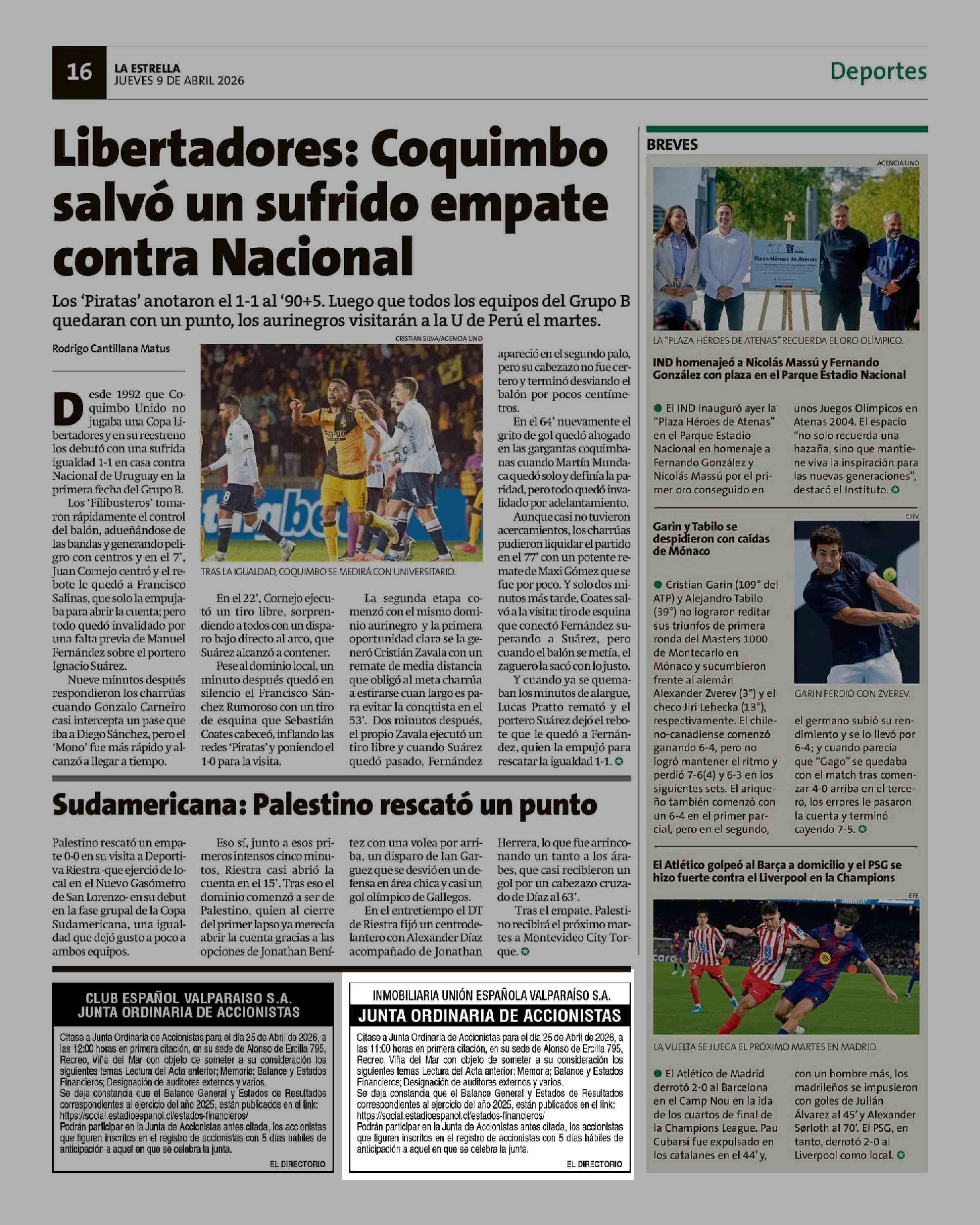 Fuente: La Estrella de Valparaíso (La Estrella de Valparaíso) Página(s): 16