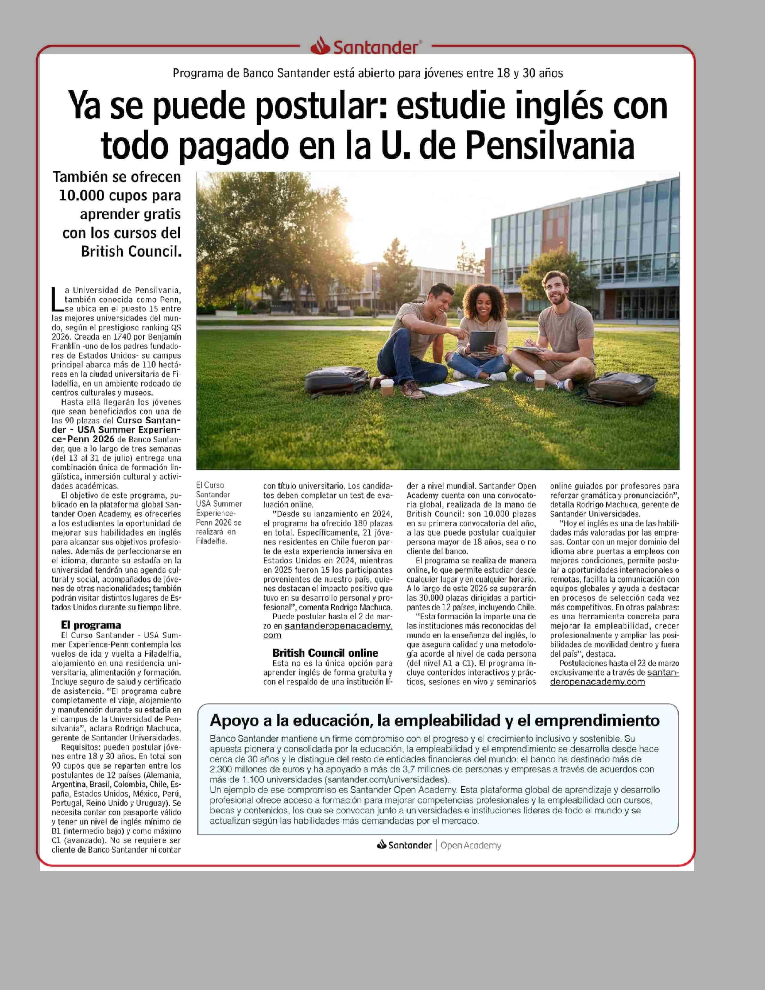 Título: Ya se puede postular: estudie inglés con todo pagado en la U. de Pensilvania