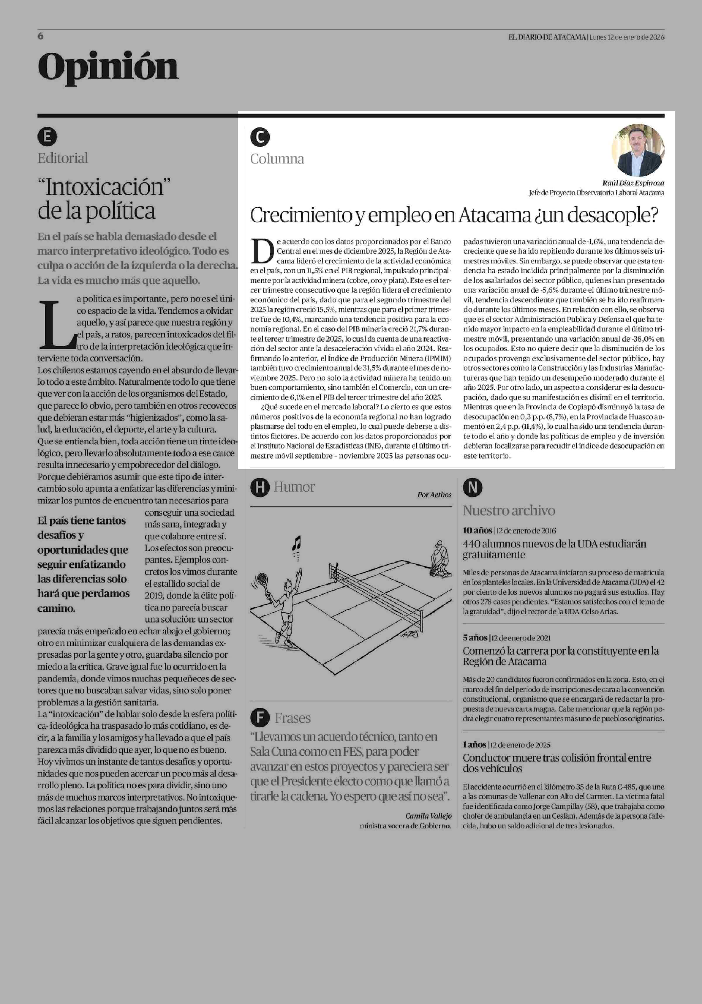 | Fecha: | 12-01-2026 | Sector: | Columnas de Opinión | Región: | Región de Atacama |
