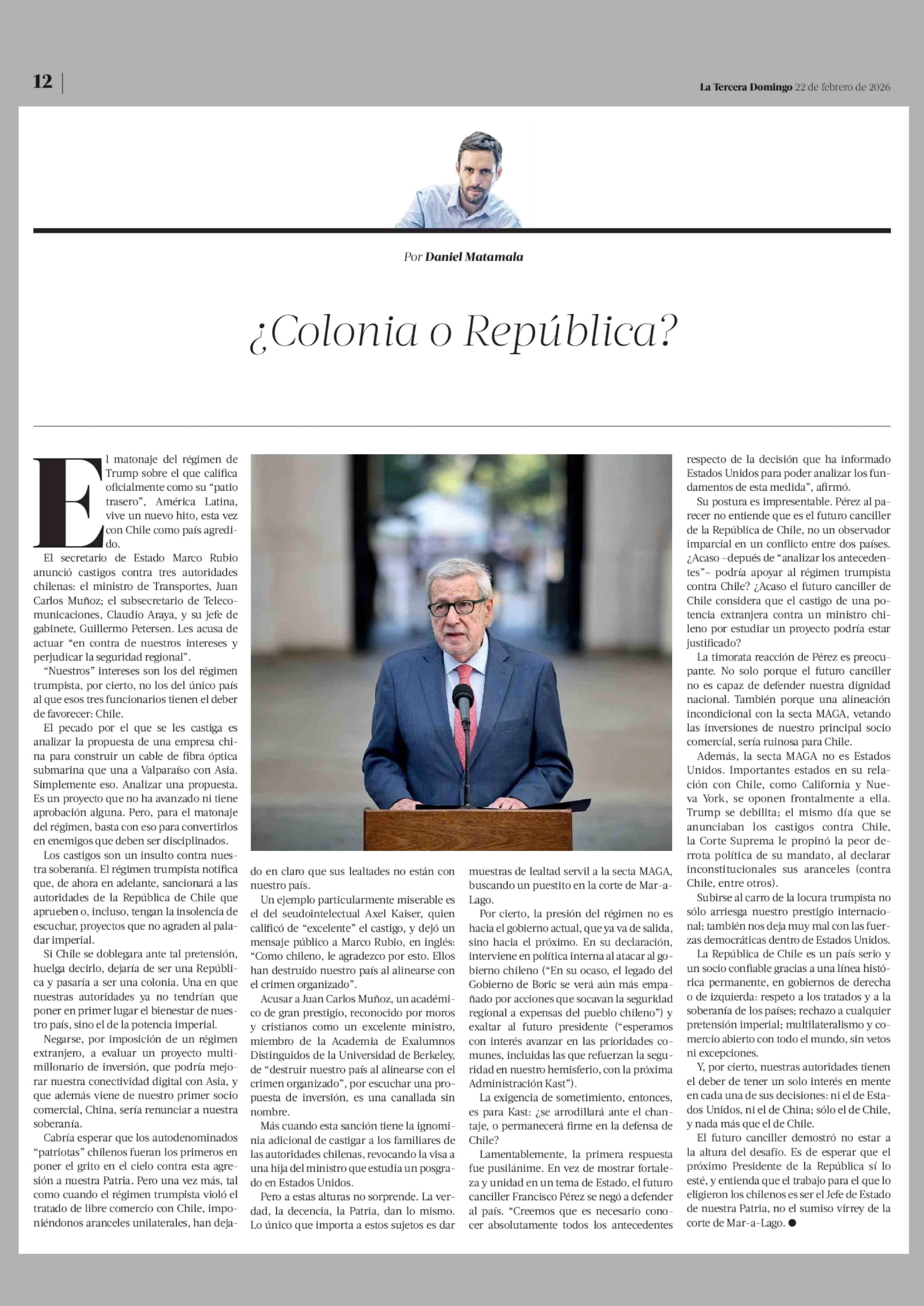 Fecha: 22-02-2026 Sector: Columnas de Opinión Región: Región Metropolitana de Santiago