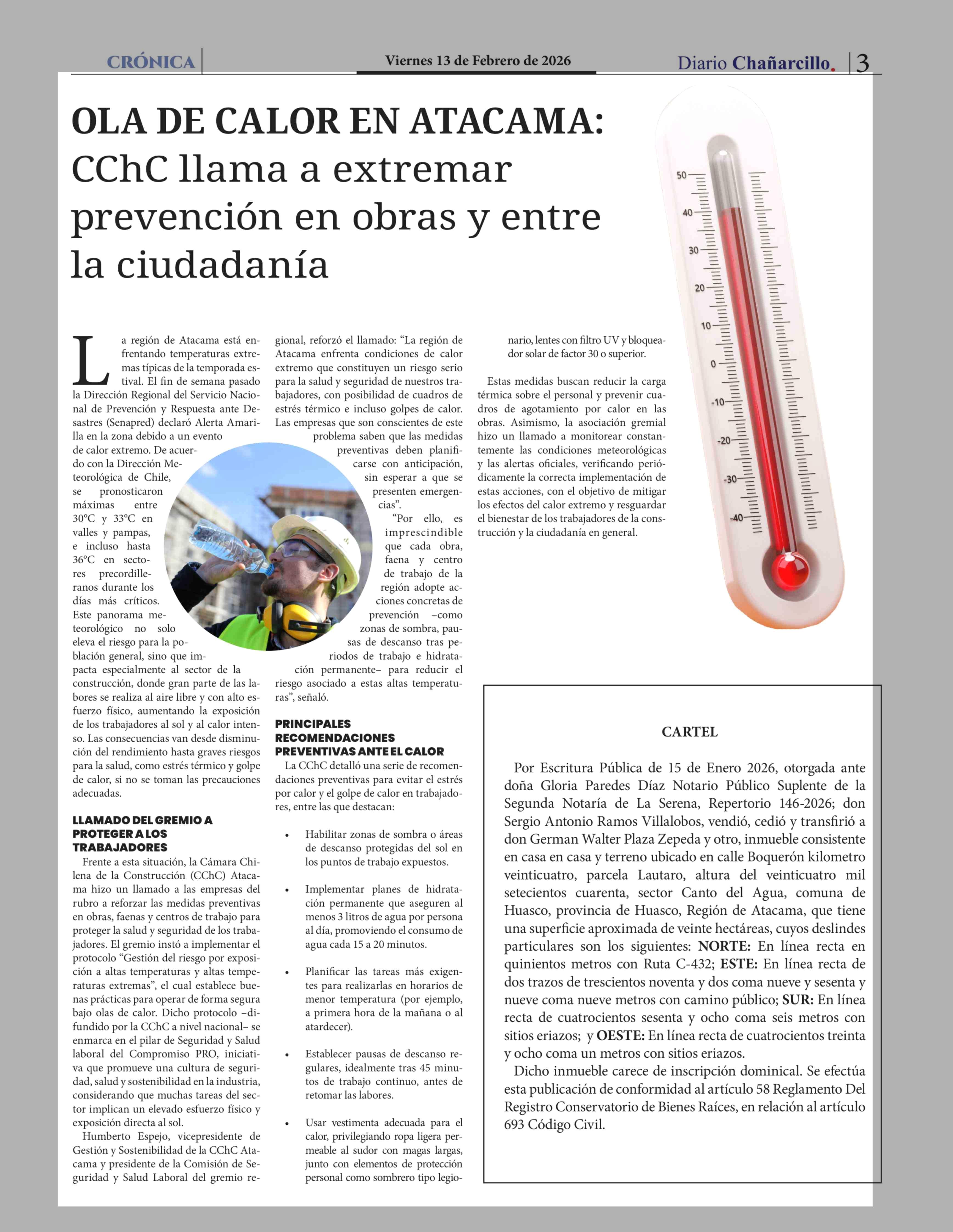 Título: OLA DE CALOR EN ATACAMA: CChC llama a extremar prevención en obras y entre la ciudadanía