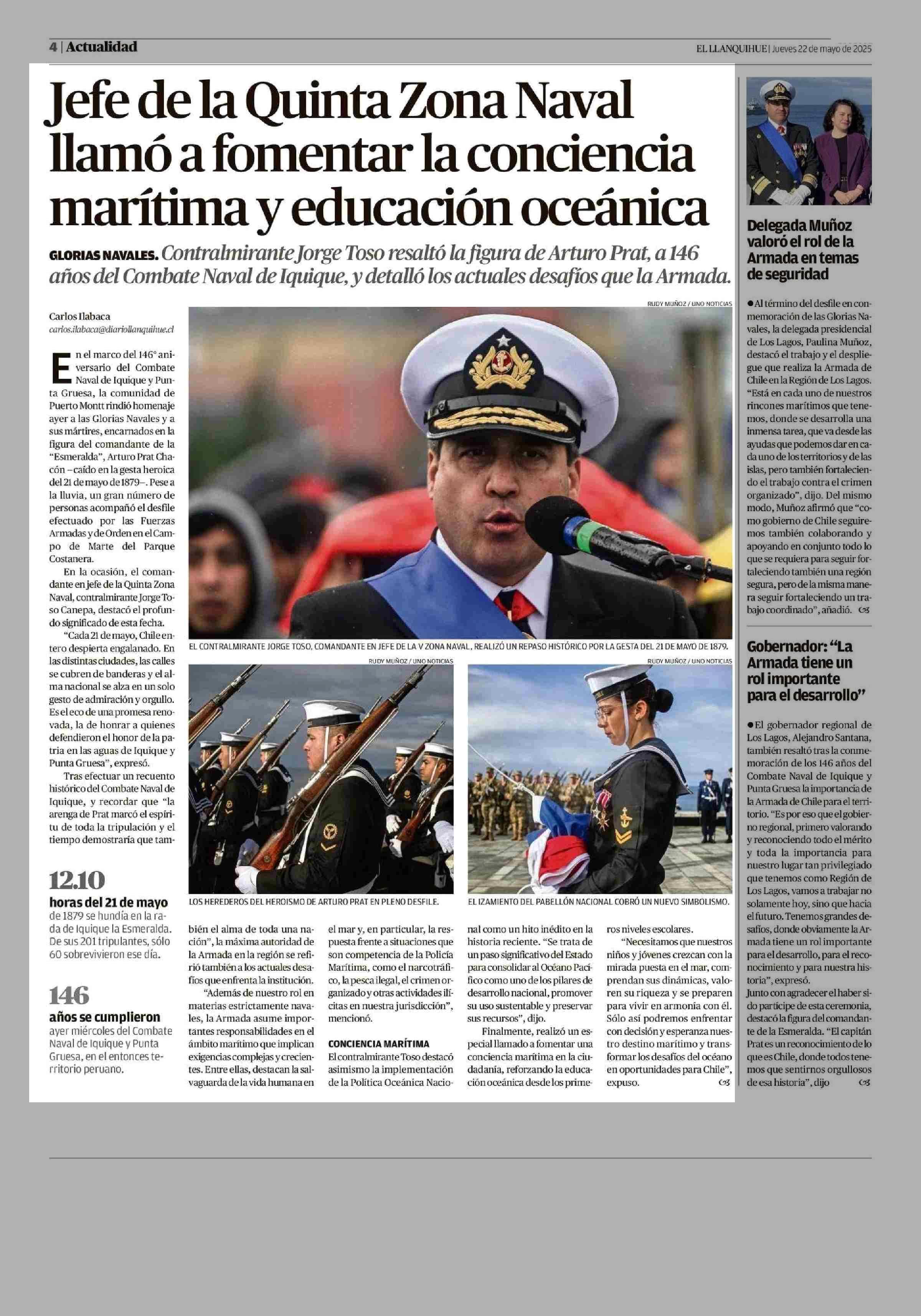 Jefe de la Quinta Zona Naval llamó a fomentar la conciencia educacion oceanica 22-05-2025 El Llanquihue |