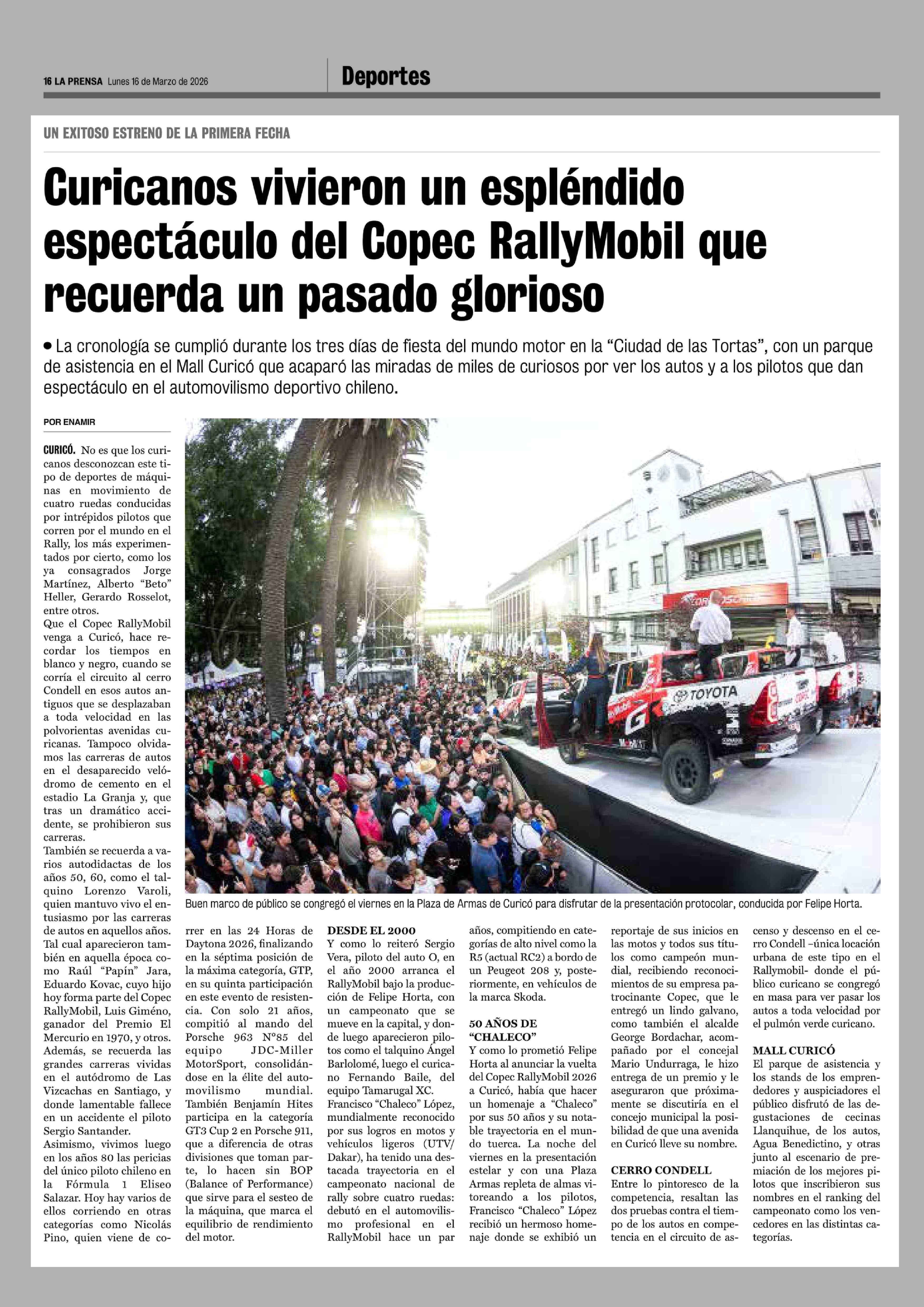 Título: Curicanos vivieron un espléndido espectáculo del Copec RallyMobil que recuerda un pasado glorioso
