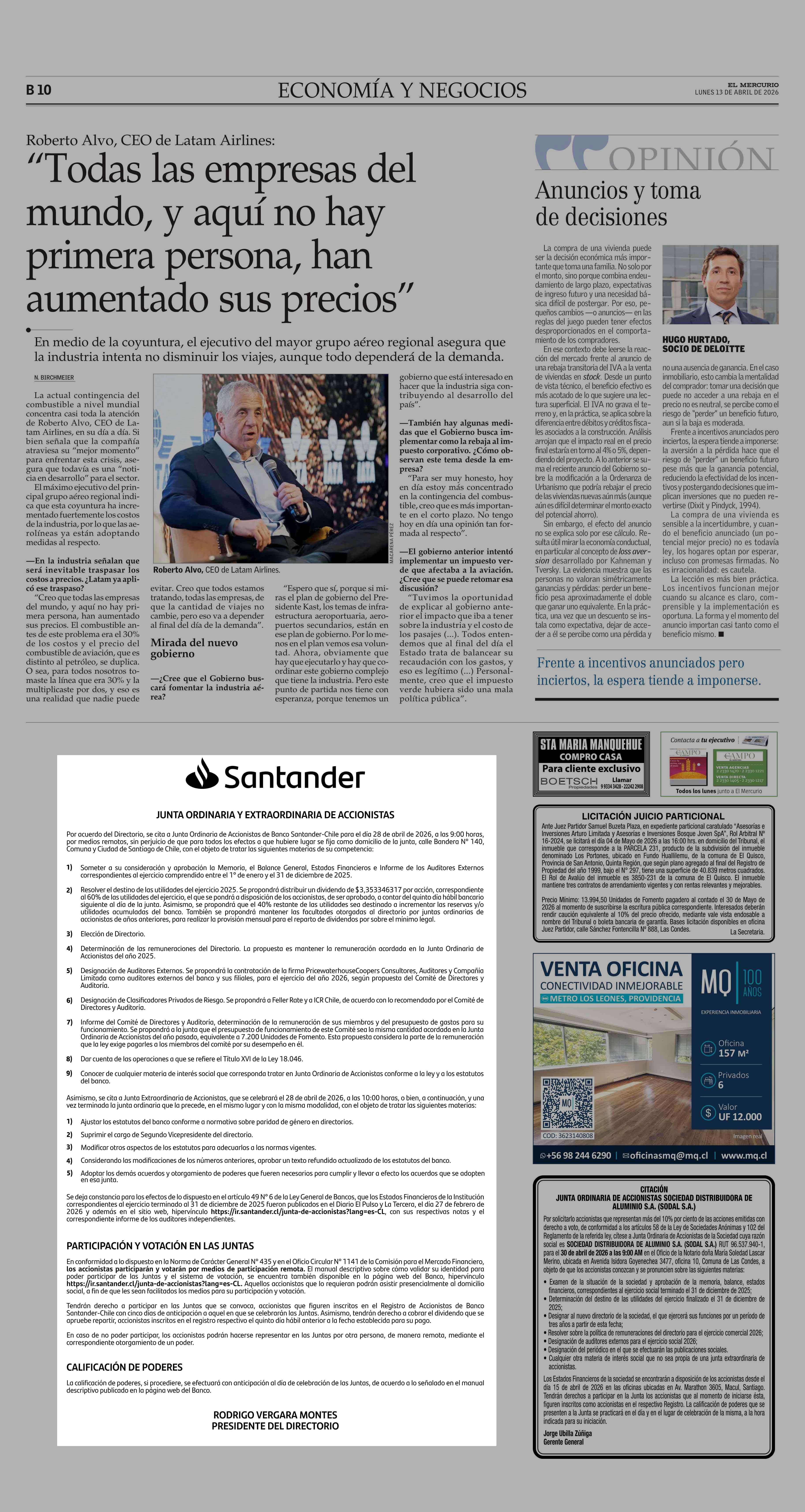 Extractos: Santander 13-04-2026 El Mercurio |