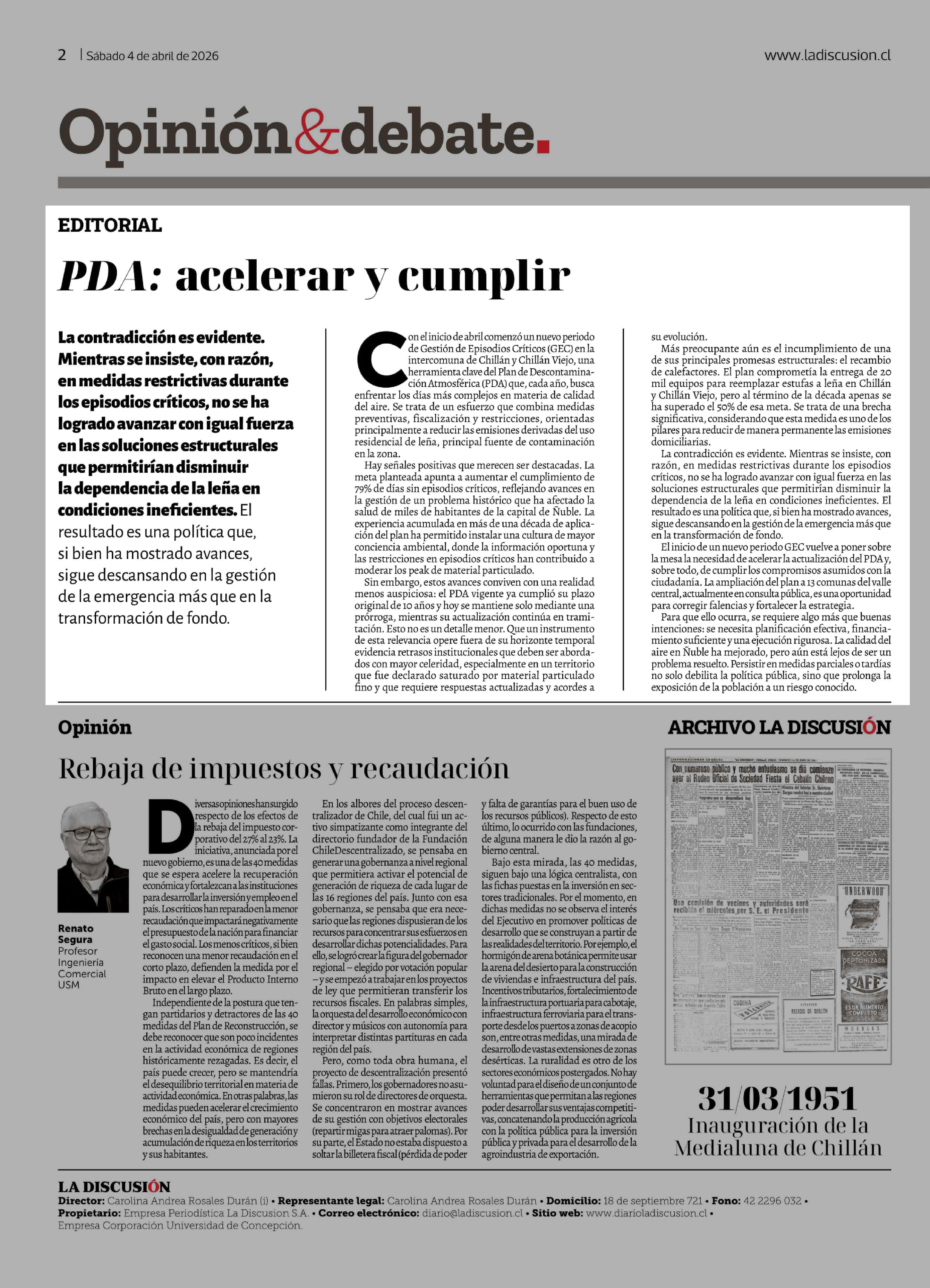 Fecha: 04-04-2026 Sector: Editorial Región: Región del Ñuble