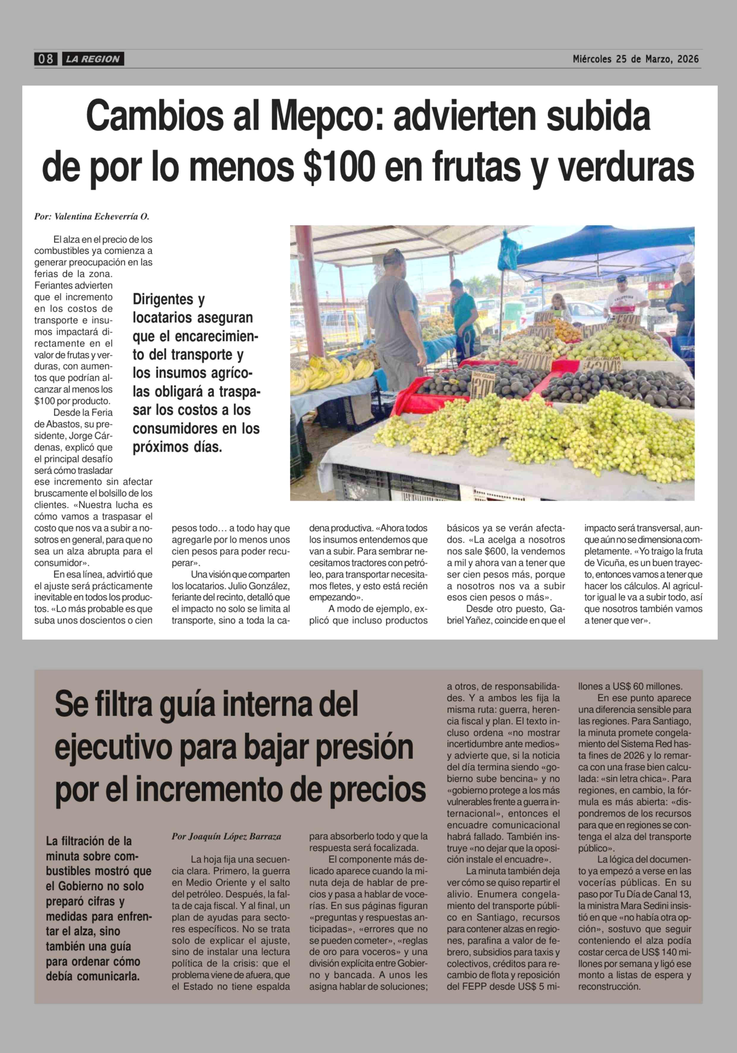 Título: Cambios al Mepco: advierten subida de por lo menos $100 en frutas y verduras