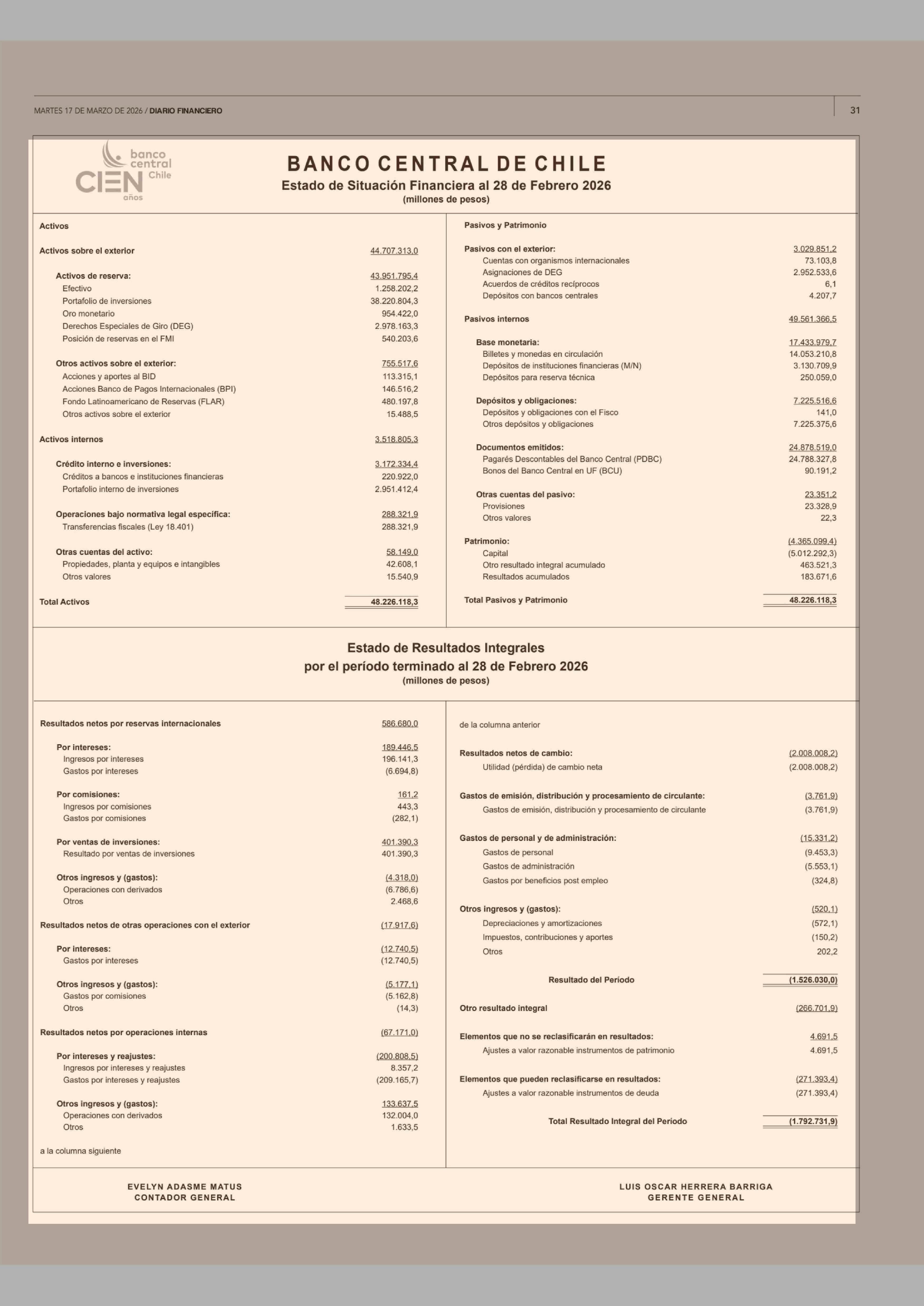 Título: Extractos: BANCO CENTRAL DE CHILE