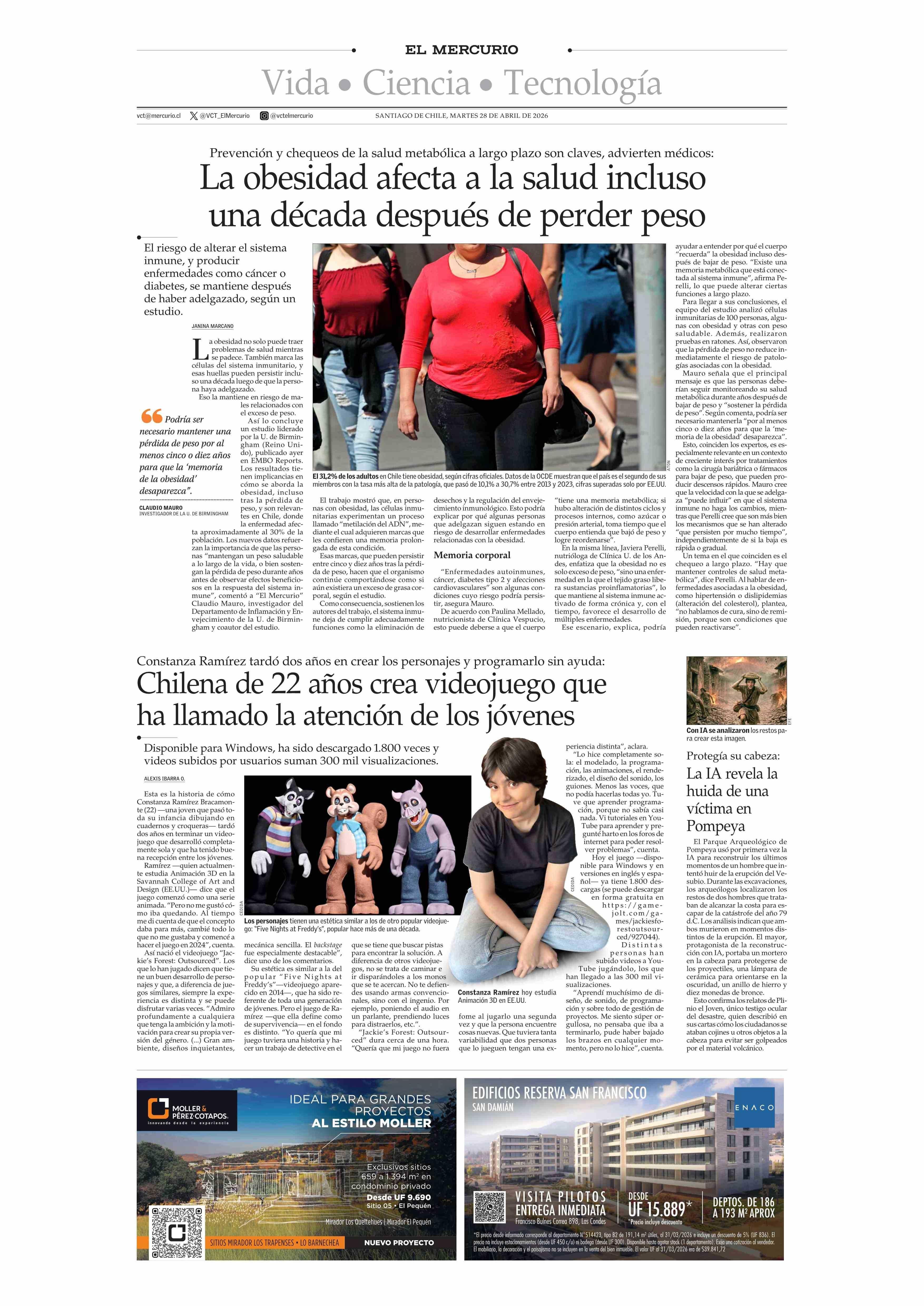 La obesidad afecta a la salud incluso una década después de perder peso 28-04-2026 El Mercurio |