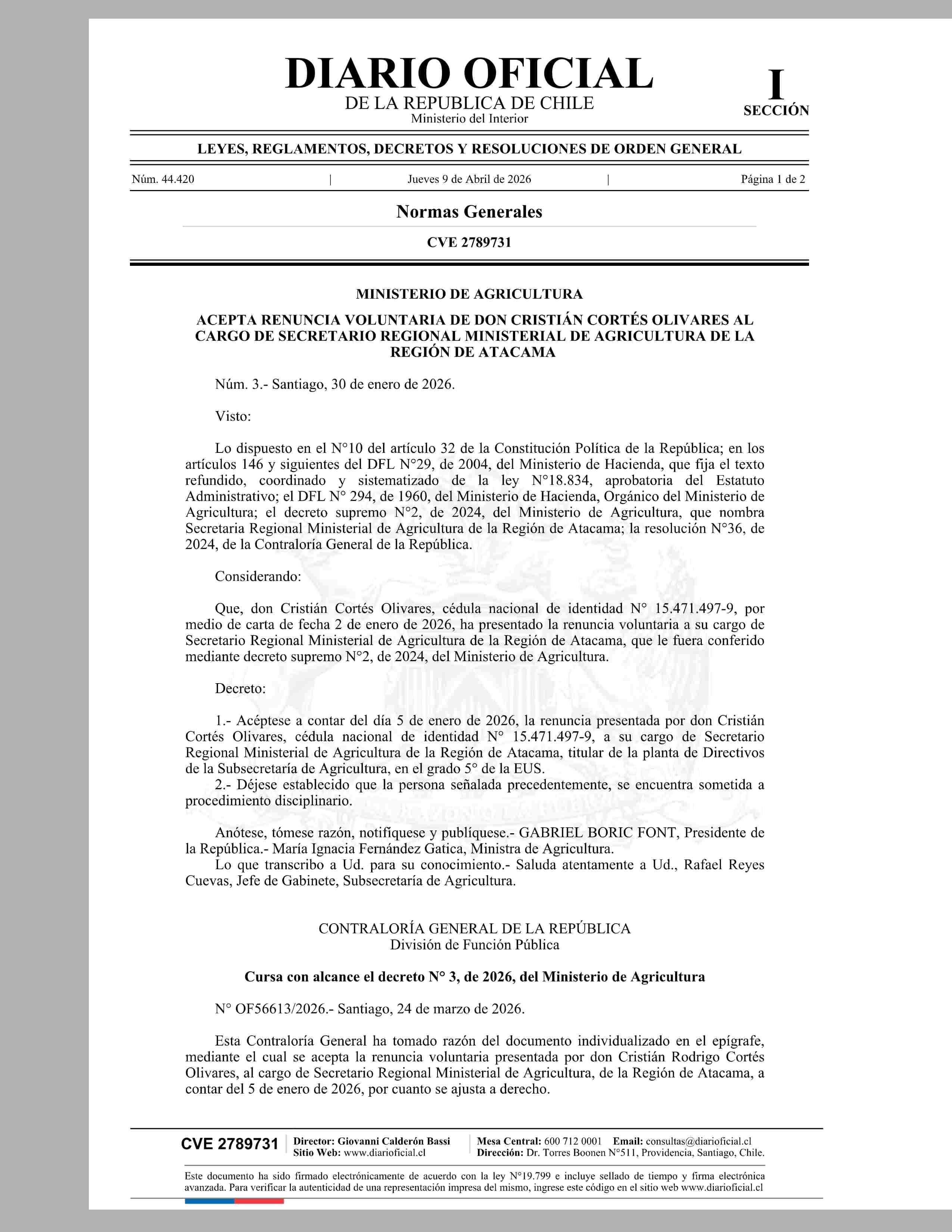 MINISTERIO DE AGRICULTURA 09-04-2026 Diario Oficial Edición Electrónica |