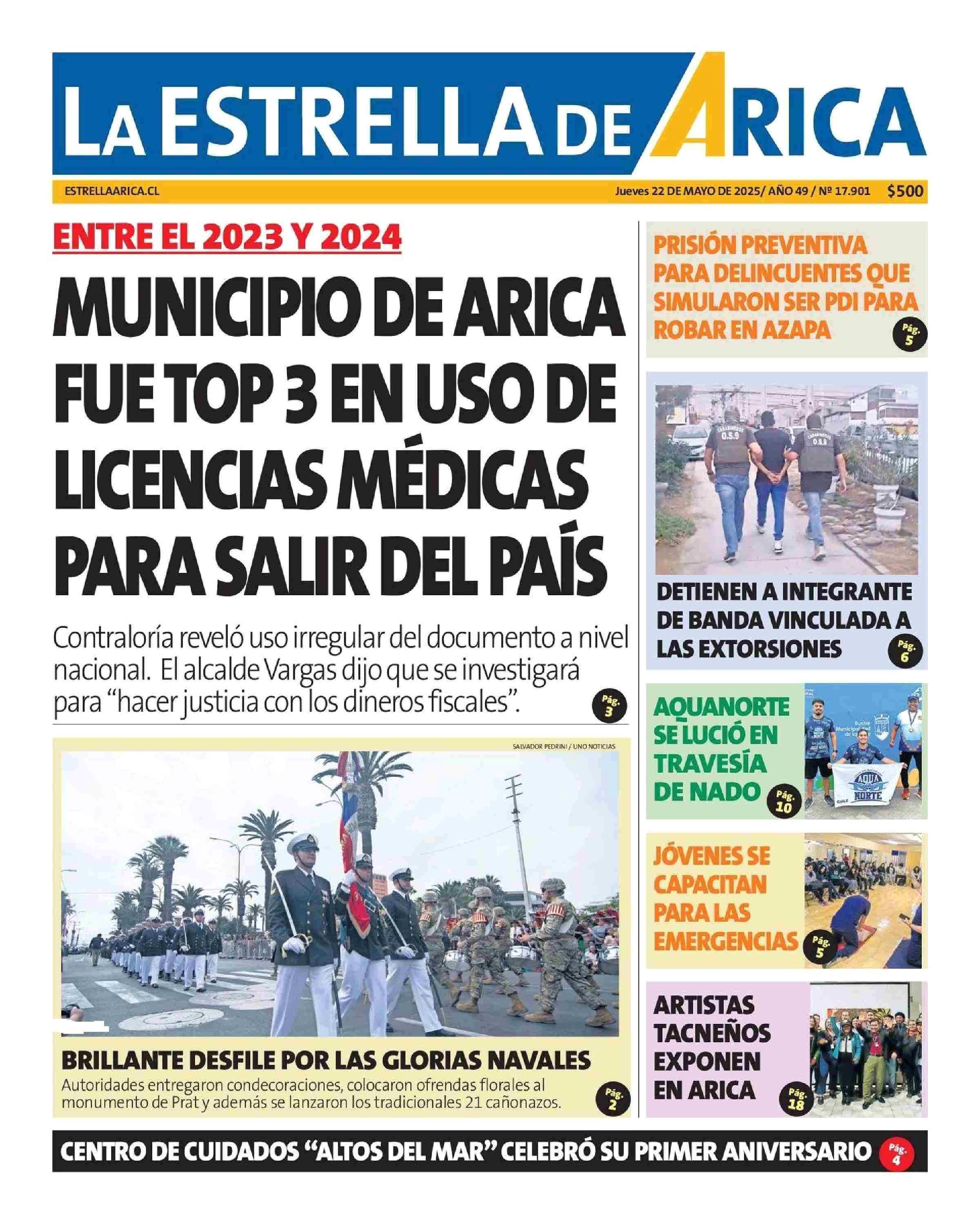 Fecha: 22-05-2025 Sector: Portada Región: Región de Arica y Parinacota