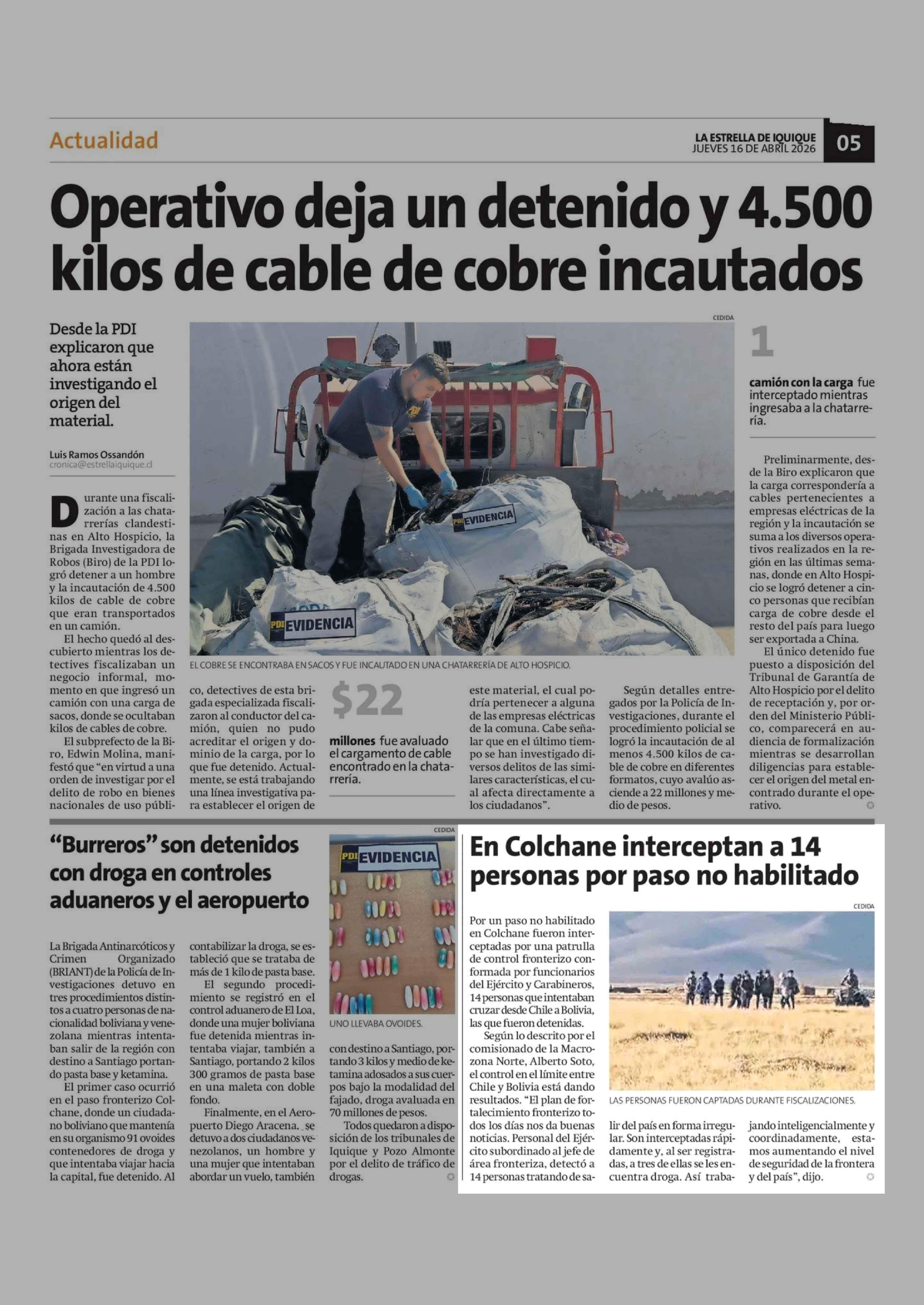 En Colchane interceptan a 14 personas por paso no habilitado 16-04-2026 La Estrella de Iquique |