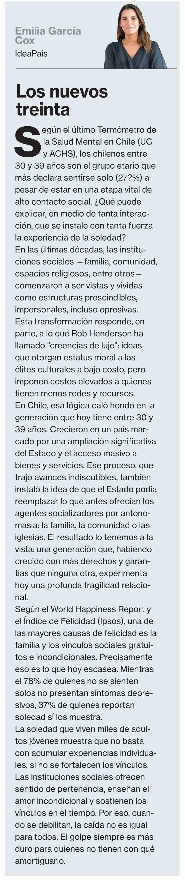COLUMNAS DE OPINIÓN: Los nuevos treinta 09-06-2025 La Segunda |