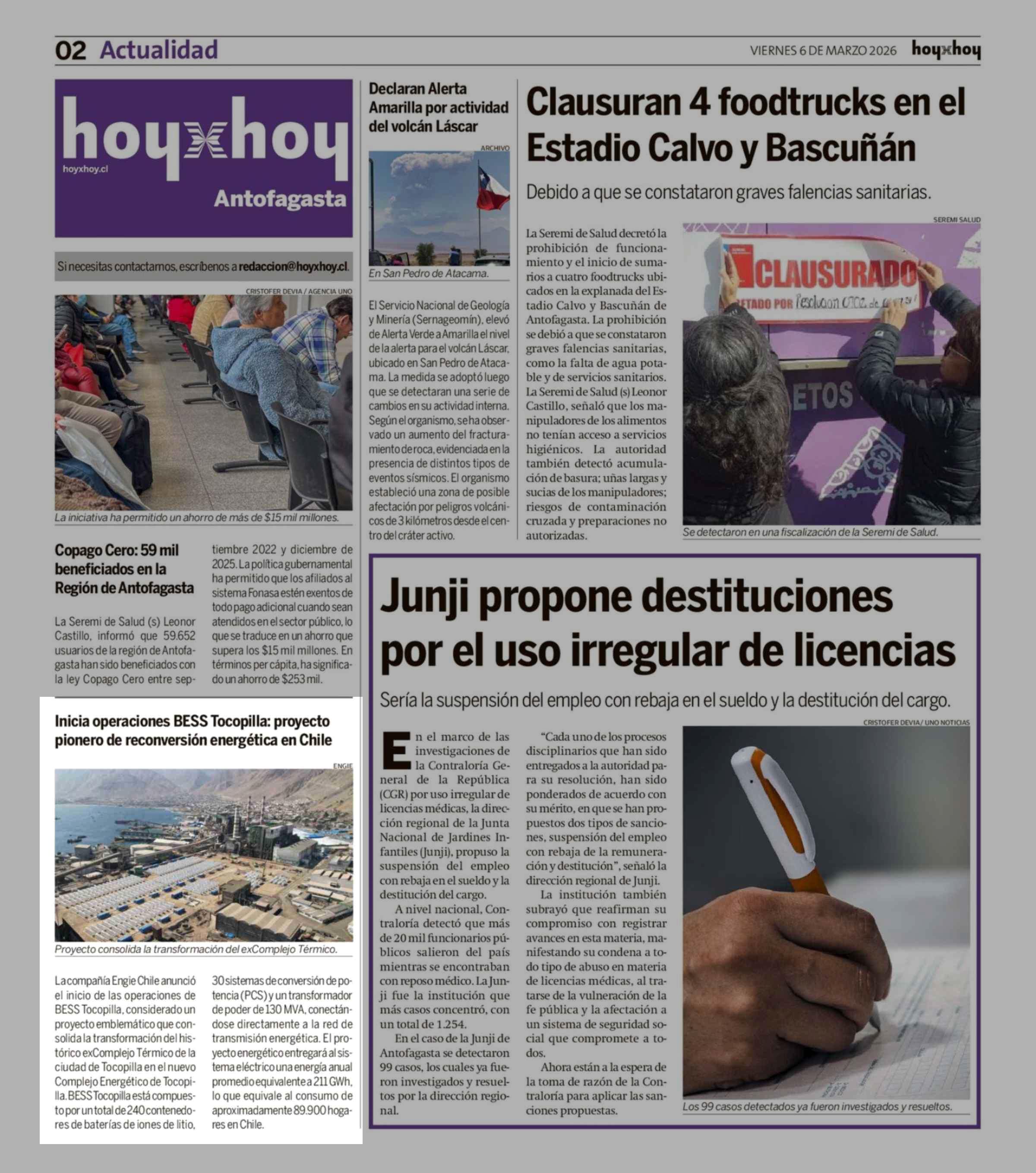 | Fecha: | 06-03-2026 | Sector: | Noticia general | Región: | Región de Antofagasta |