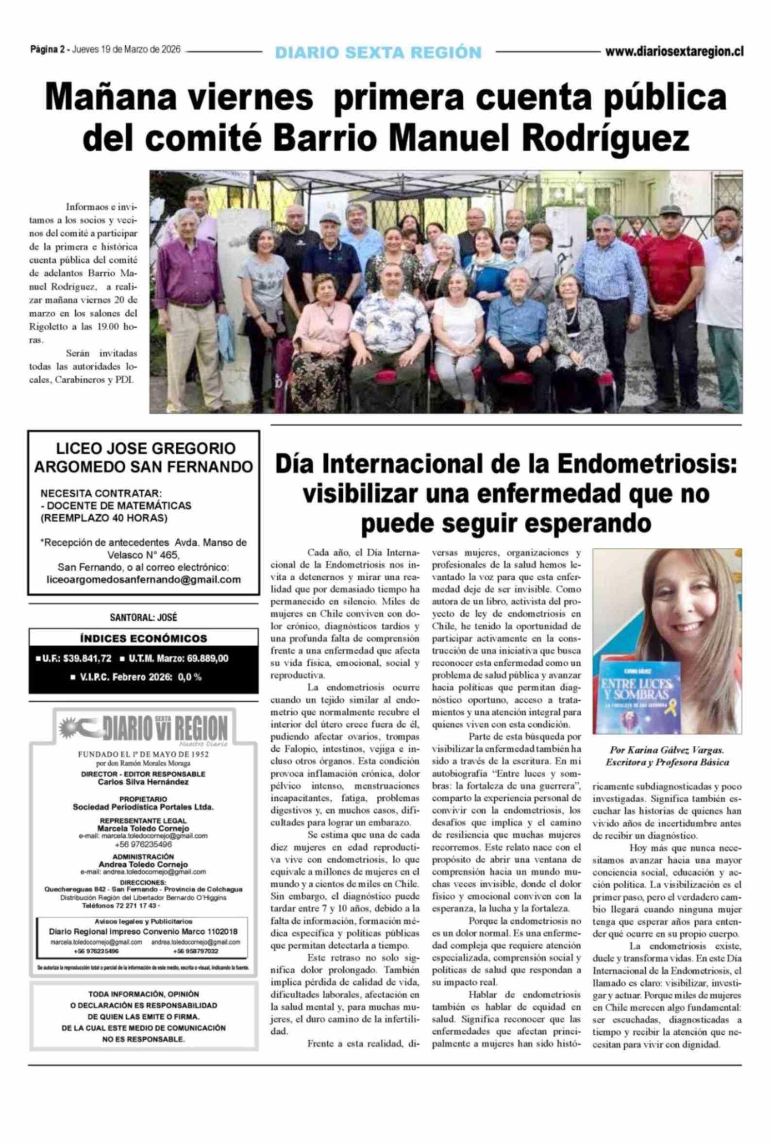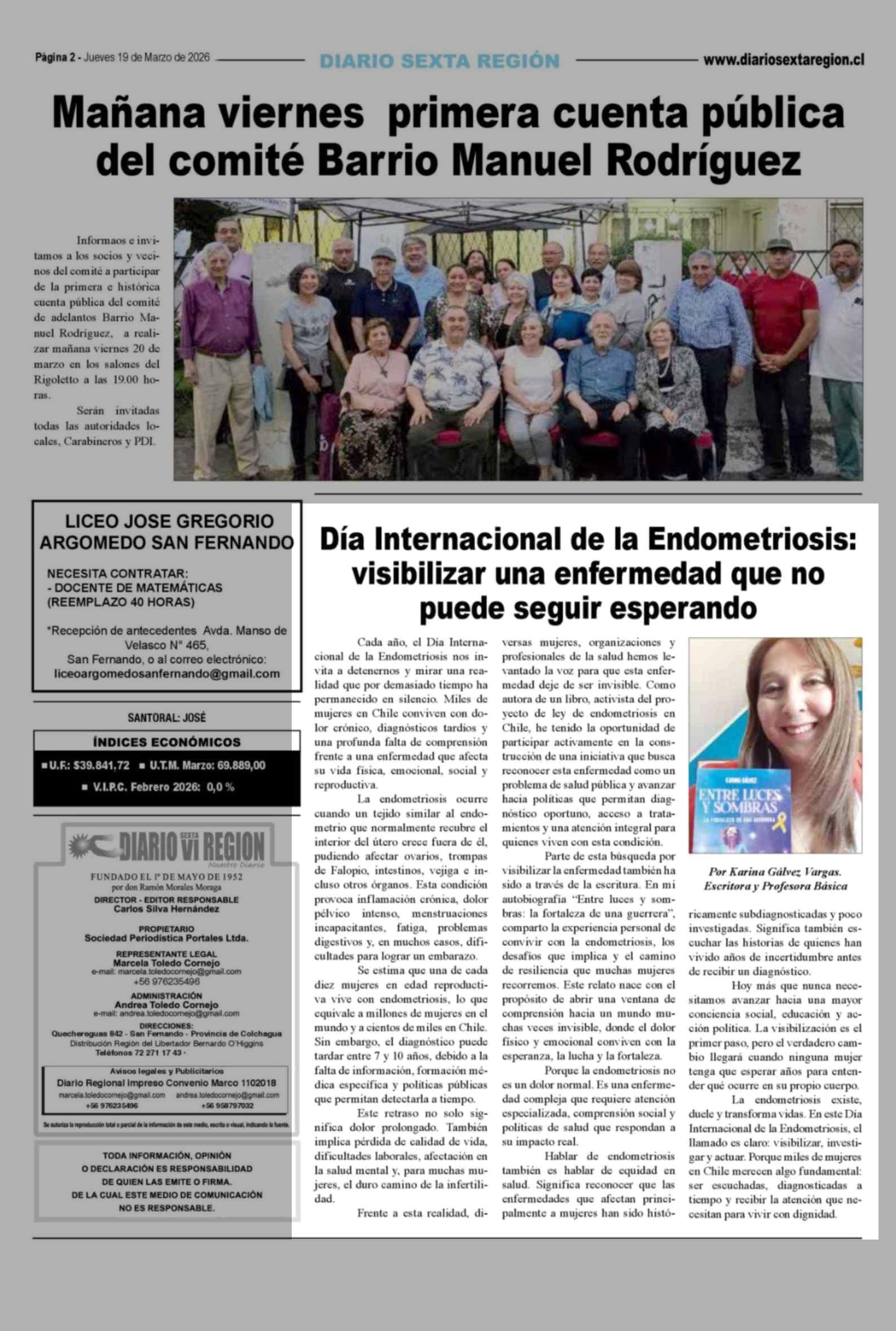 Día Internacional de la Endometriosis: visibilizar una enfermedad que no puede seguir esperando 19-03-2026 Diario VI Región |