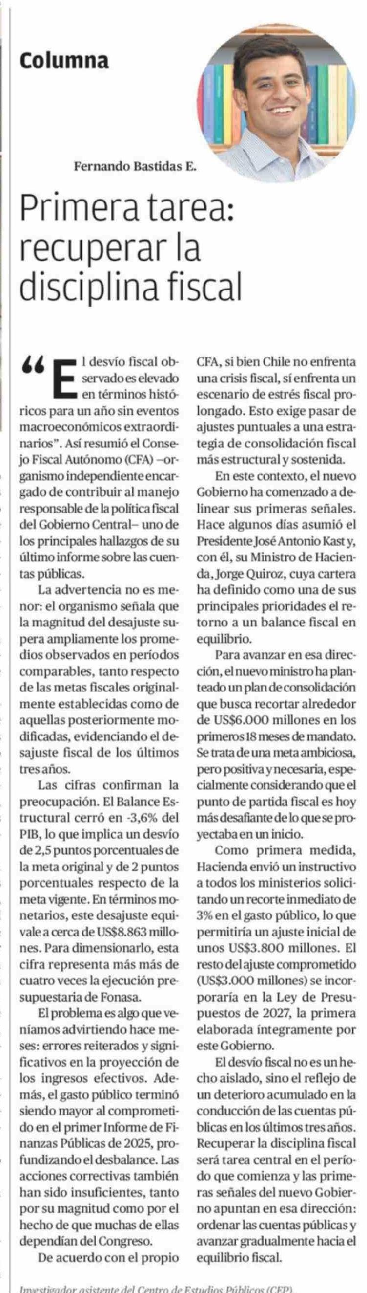 Título: Columnas de Opinión: Primera tarea: recuperar la disciplina fiscal