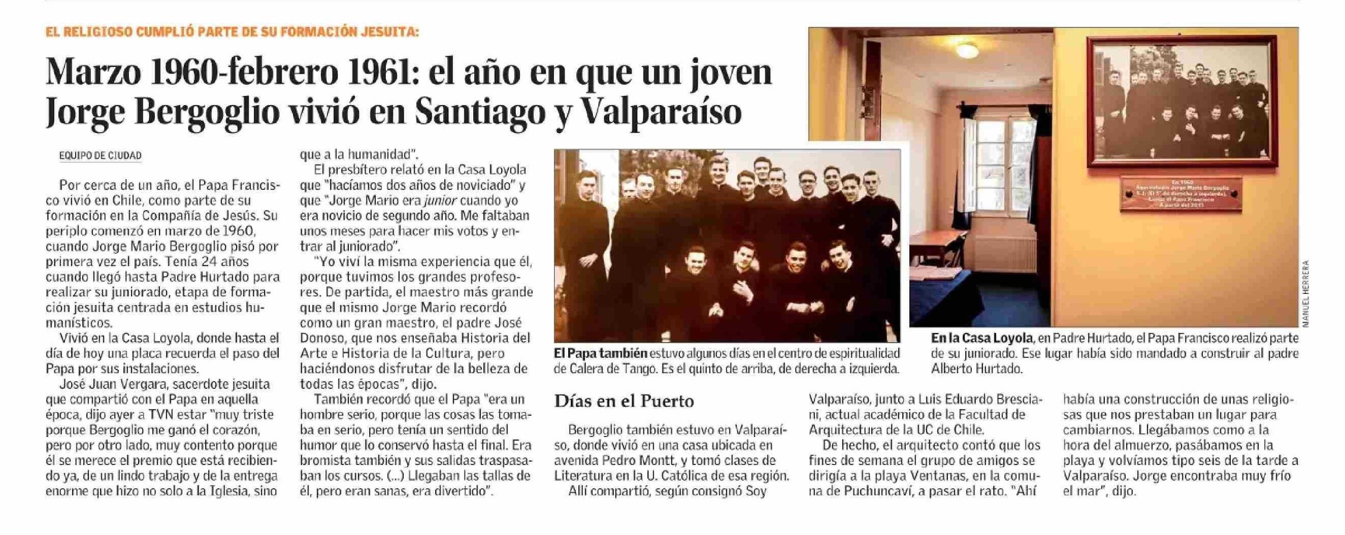 Marzo 1960-febrero 1961: el año en que un joven Jorge Bergoglio vivió en Santiago y Valparaíso 22-04-2025 El Mercurio |