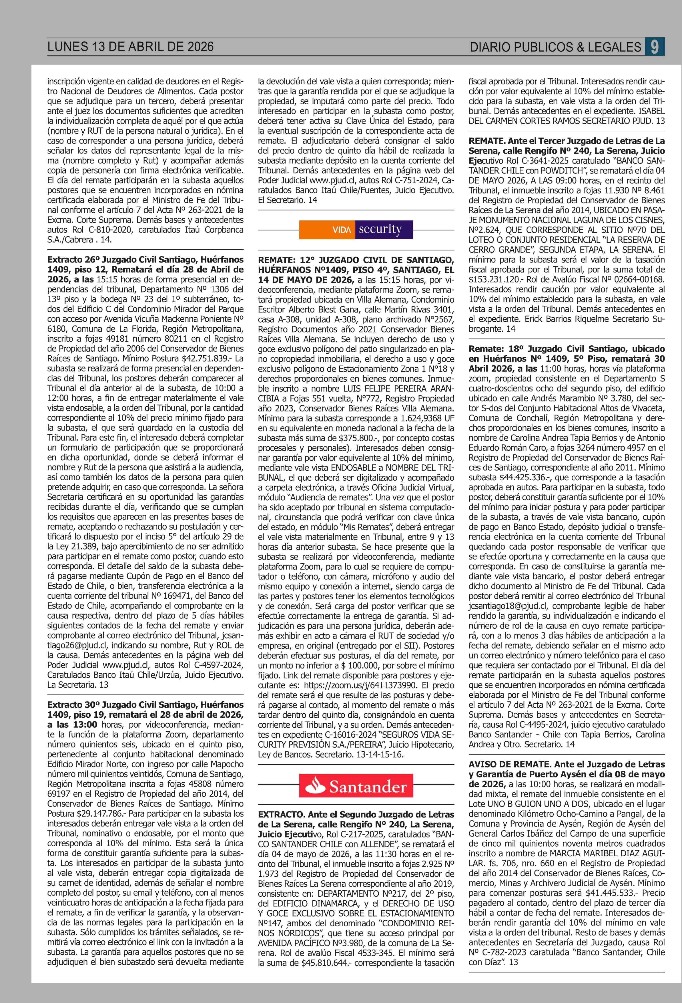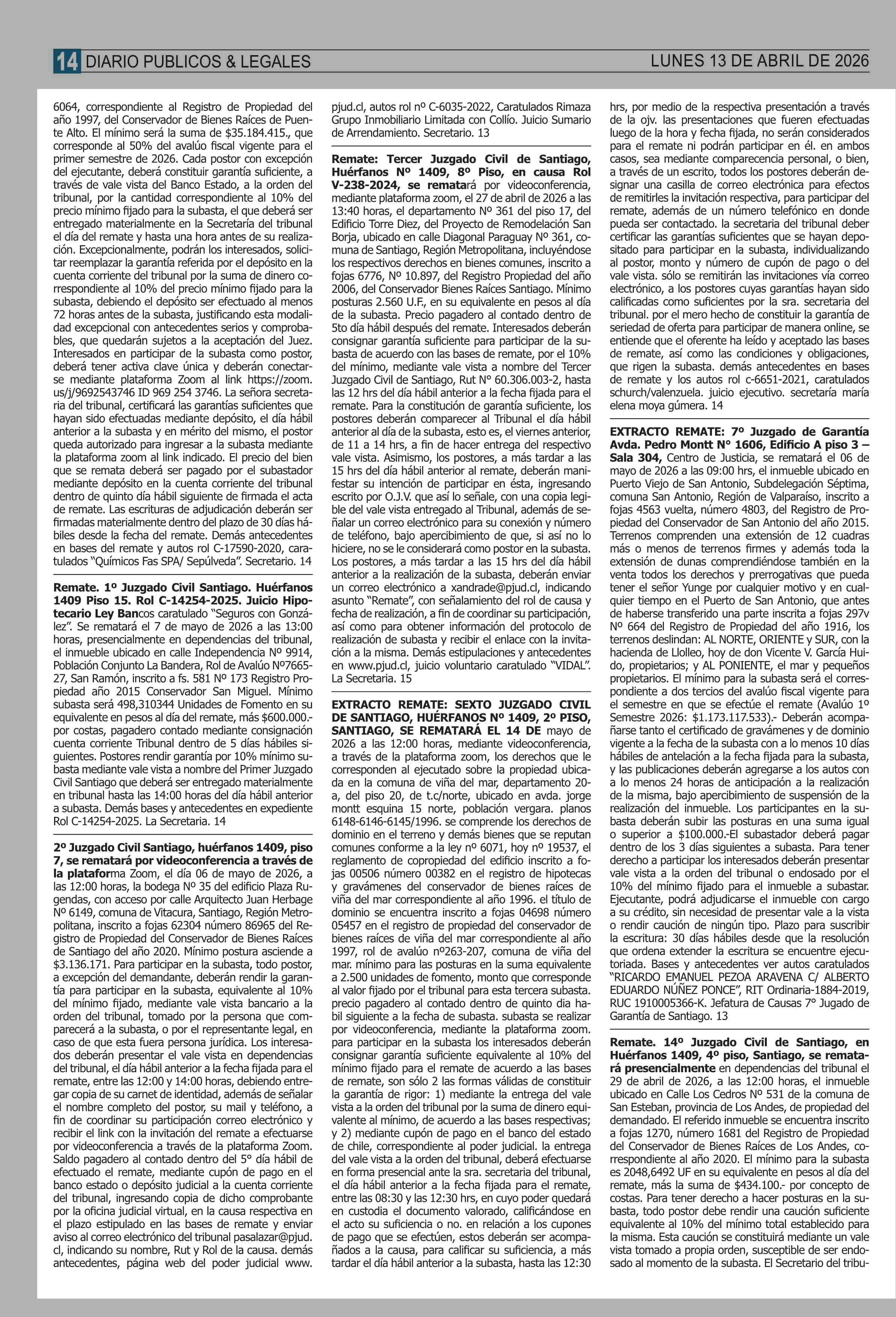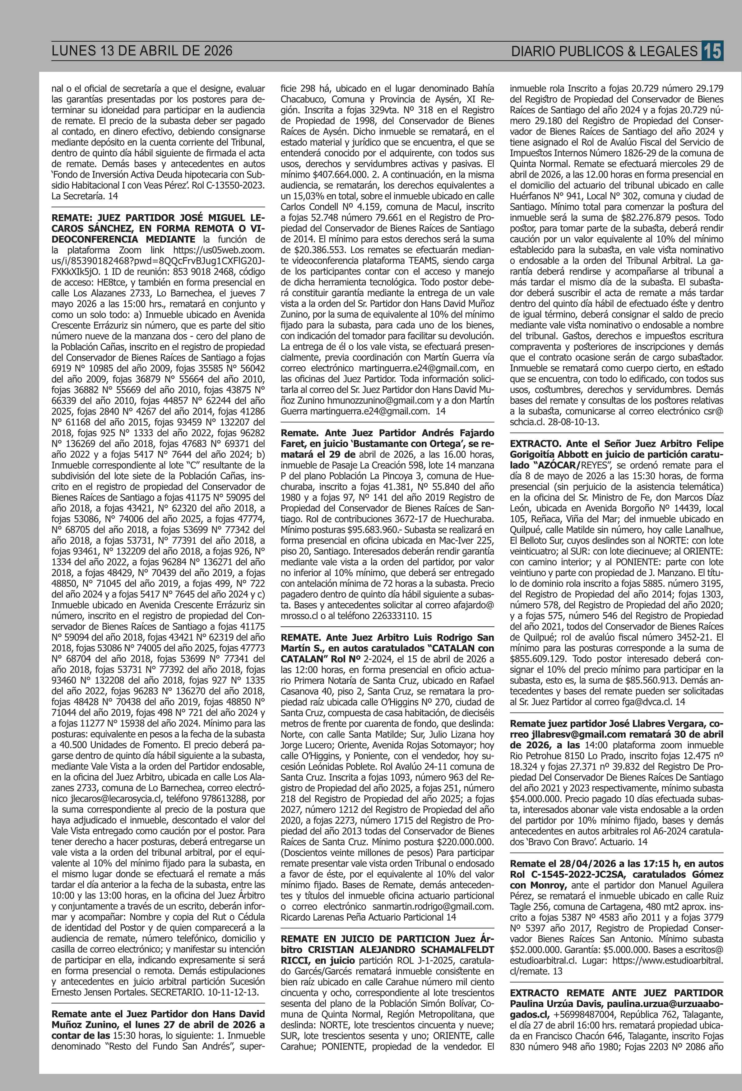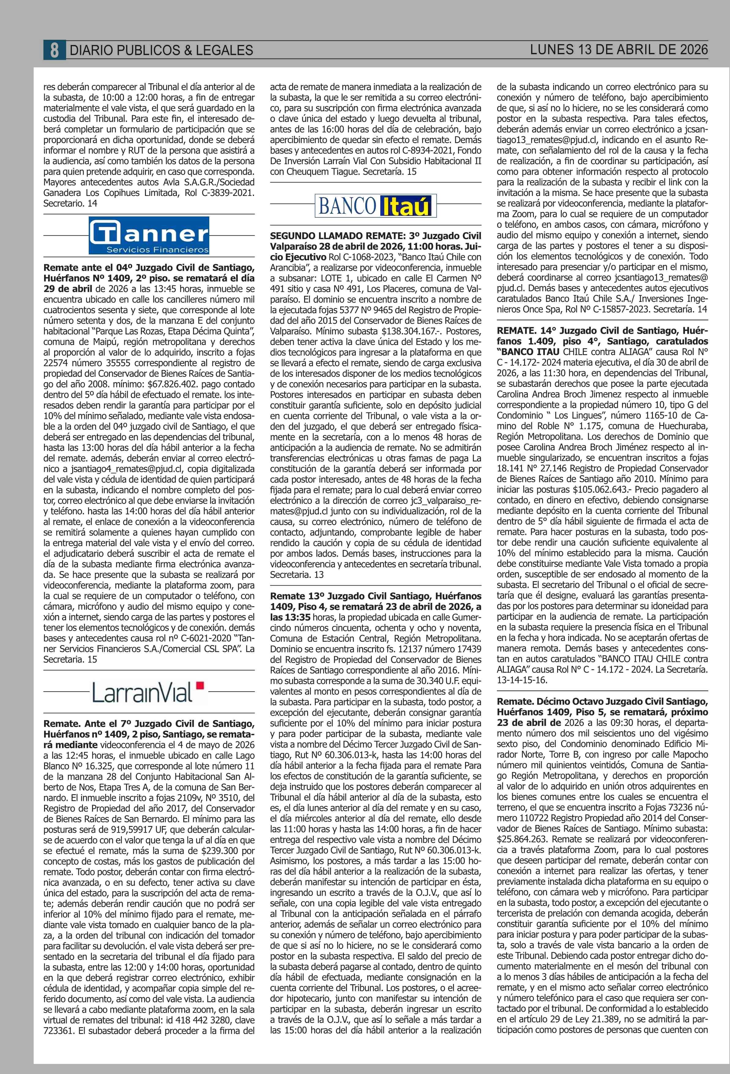 | Fecha: | 13-04-2026 | Sector: | Remates | Región: | Región Metropolitana de Santiago |