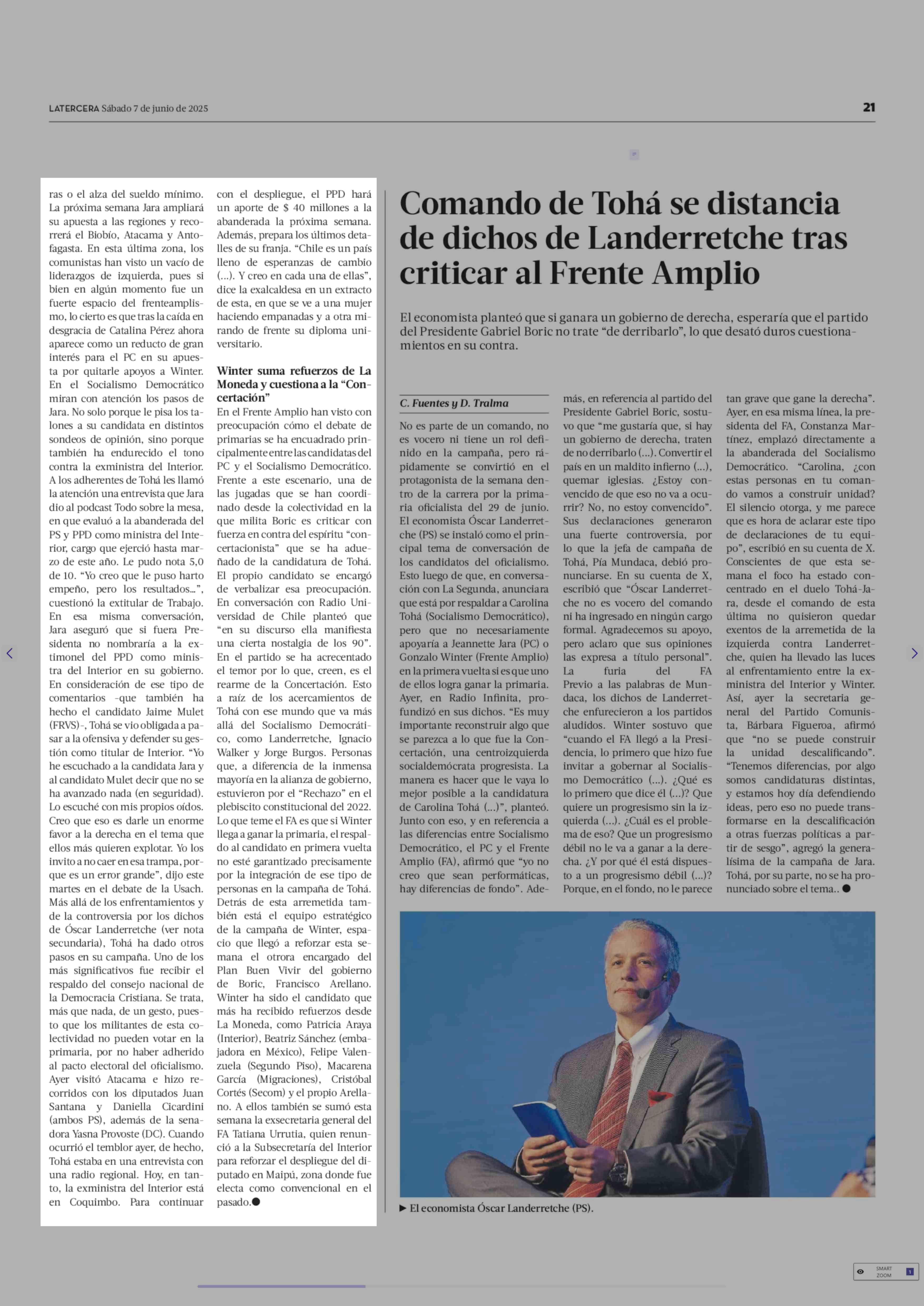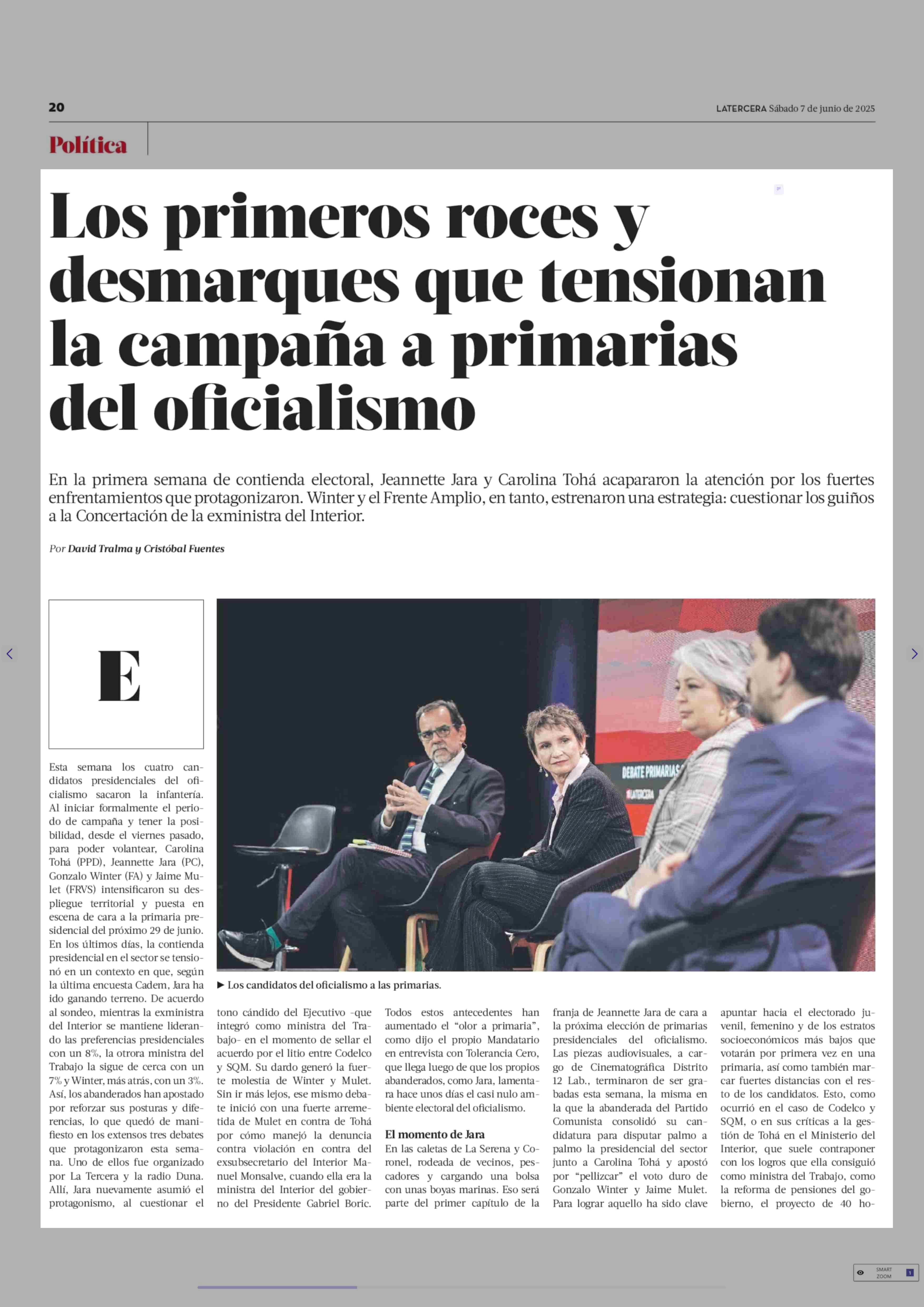 Los primeros roces y desmarques que tensionan del oficialismo la campaña a primarias 07-06-2025 La Tercera |