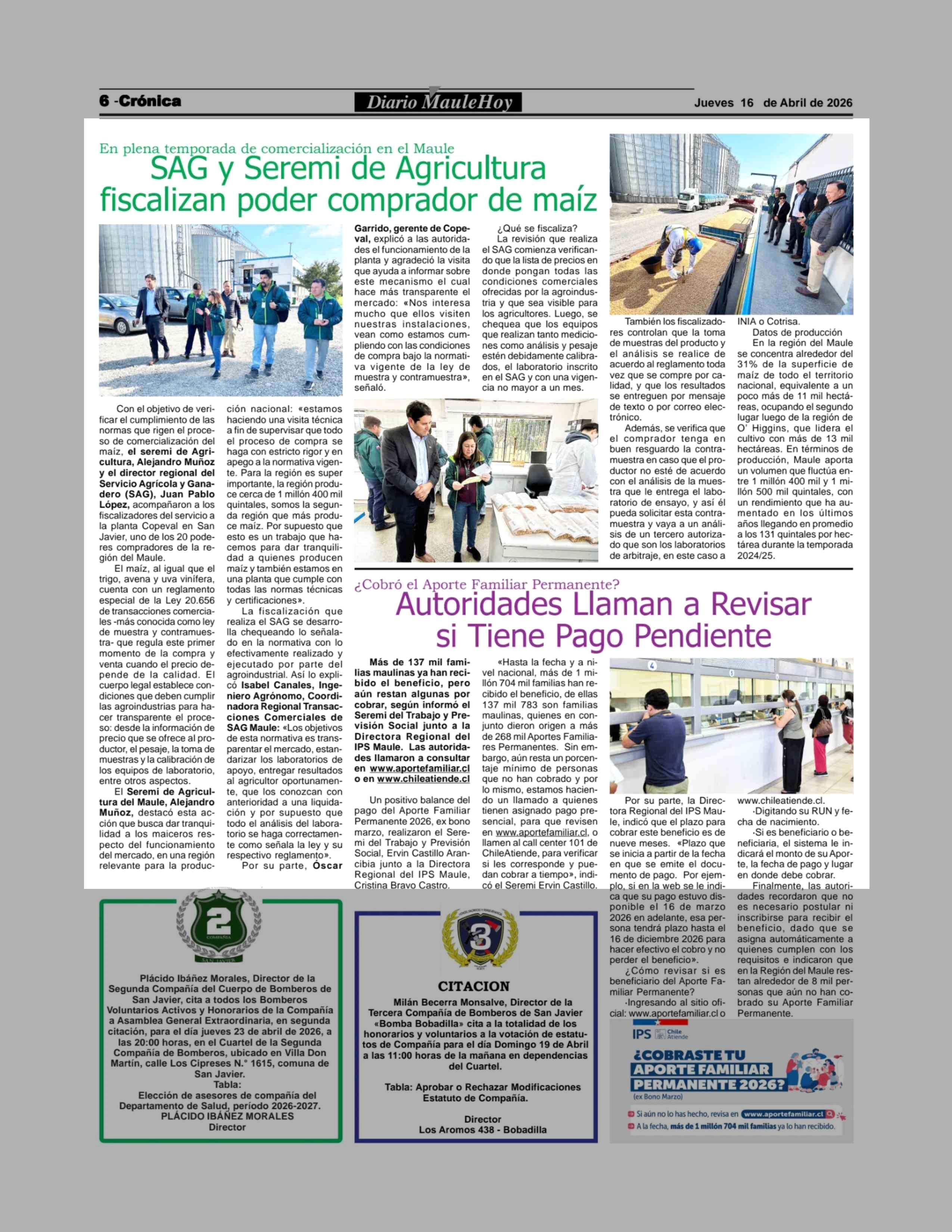 Fecha: 16-04-2026 Sector: Noticia general Región: Región del Maule