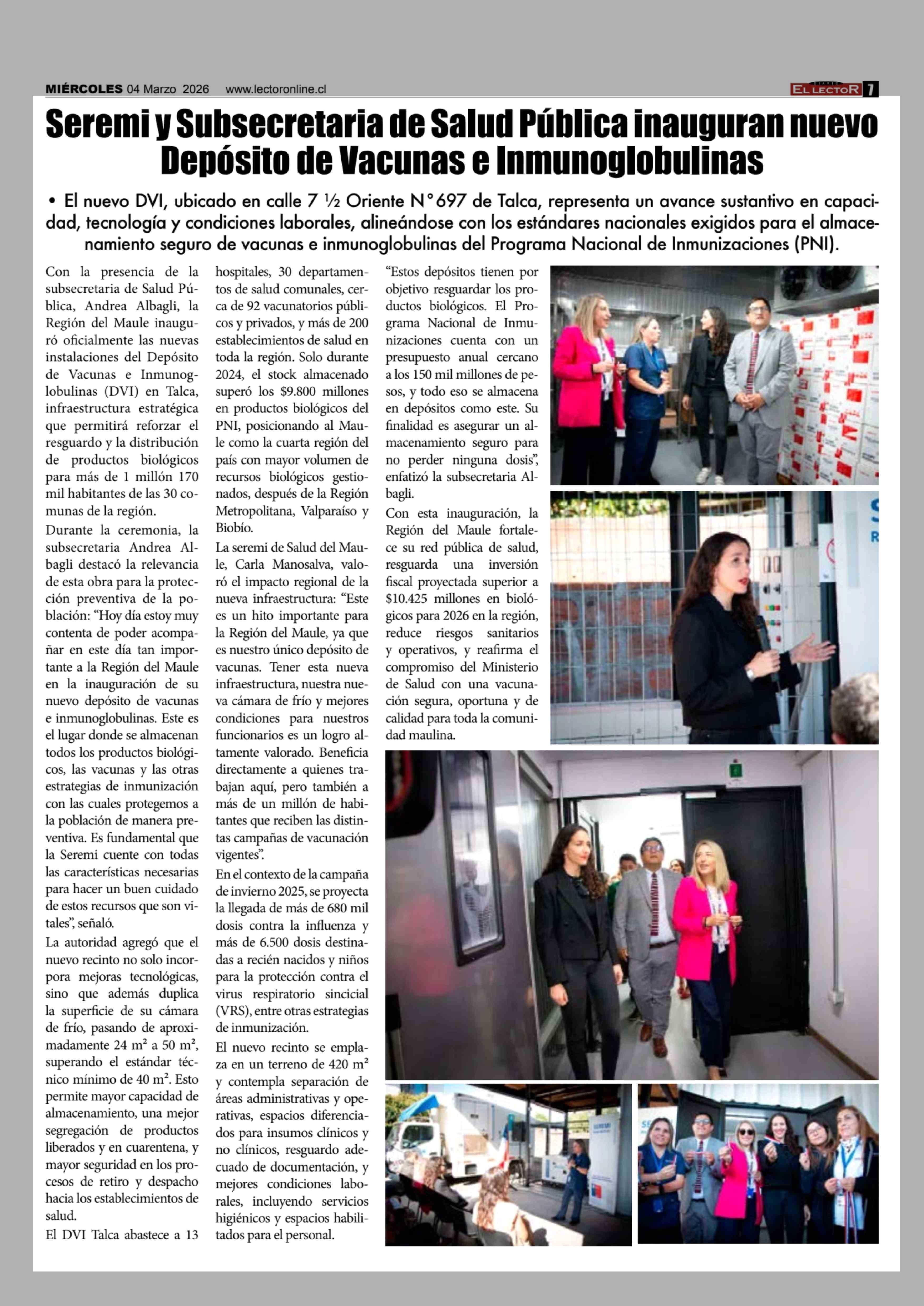 Título: Seremi y Subsecretaria de Salud Pública inauguran nuevo Depósito de Vacunas e Inmunoglobulinas