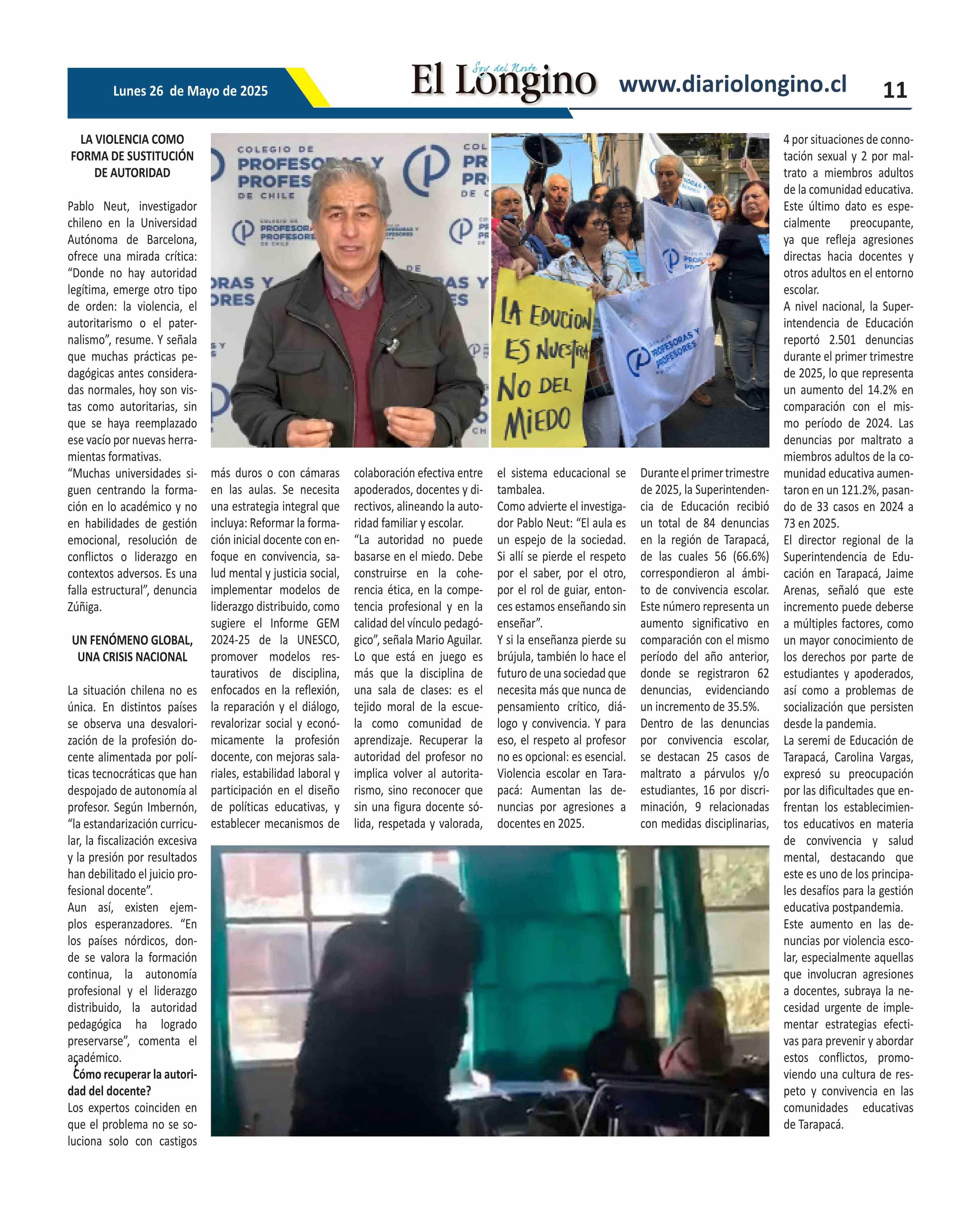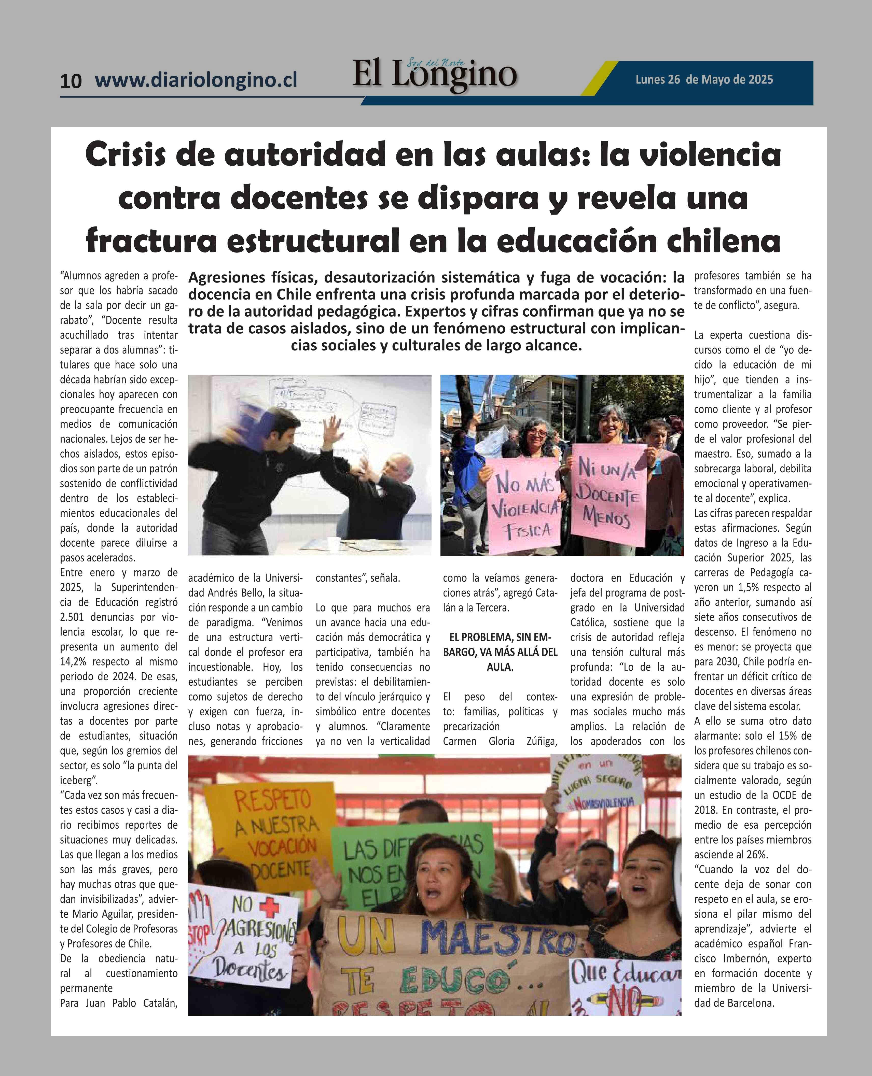 Crisis de autoridad en las aulas: la violencia contra docentes se dispara y revela una fractura estructural en la educación chilena 26-05-2025 El Longino |