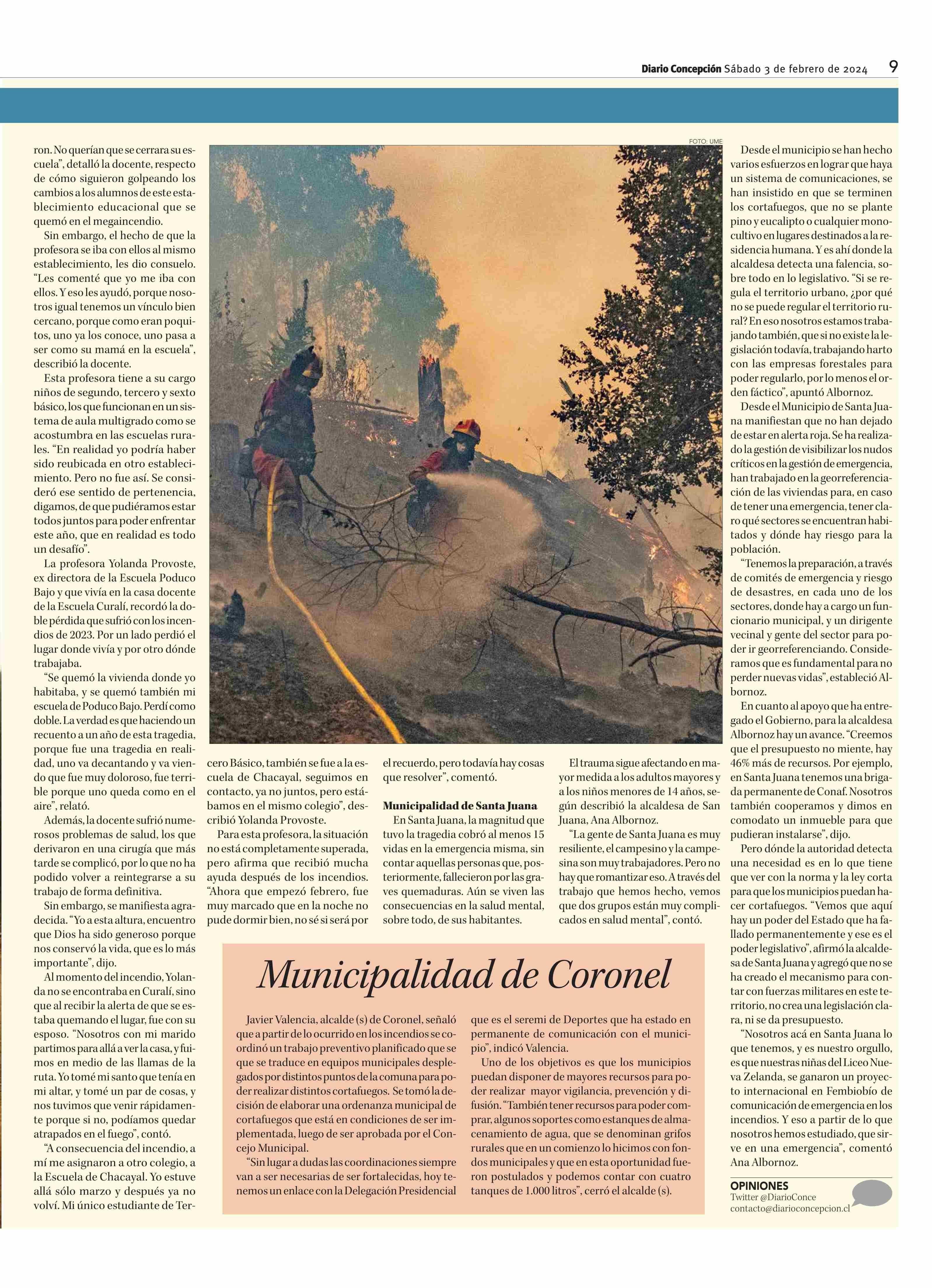 365 días después: los avances y pendientes que dejó la peor catástrofe de incendios forestales en el Biobío 03-02-2024 Diario Concepción |