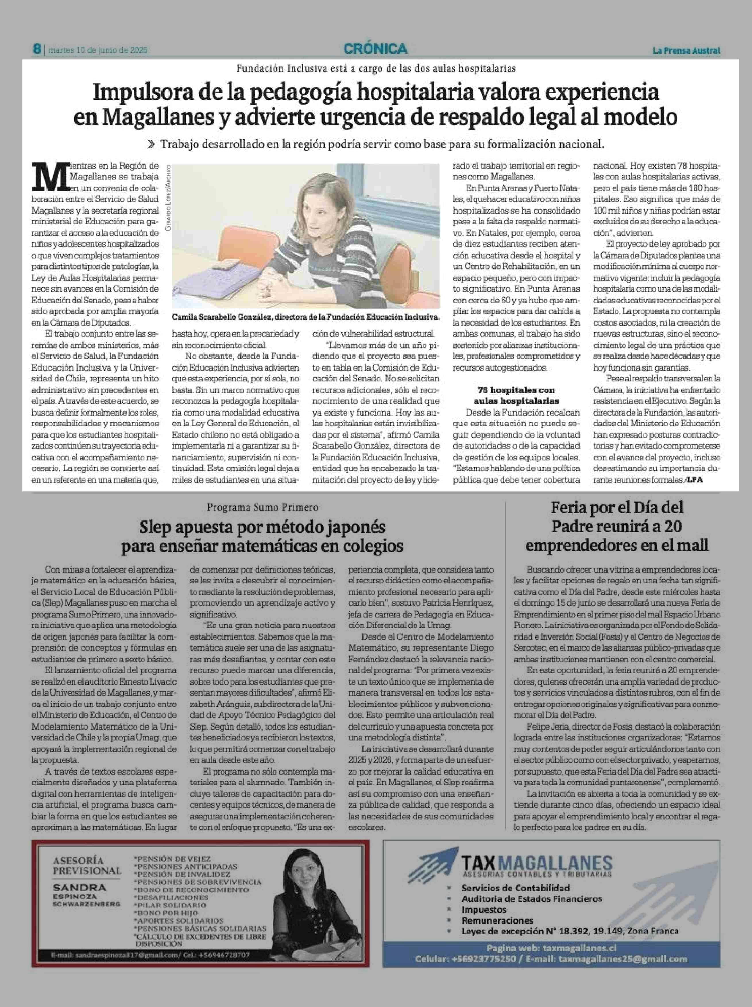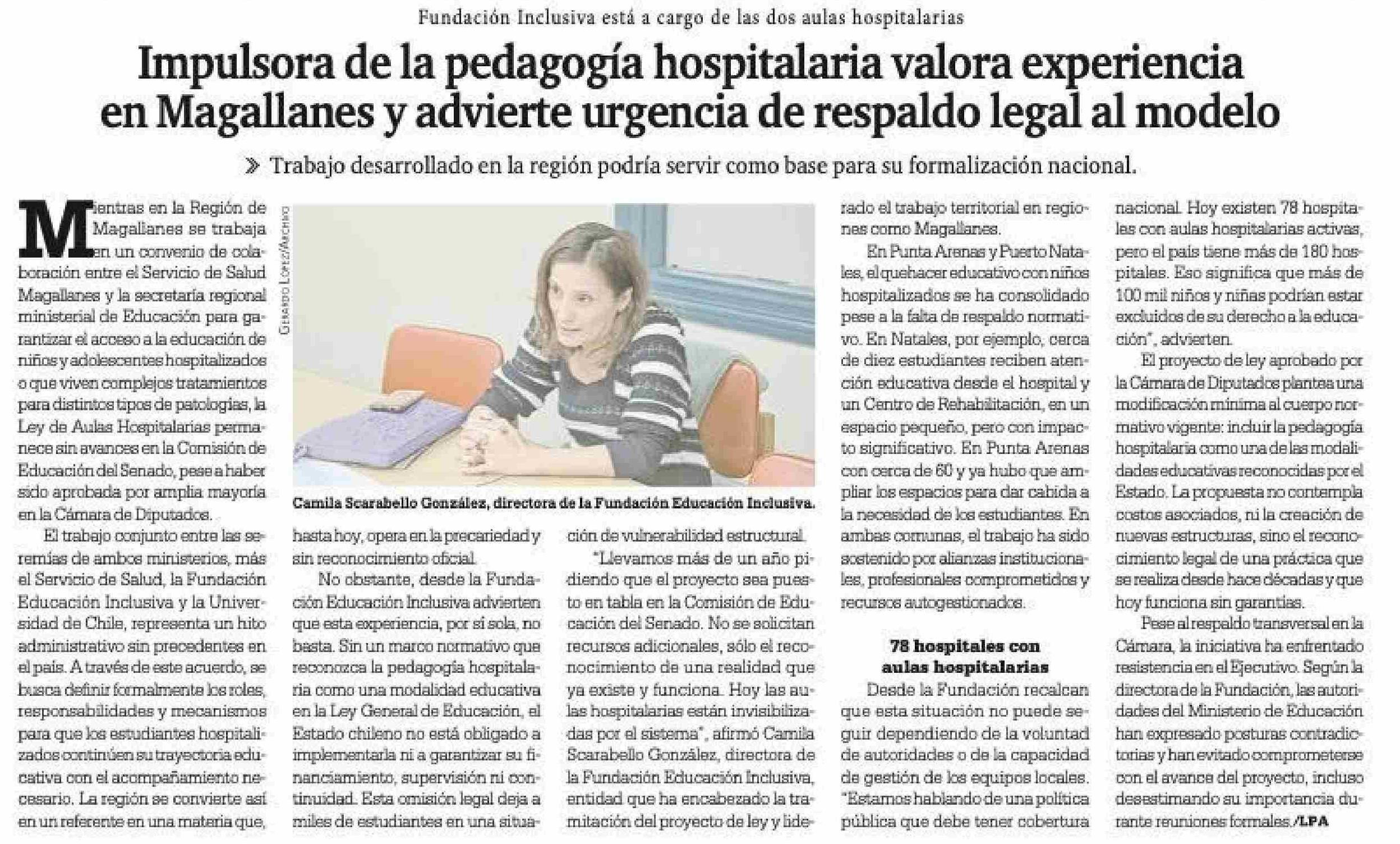 Título: Impulsora de la pedagogía hospitalaria valora experiencia en Magallanes y advierte urgencia de respaldo legal al modelo