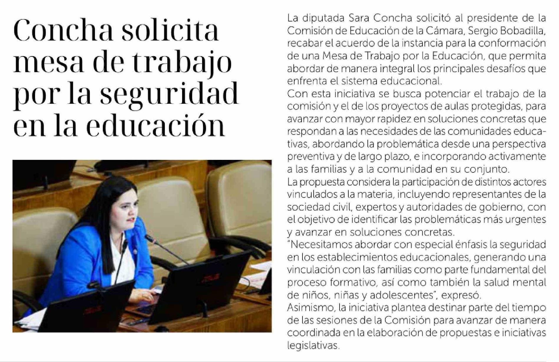 | Título: | Concha solicita mesa de trabajo por la seguridad en la educación |