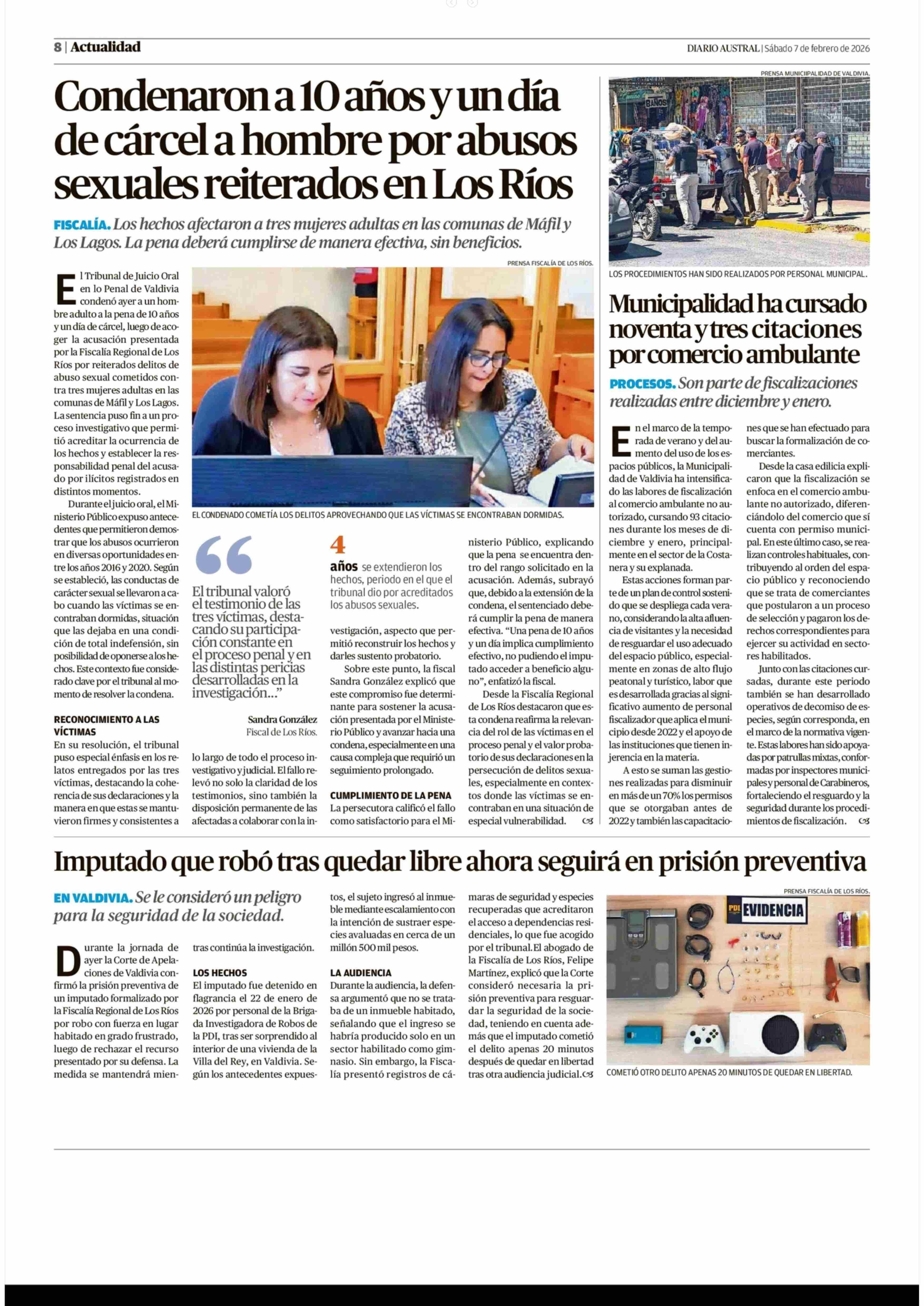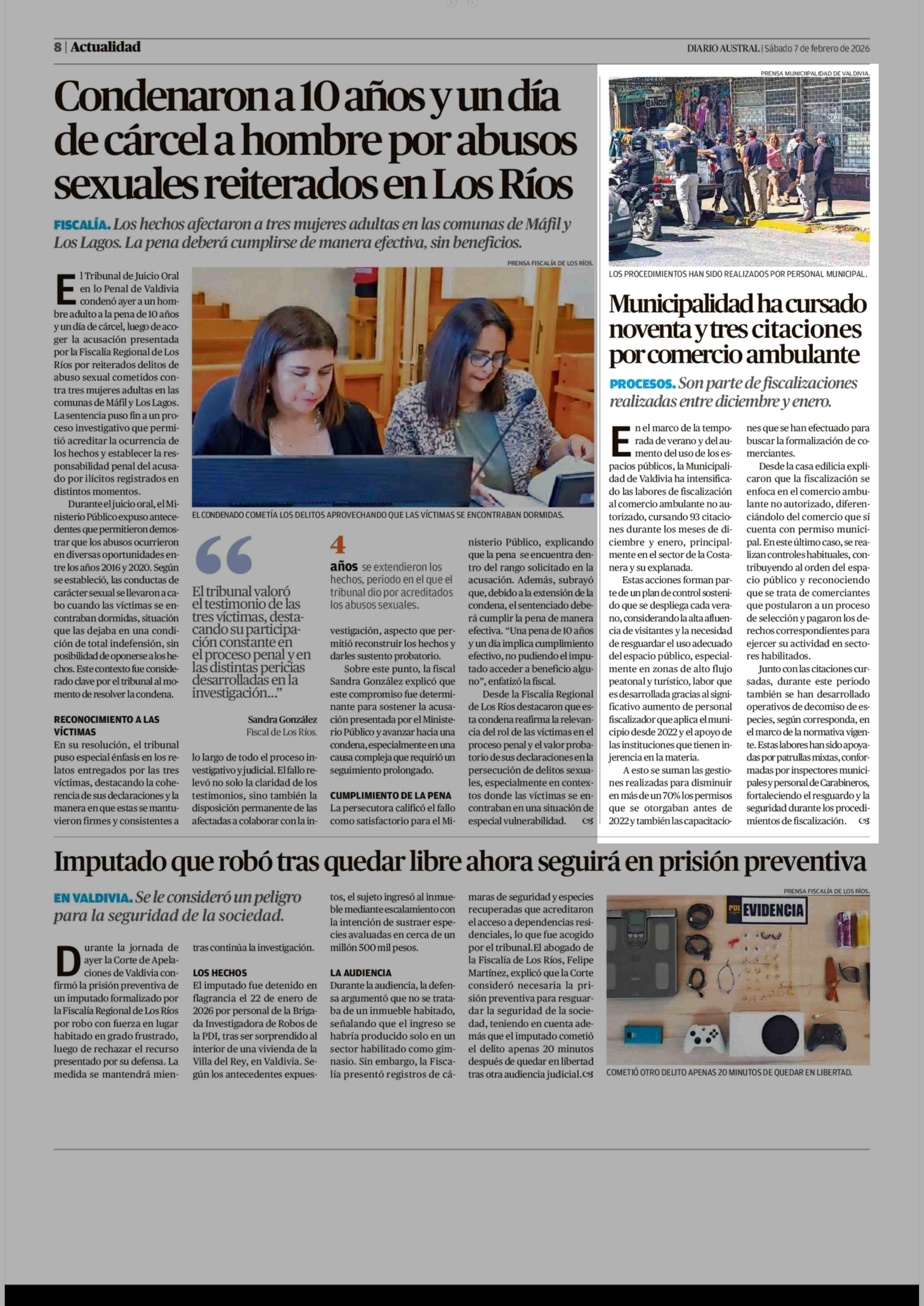 Municipalidad ha cursado noventa y tres citaciones por comercio ambulante 07-02-2026 Diario Austral Región de Los Ríos |