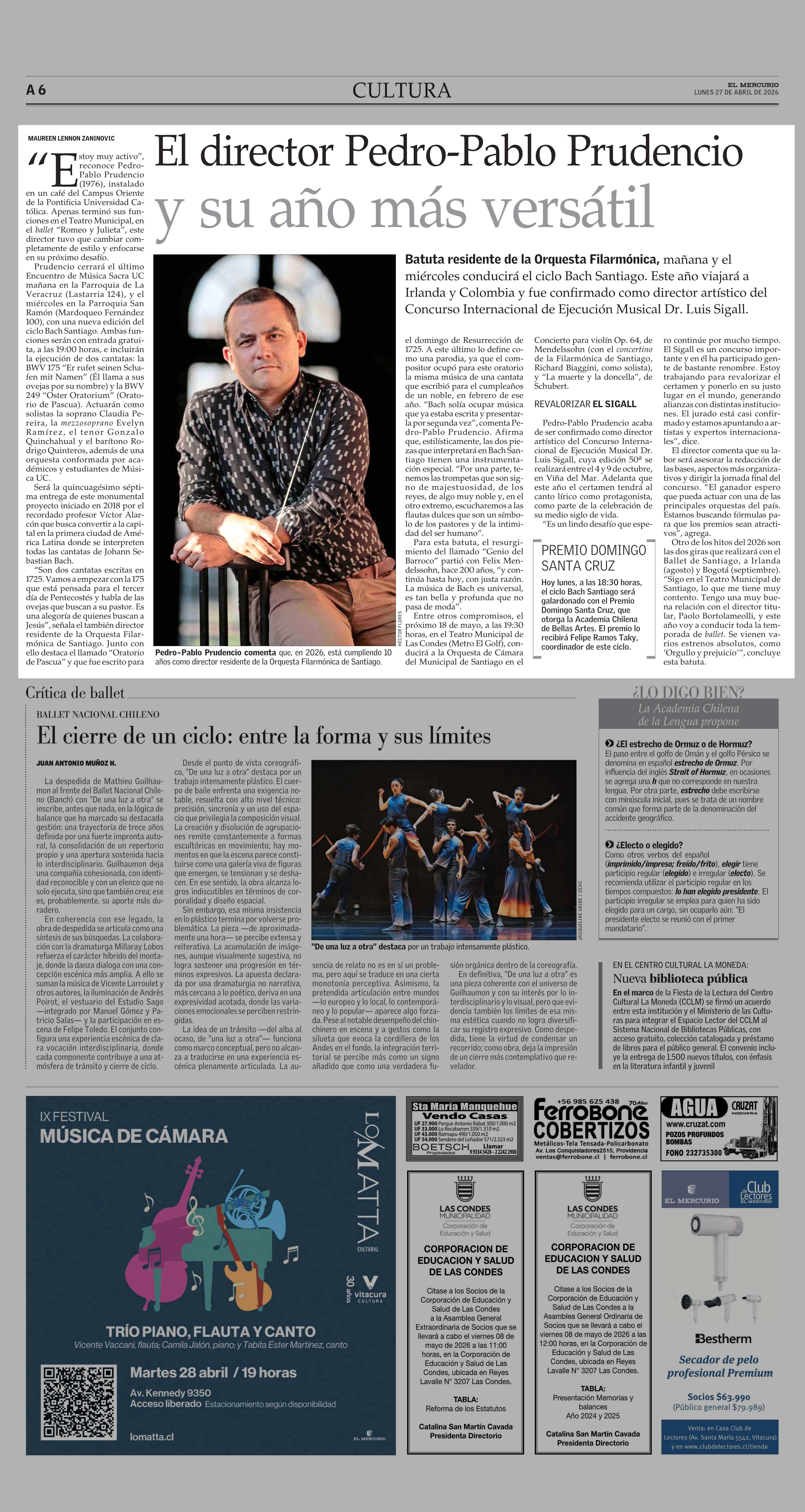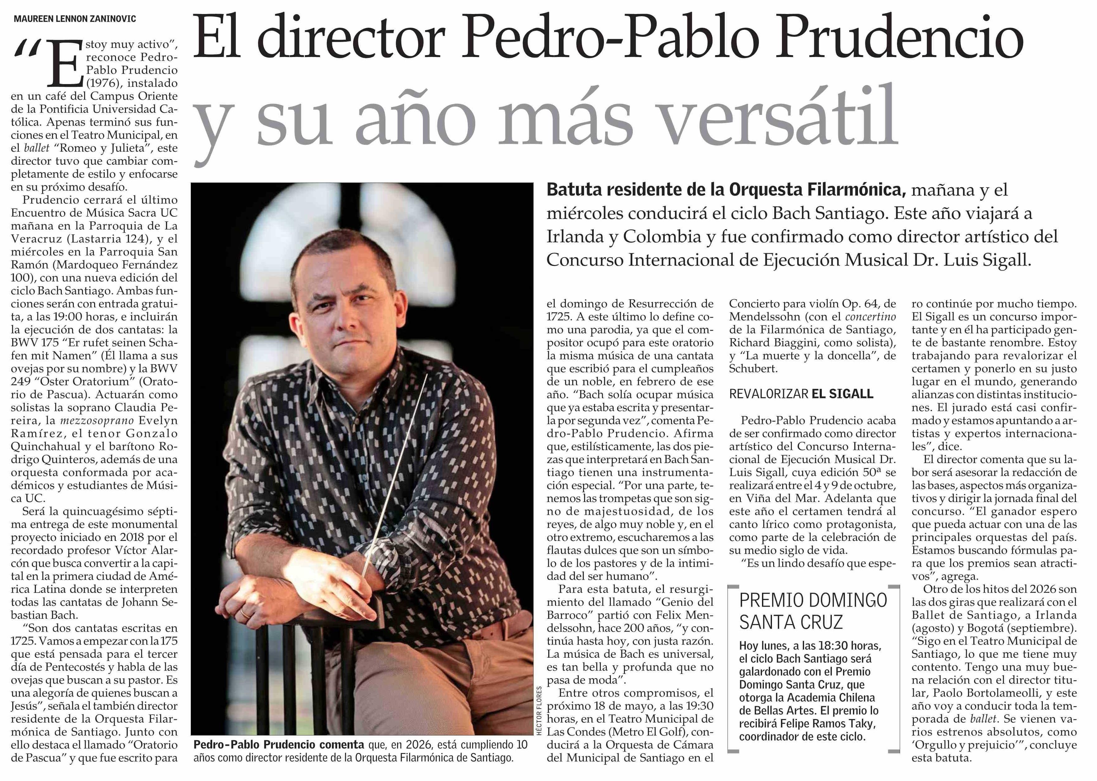 El director Pedro-Pablo Prudencio y su año más versátil 27-04-2026 El Mercurio |