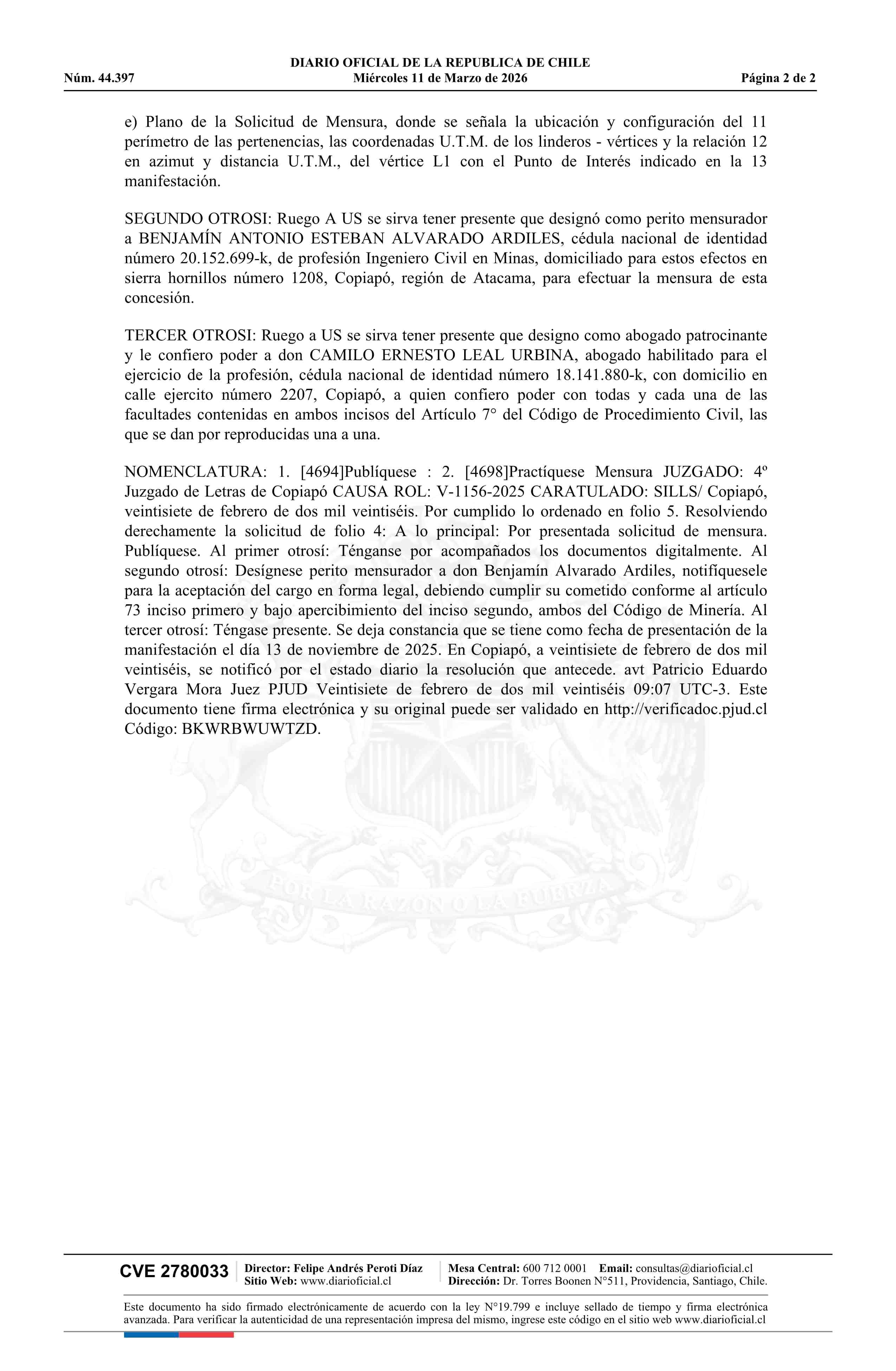11-03-2026 DIARIO OFICIAL CHILE - BOLETÍN OFICIAL DE MINERÍA