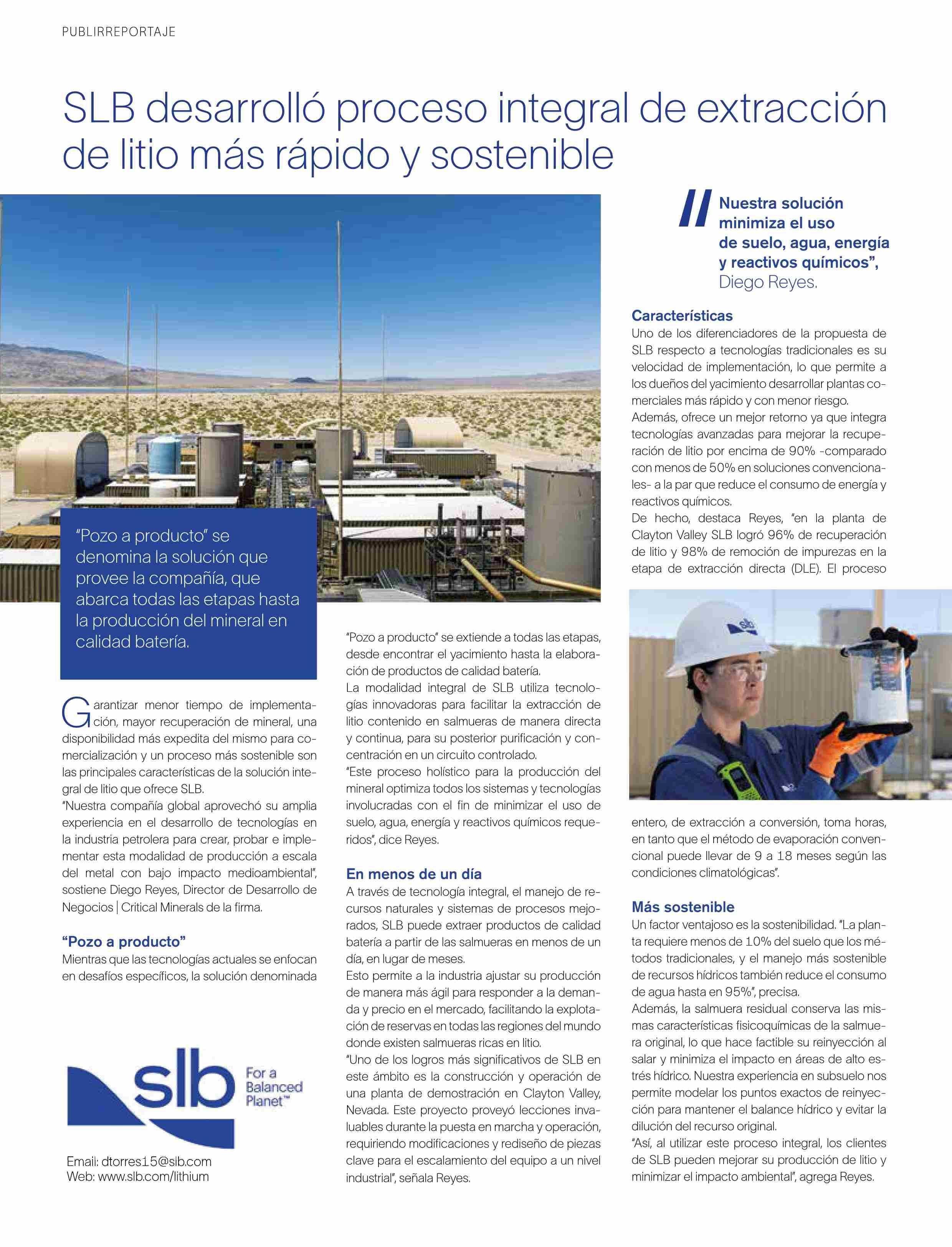 SLB desarrolló proceso integral de extracción de litio más rápido y sostenible 15-04-2025 Revista Minería Chilena |